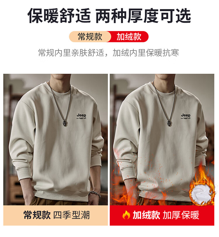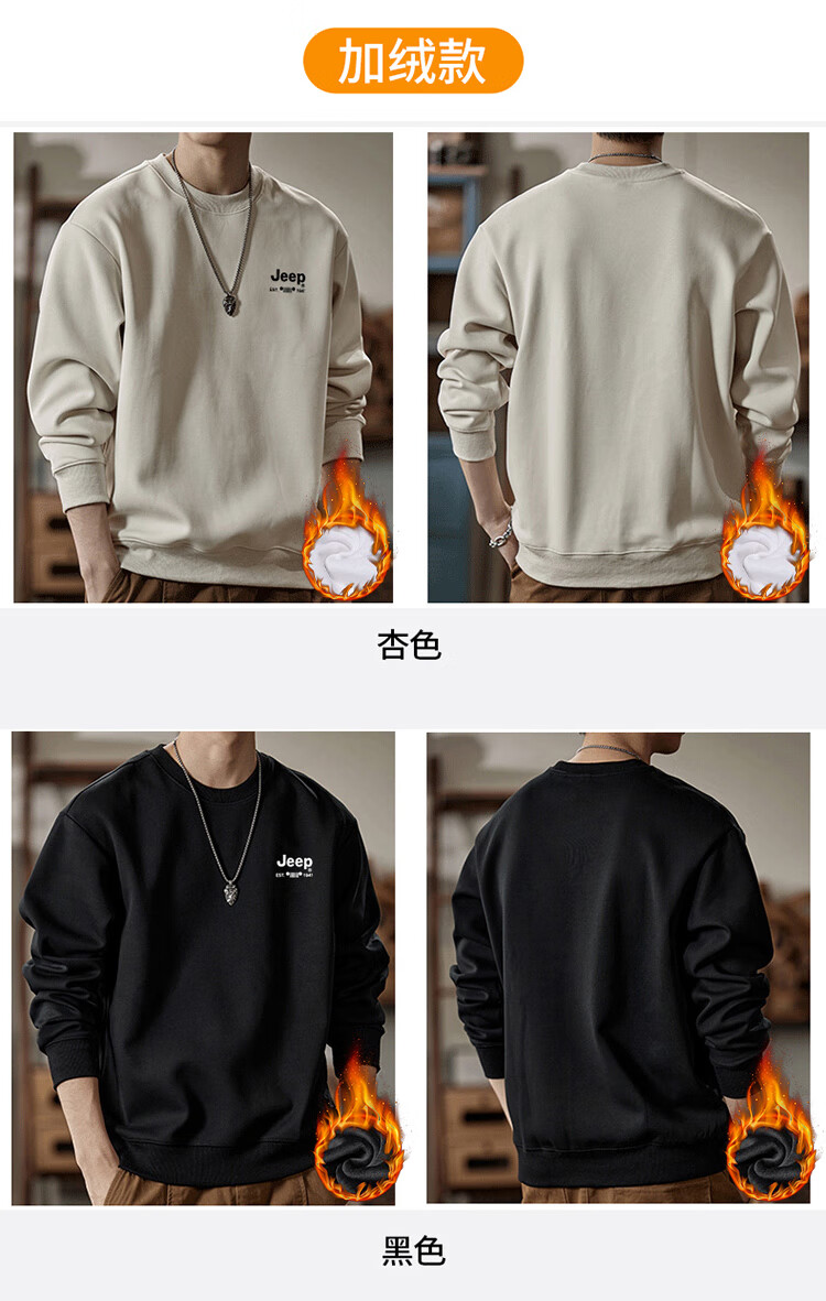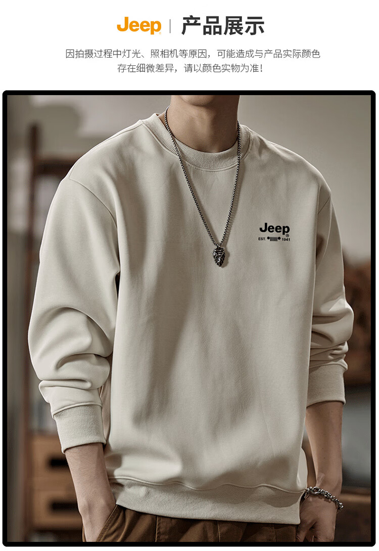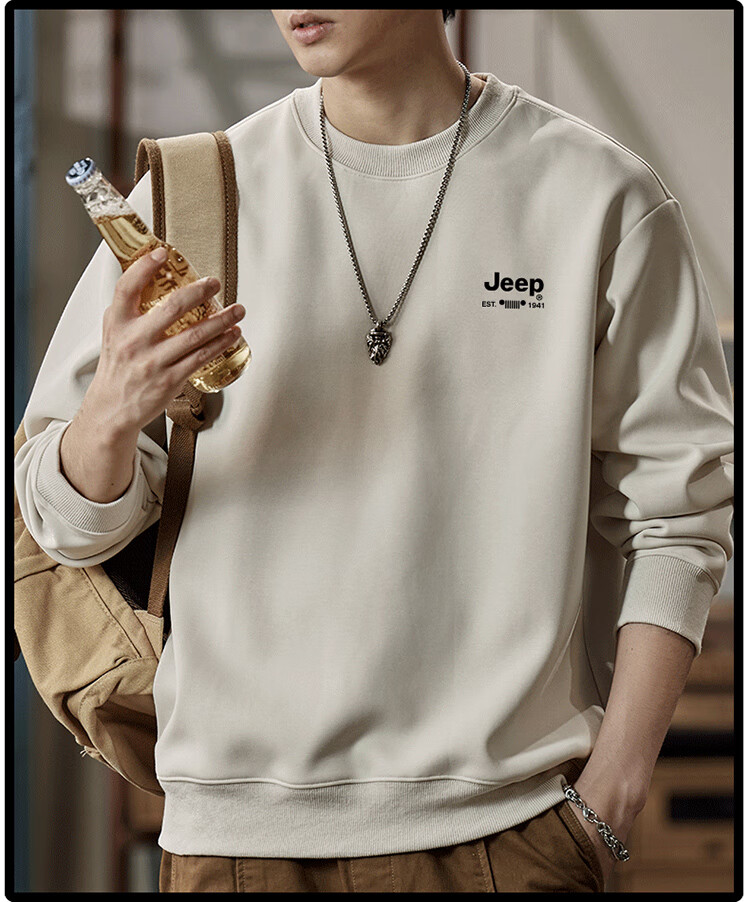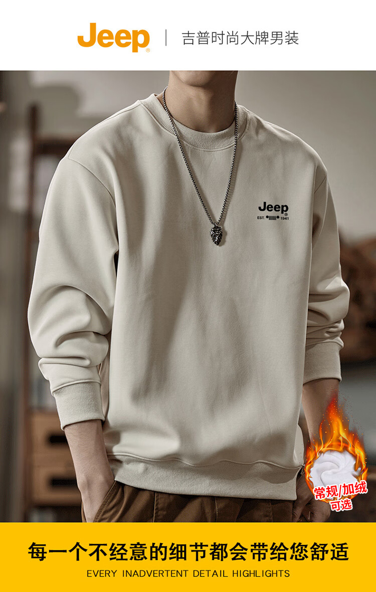 Jeep (JEEP) sweatshirt men's autumn and winter loose round neck long-sleeved T-shirt bottoming shirt versatile trendy brand top apricot 3XL