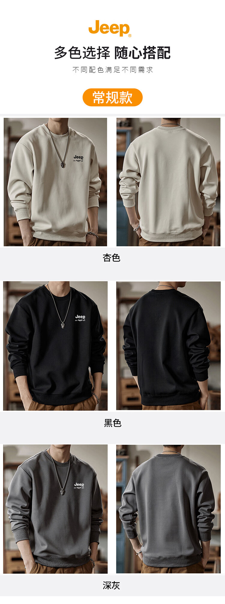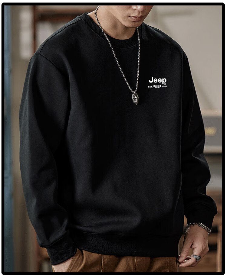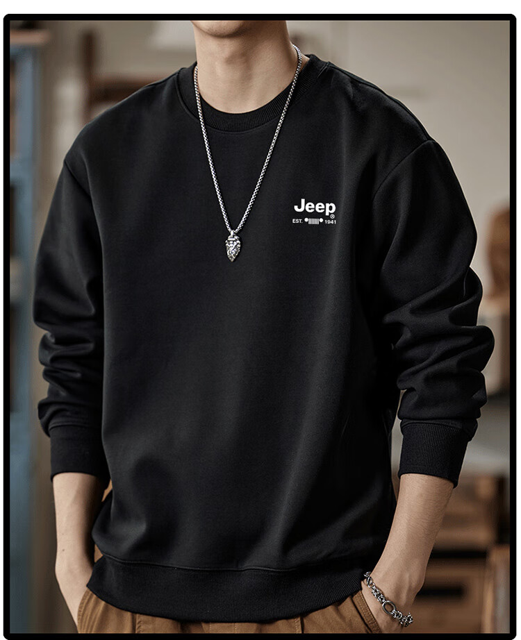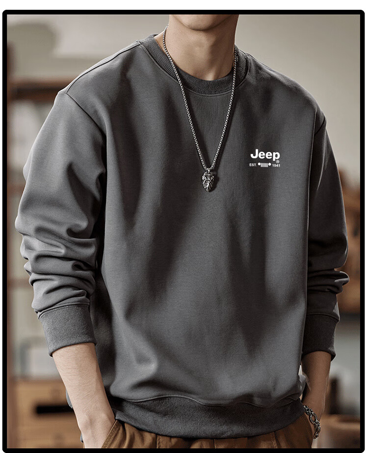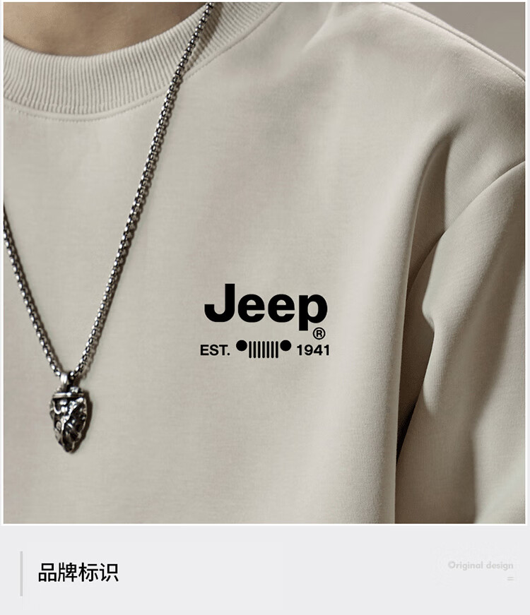 Jeep (JEEP) sweatshirt men's autumn and winter loose round neck long-sleeved T-shirt bottoming shirt versatile trendy brand top apricot 3XL