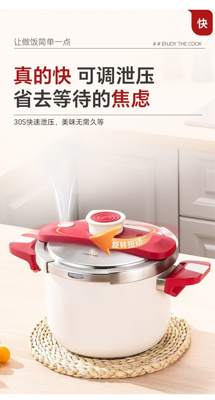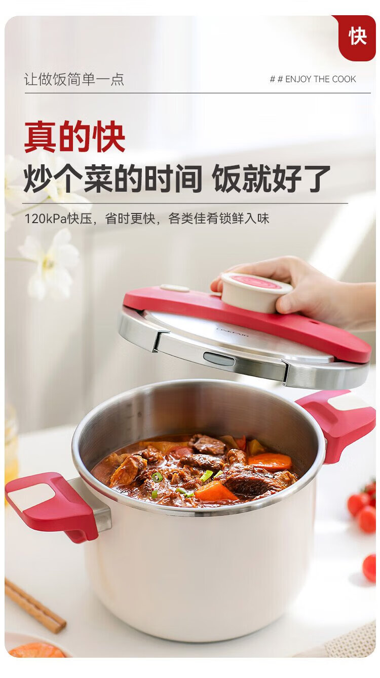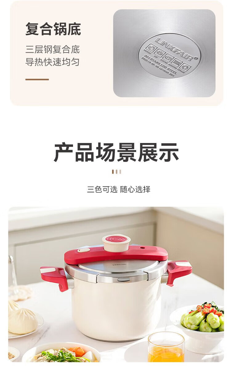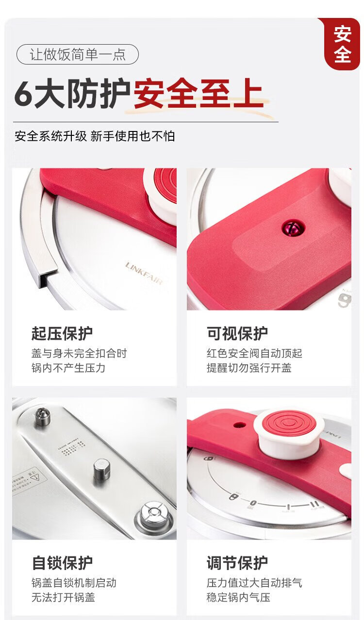 Lingfeng stainless steel pressure cooker household pressure cooker explosion-proof one-hand opening and closing gas induction cooker universal JD.com limited