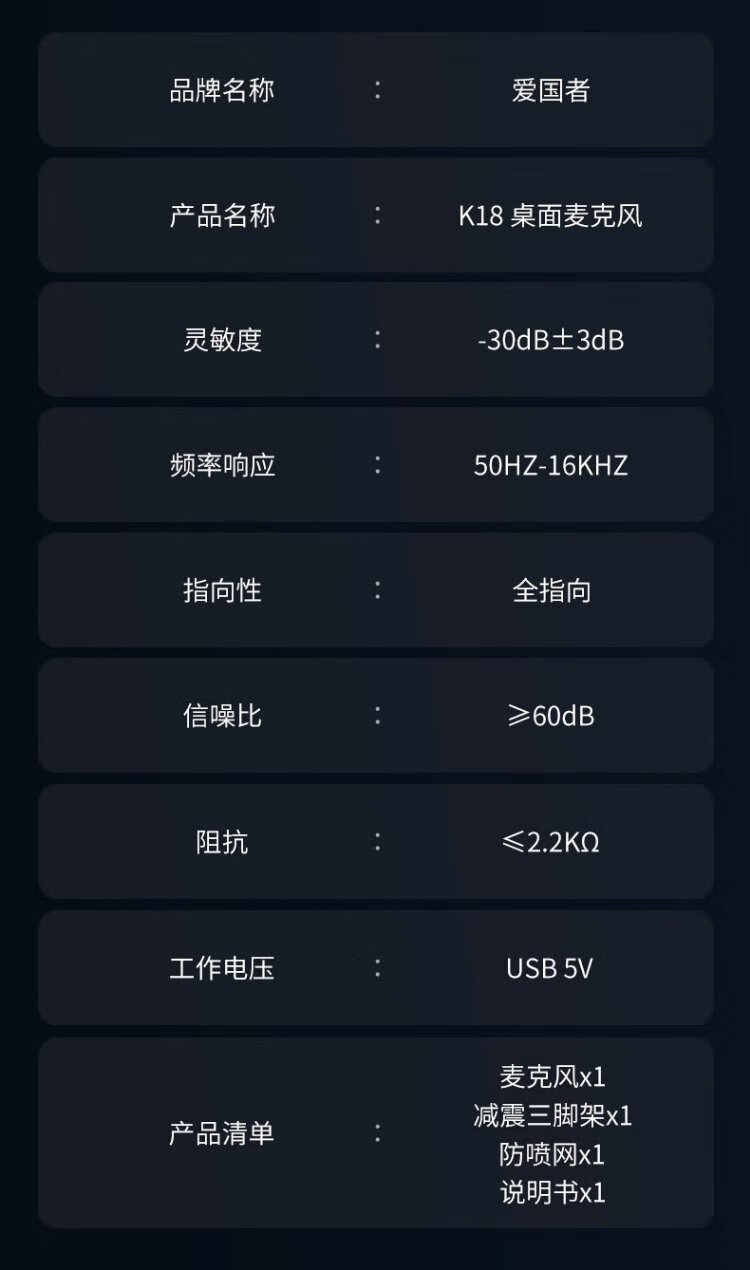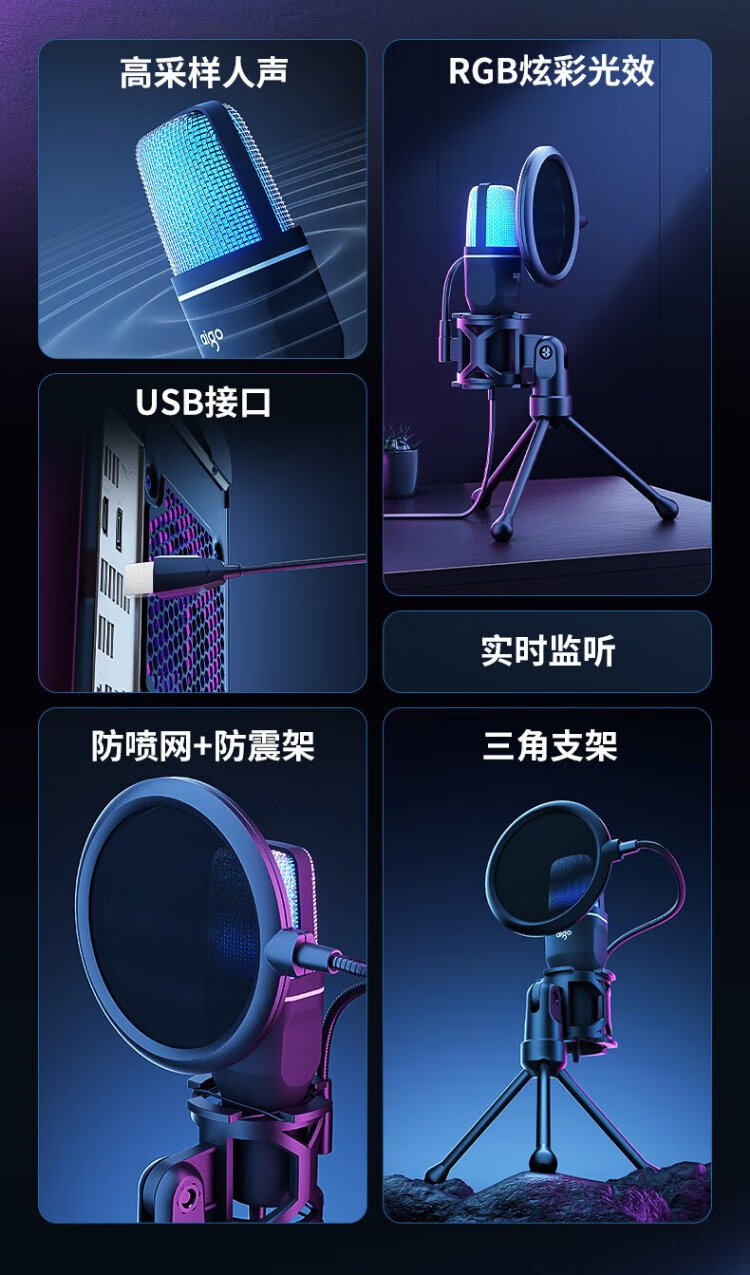 Patriot (aigo) K18 computer microphone live broadcast microphone conference game USB microphone desktop computer laptop mobile phone desktop karaoke microphone condenser microphone for online classes