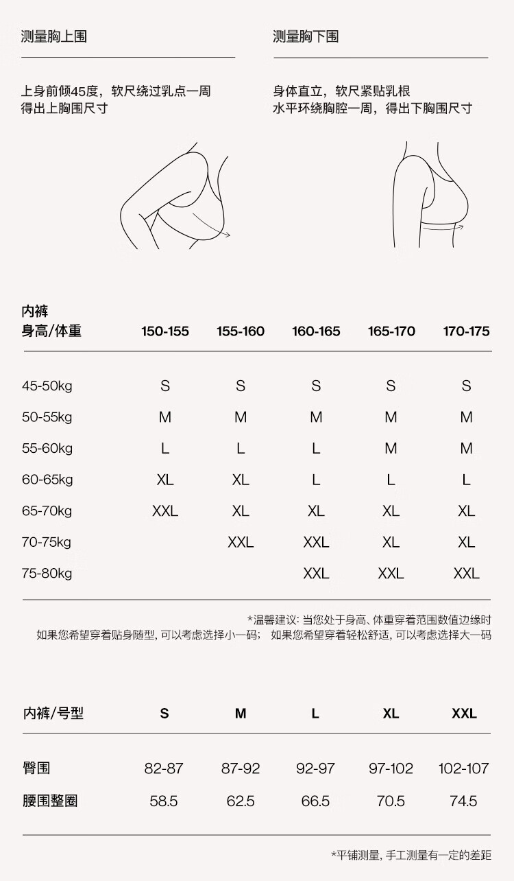 China (cm) 160-165/84-86 165-170 / 88-90 167-172 / 92-96 168-173 / 98-102 170-176 / 106-110