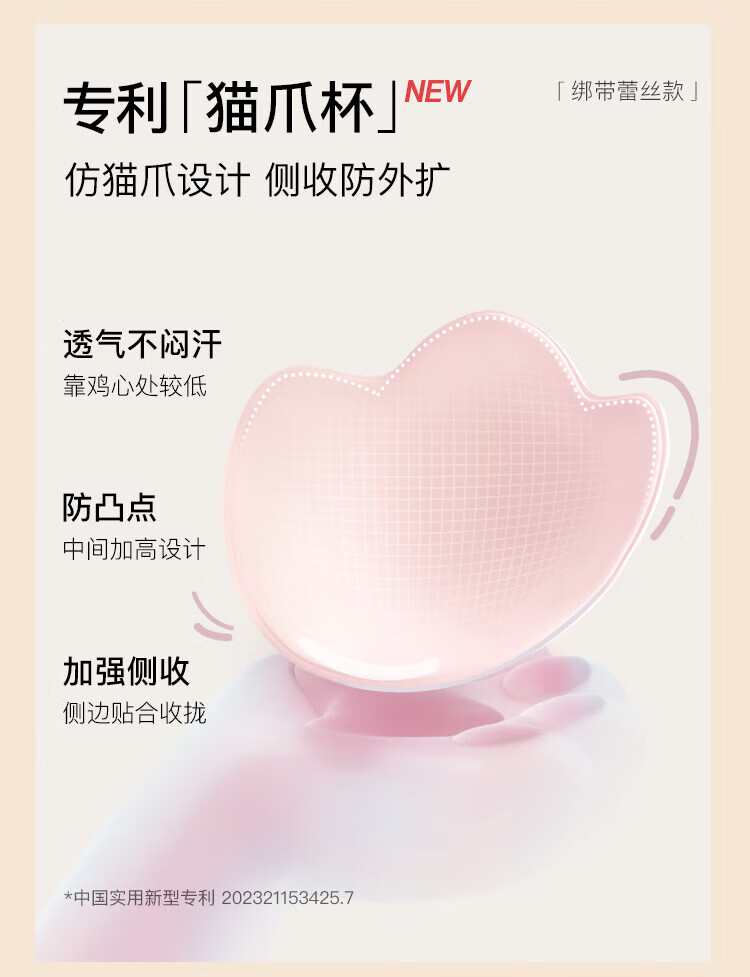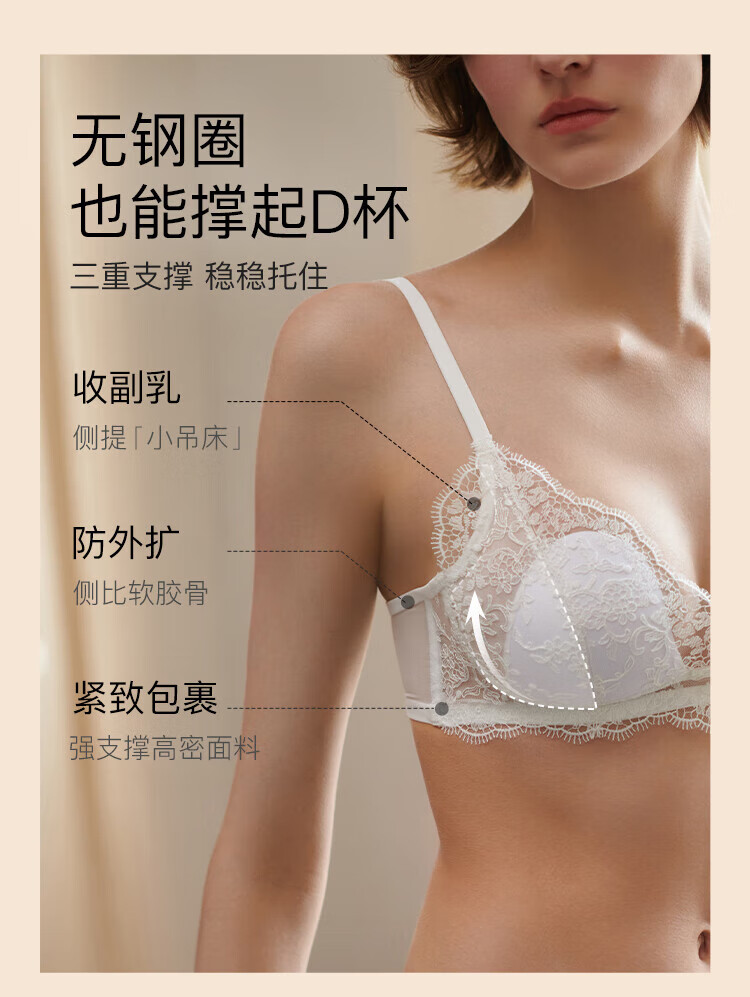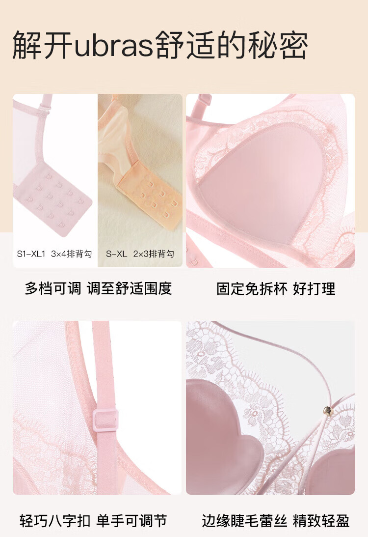 Ubras Yu Shuxin's same style lace gauze cat claw cup sexy push-up bra without steel ring back hook bra black M