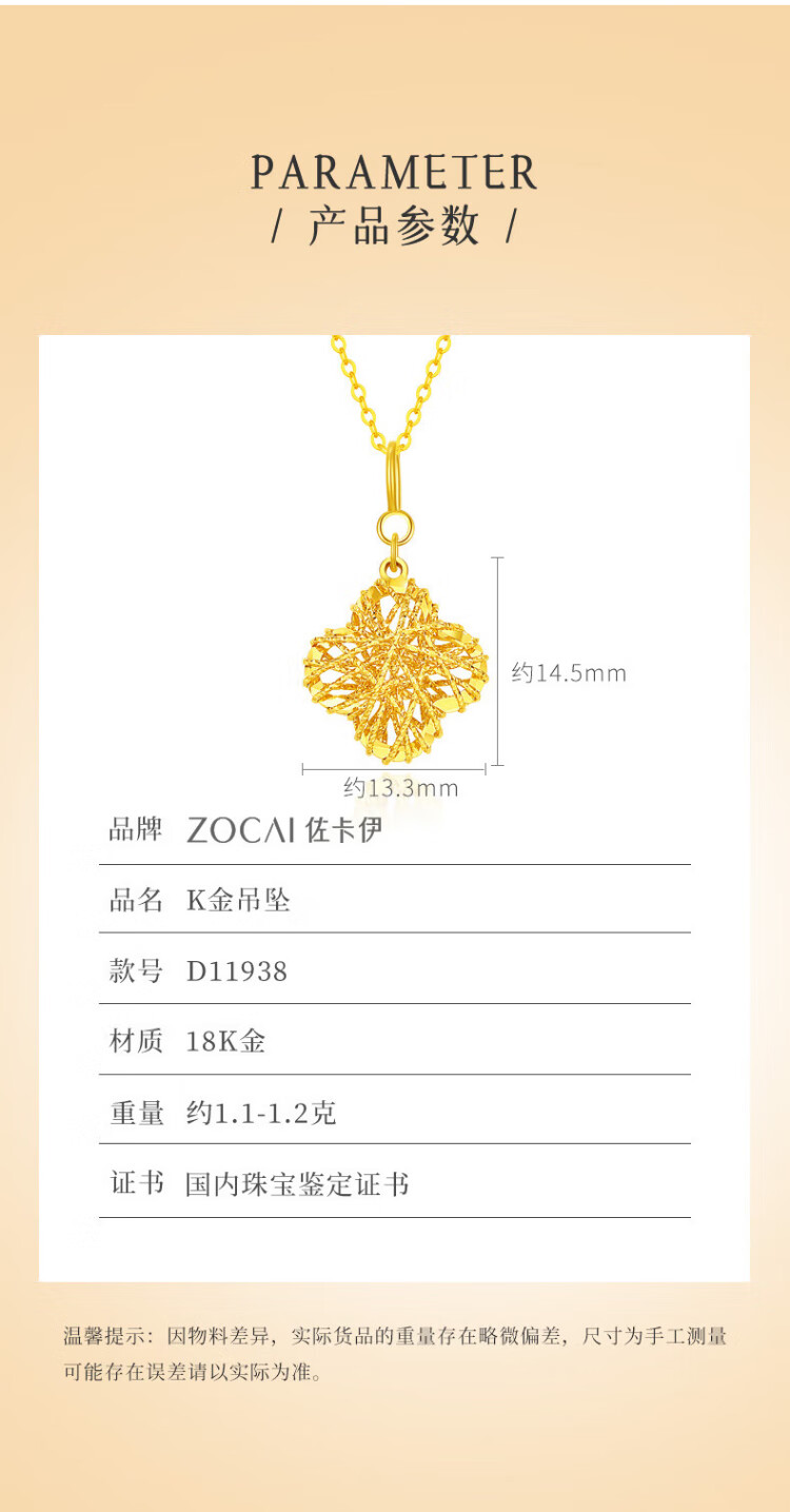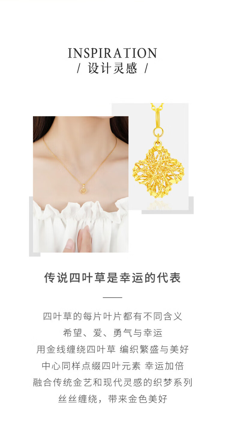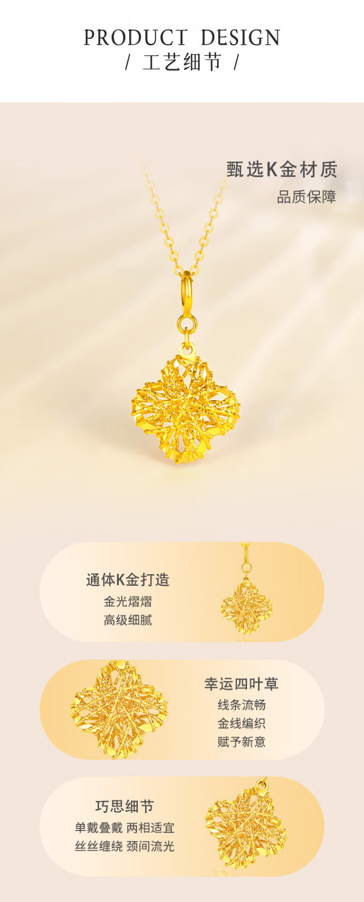 Zokai yellow 18K gold pendant four-leaf clover necklace braided versatile birthday gift D11938