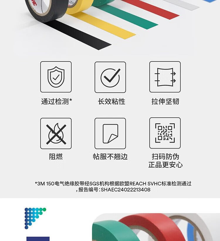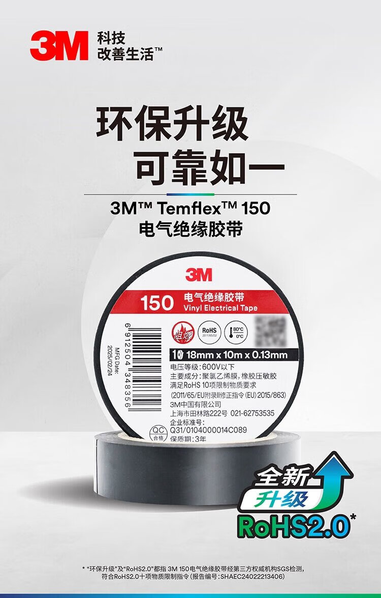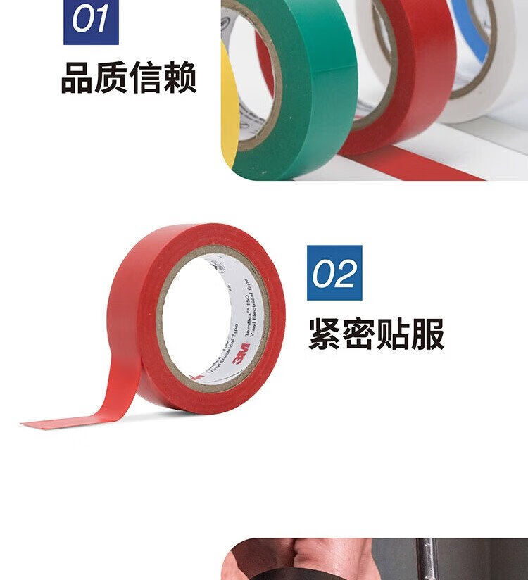 3M 150# Electrical Tape Electrical Insulating Tape PVC Electrical Tape Lead-free 600V Moisture-proof Acid and Alkali Resistant Red 18mm*10m*0.13mm 1 barrel (10 rolls)