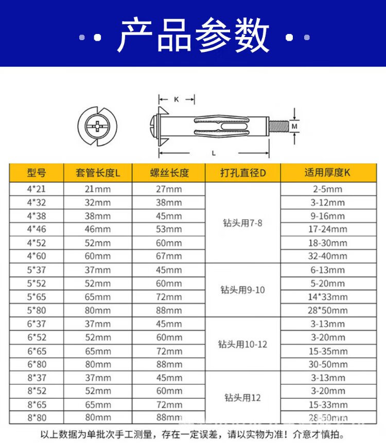 Tianhou hollow brick expansion bolt hollow wall gypsum board expansion screw hollow gecko M6*65 (pack of 10)