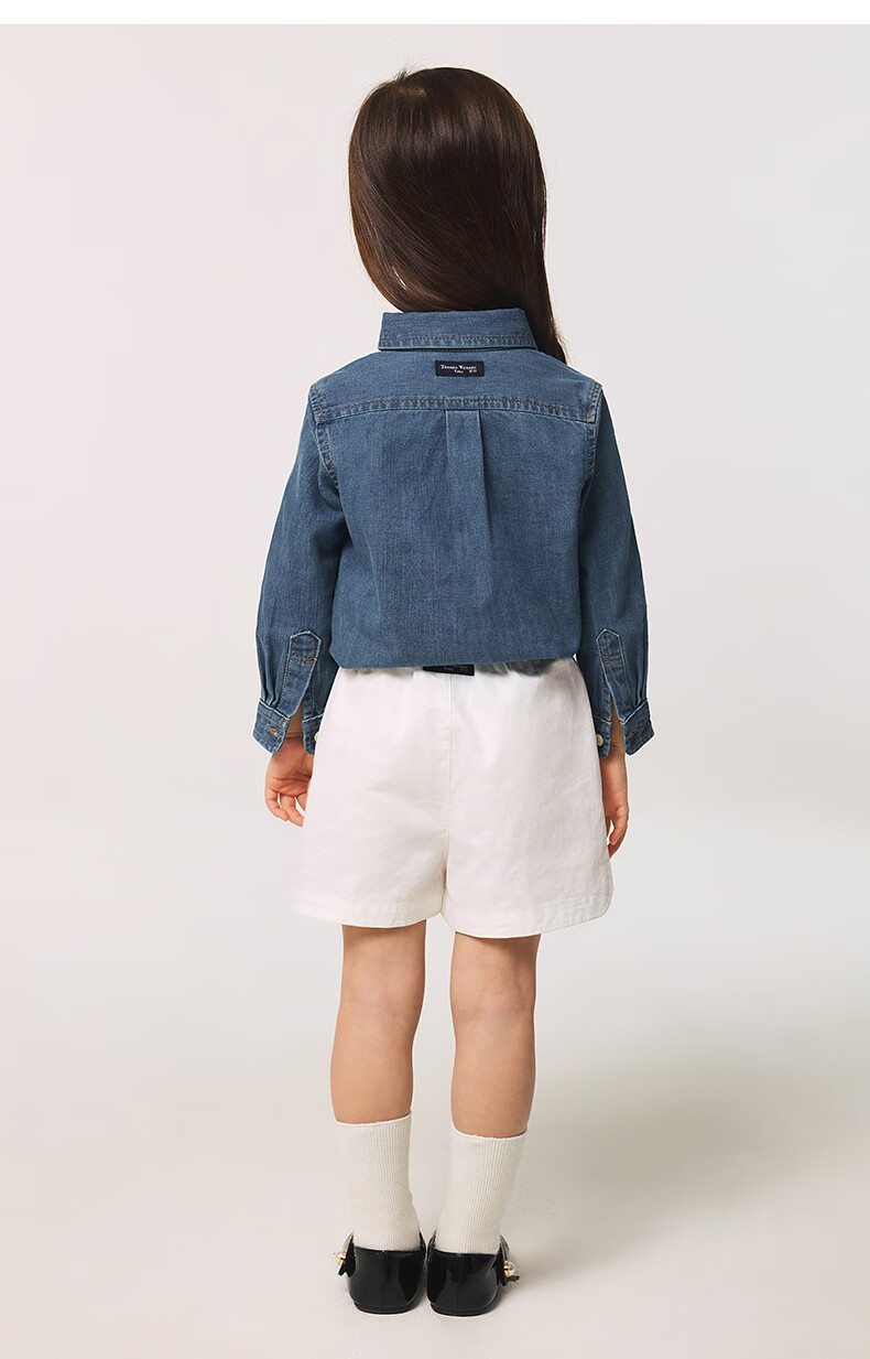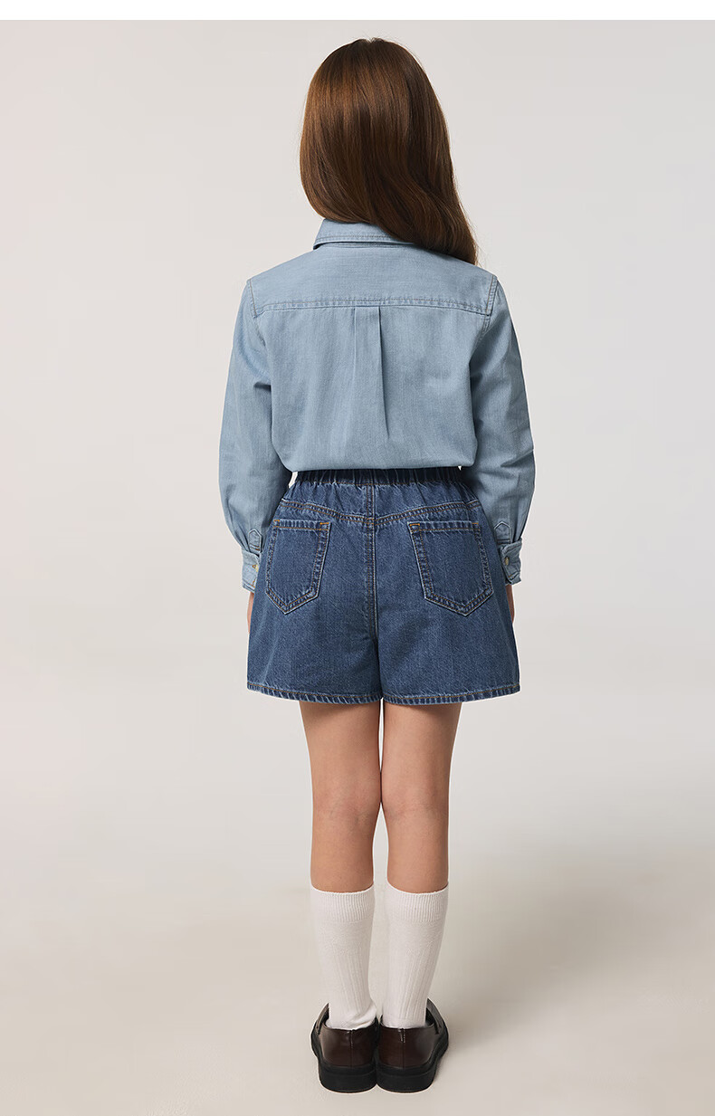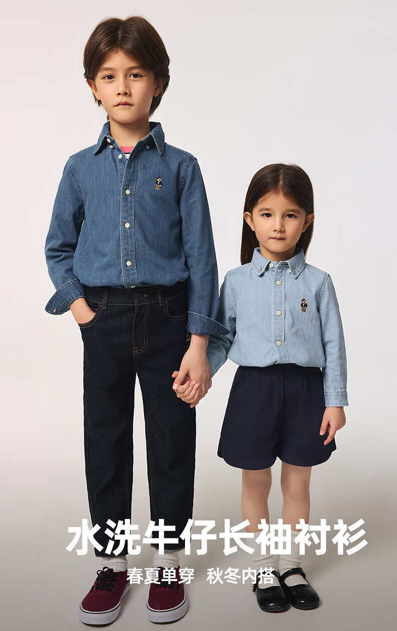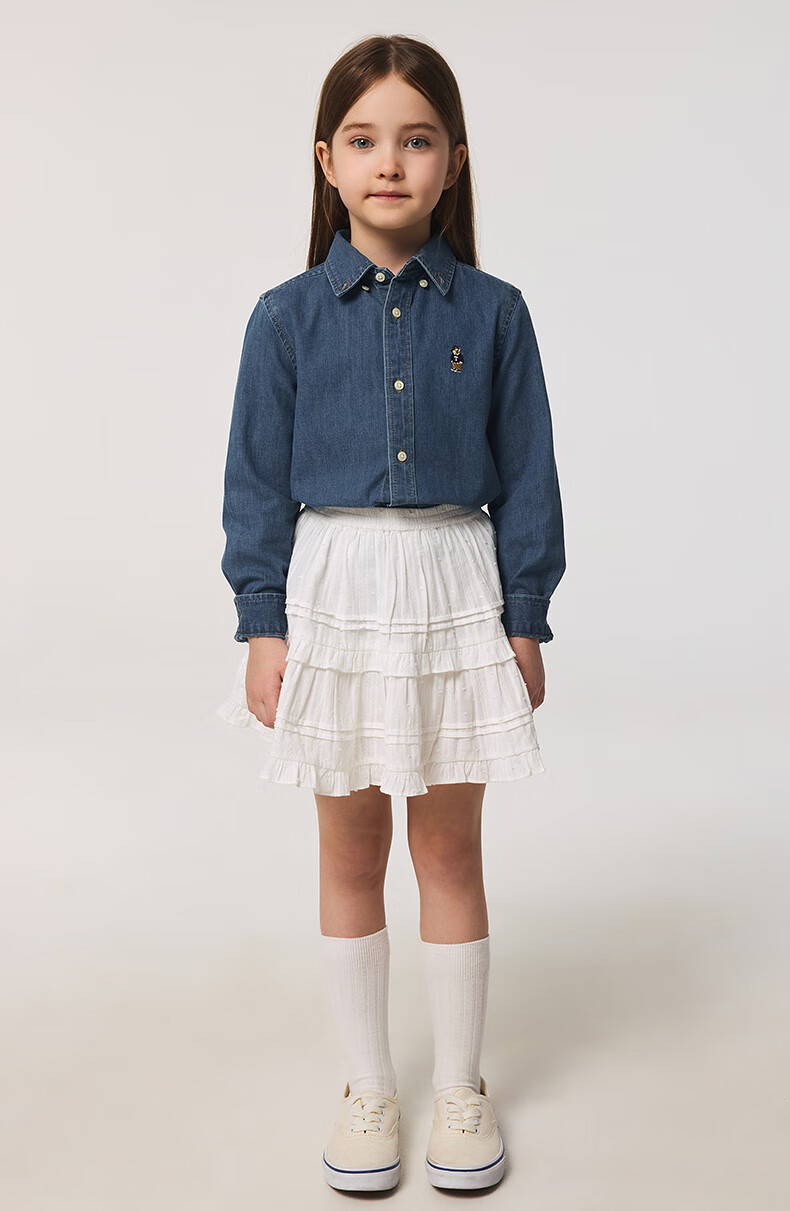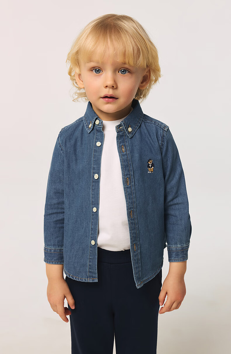 Teenie Weenie Kids 25 spring and summer long-sleeved denim shirt for boys and girls, light denim color 160cm