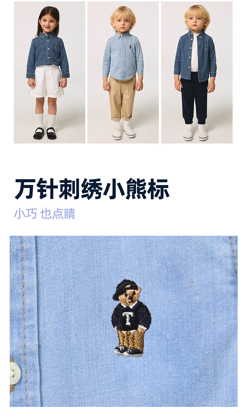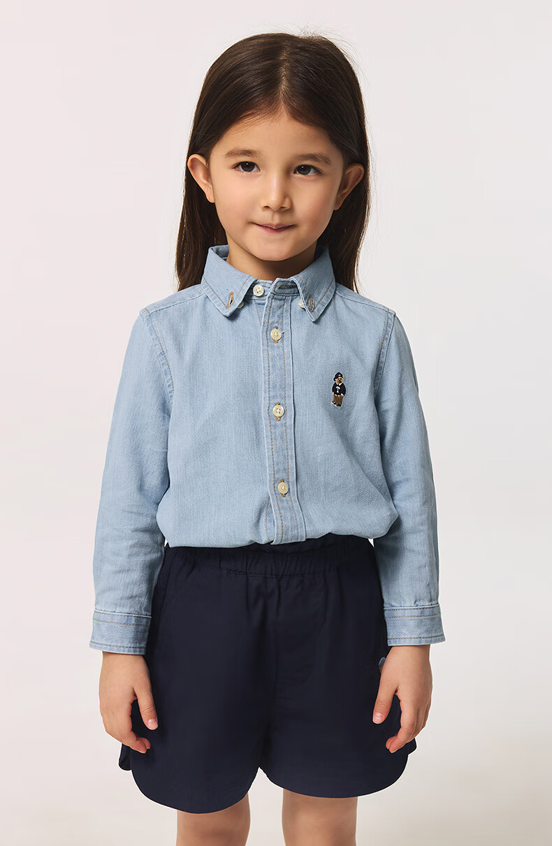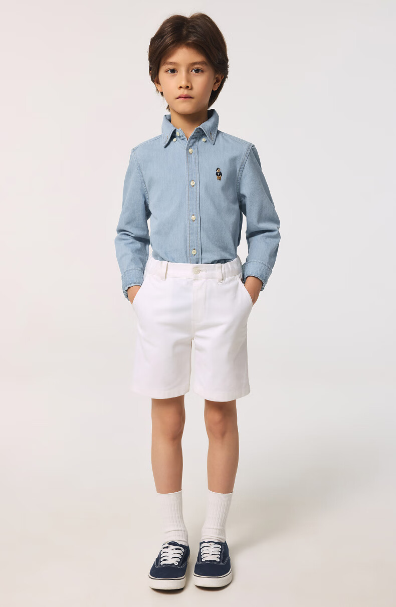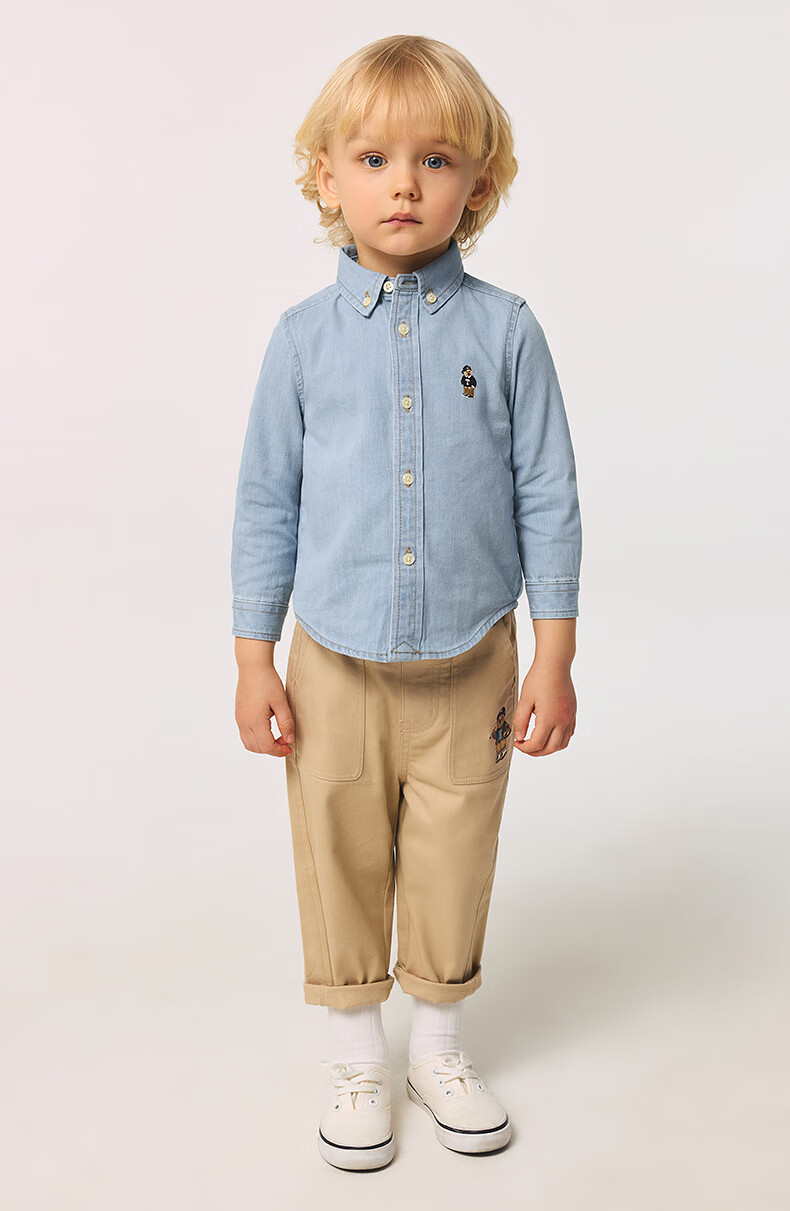 Teenie Weenie Kids 25 spring and summer long-sleeved denim shirt for boys and girls, light denim color 160cm