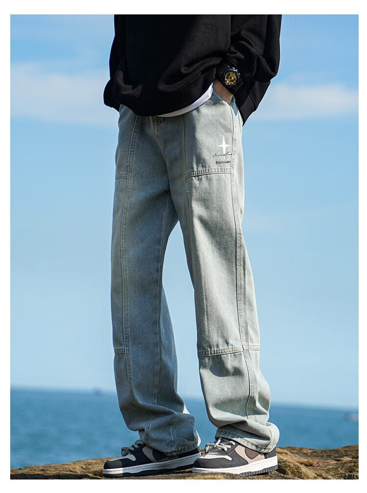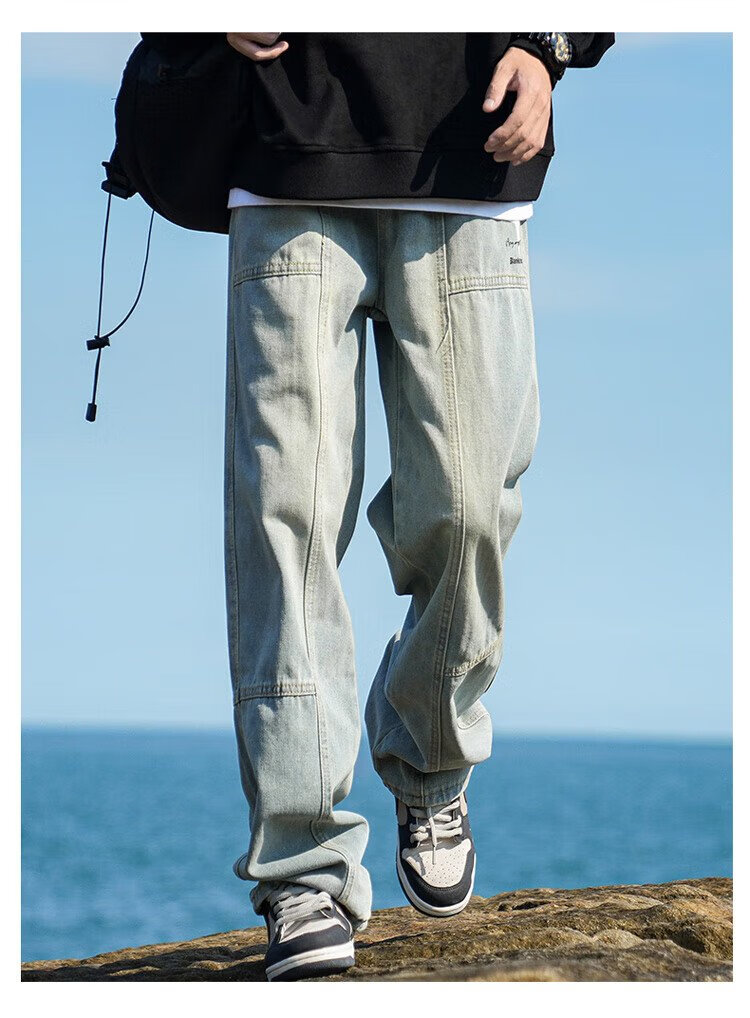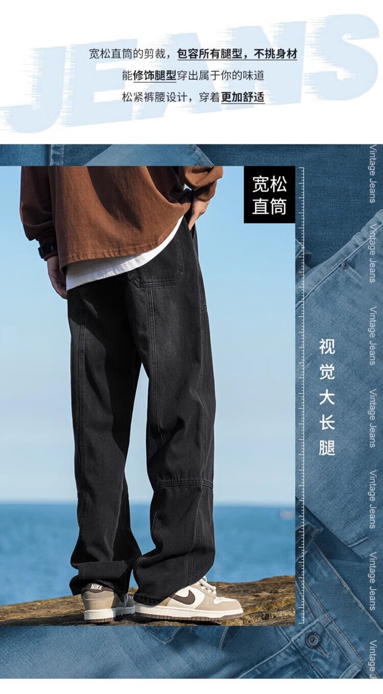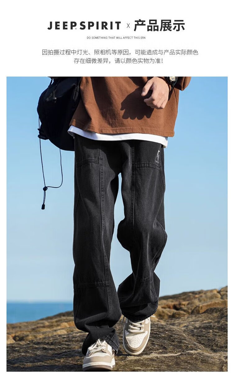 JEEP SPIRIT Jeep jeans men's autumn casual pants men's overalls loose straight trendy high-end wide-leg trousers