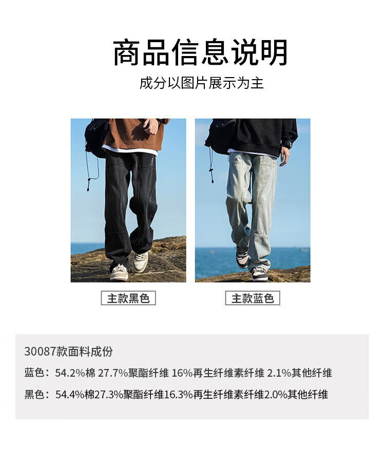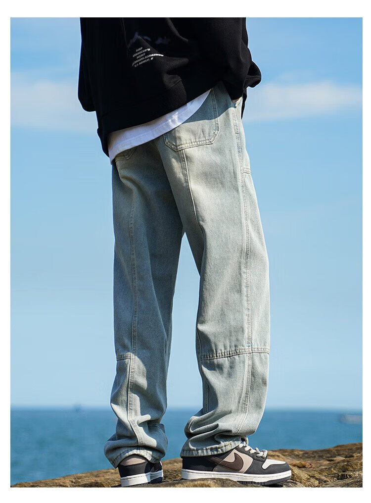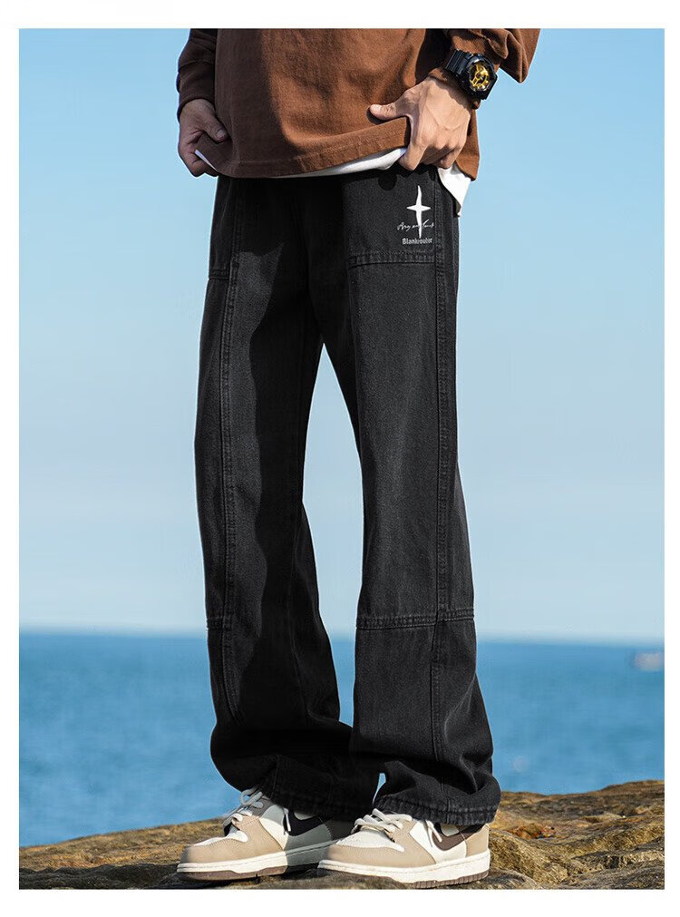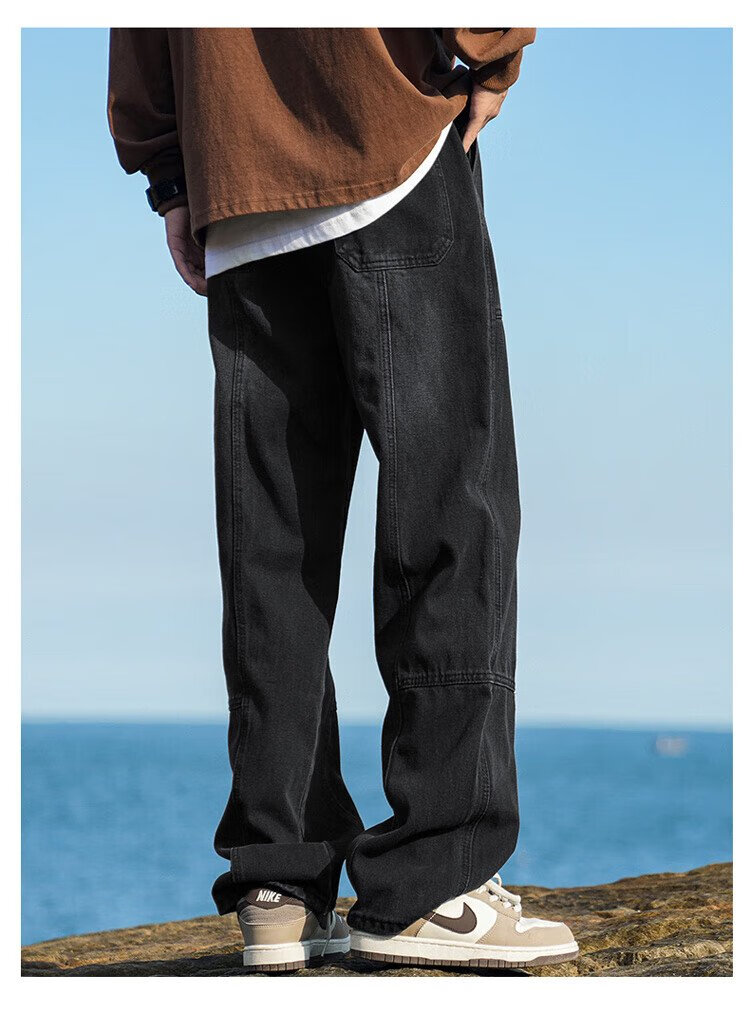 JEEP SPIRIT Jeep jeans men's autumn casual pants men's overalls loose straight trendy high-end wide-leg trousers