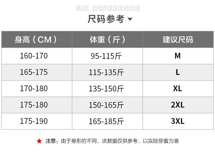 China (cm) 165 / 88-90 170 / 96-98 175 / 108-110 180 / 118-122 185 / 126-130