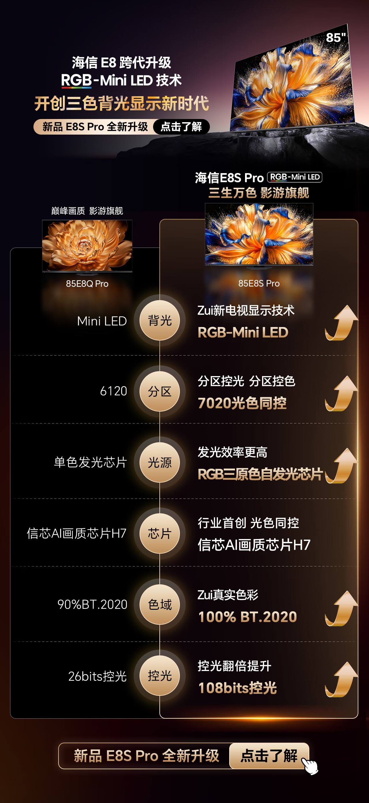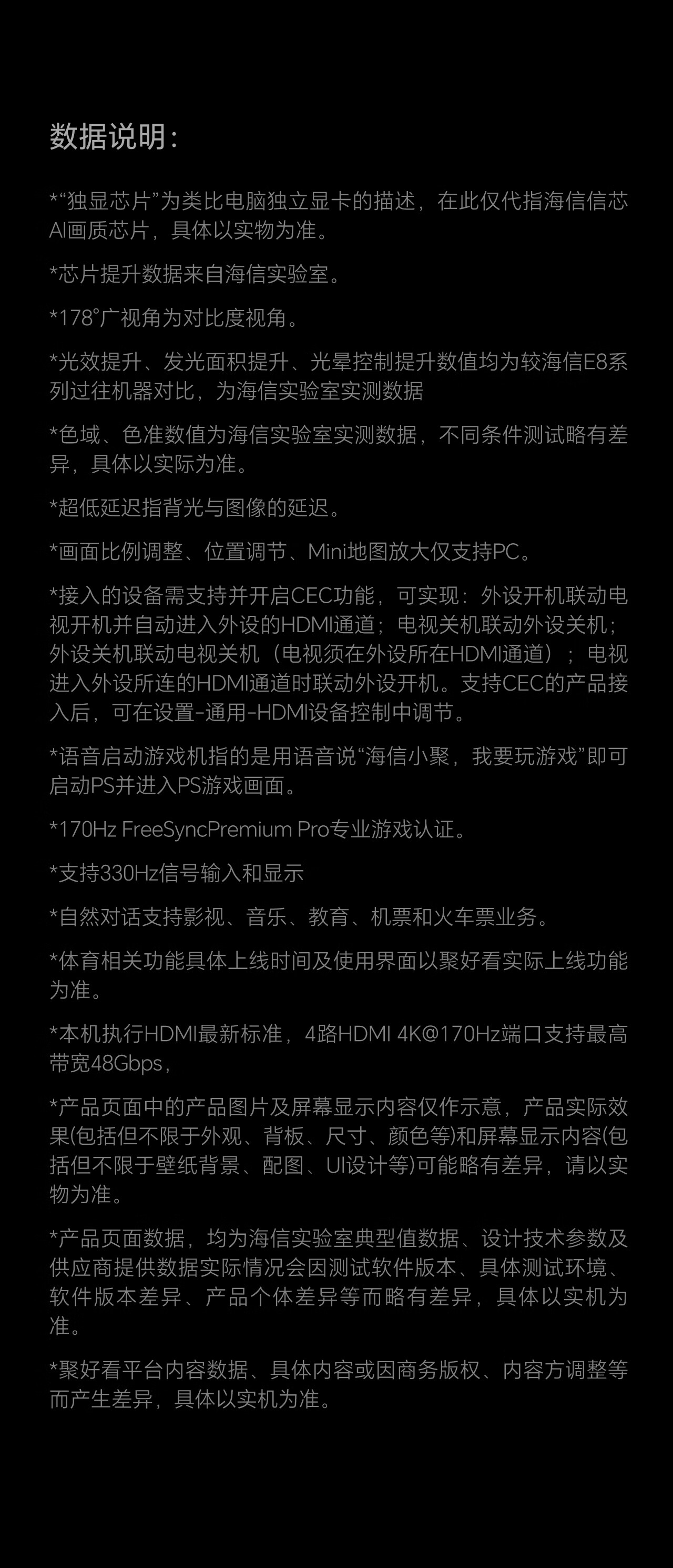 Hisense TV E8Q Pro 85-дюймовый Hisense H7 6120 с перегородкой U + MiniLED Экран Obsidian Ultra 330 Гц Ультратонкие обои с государственной субсидией 85E8Q-PRO