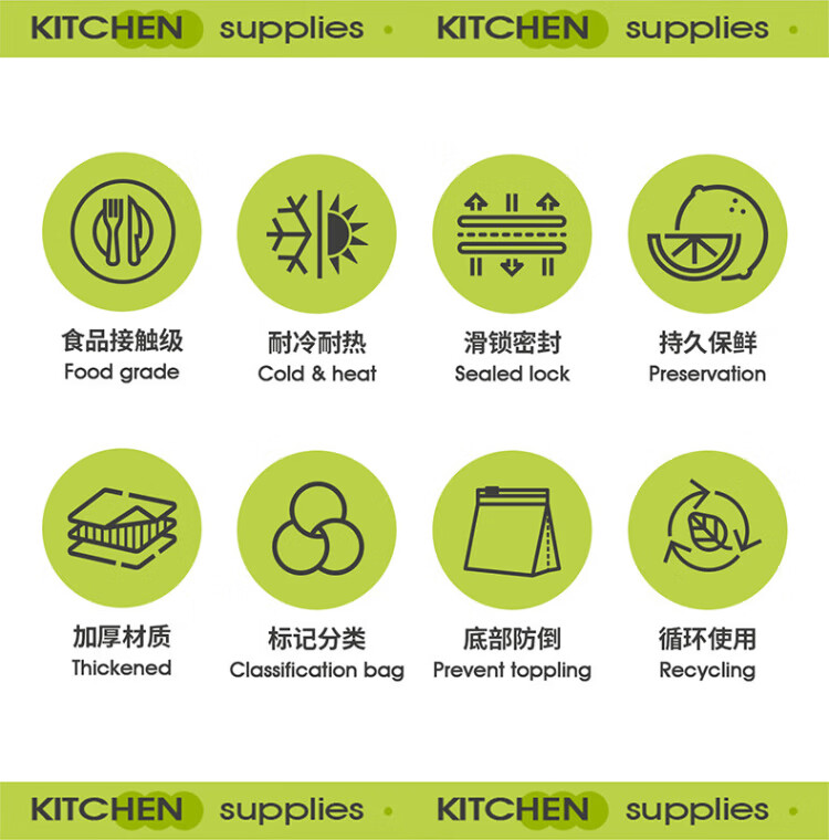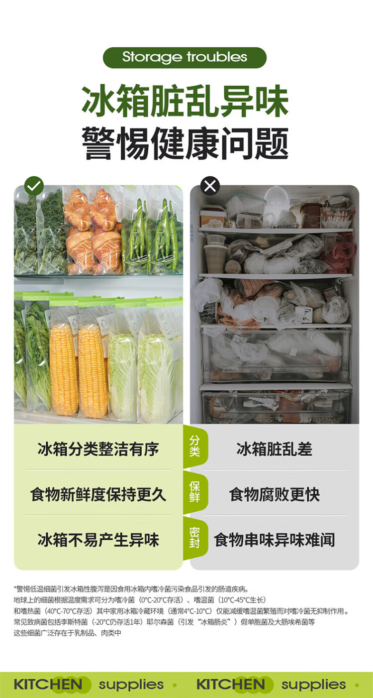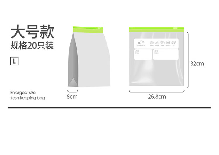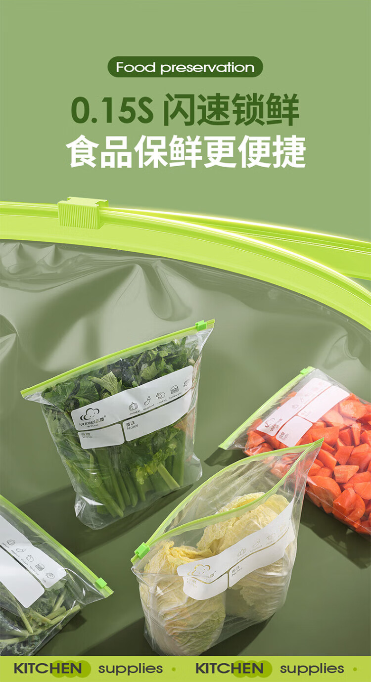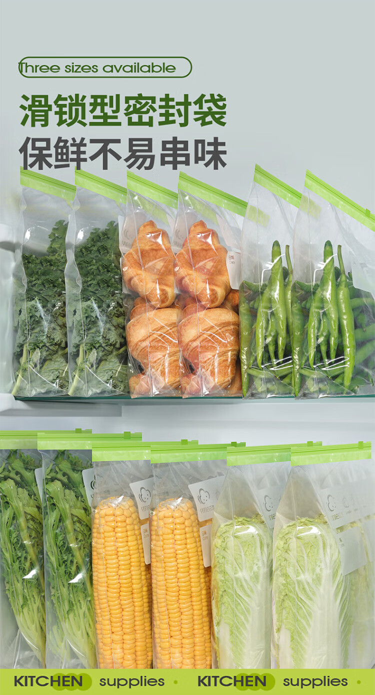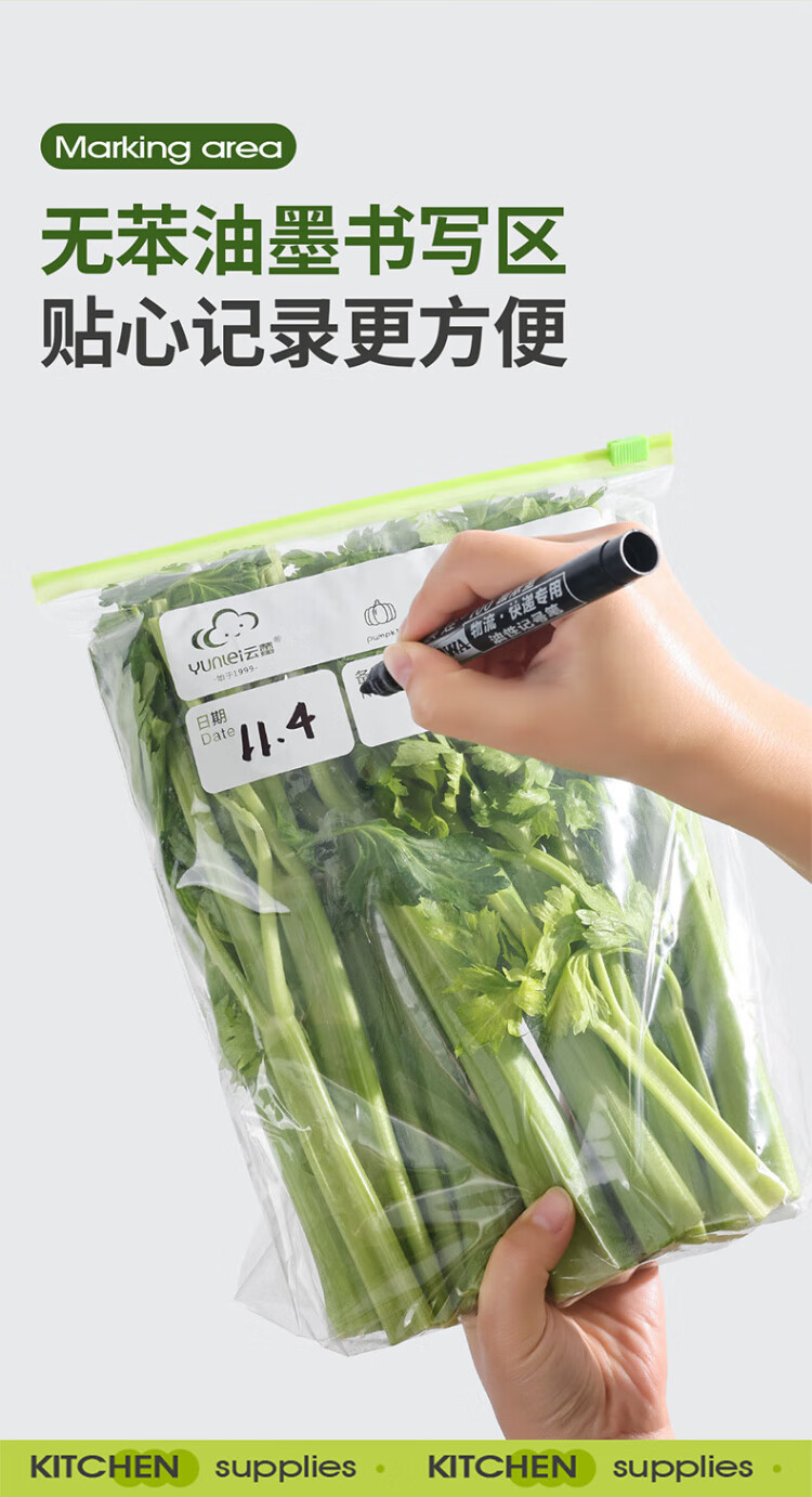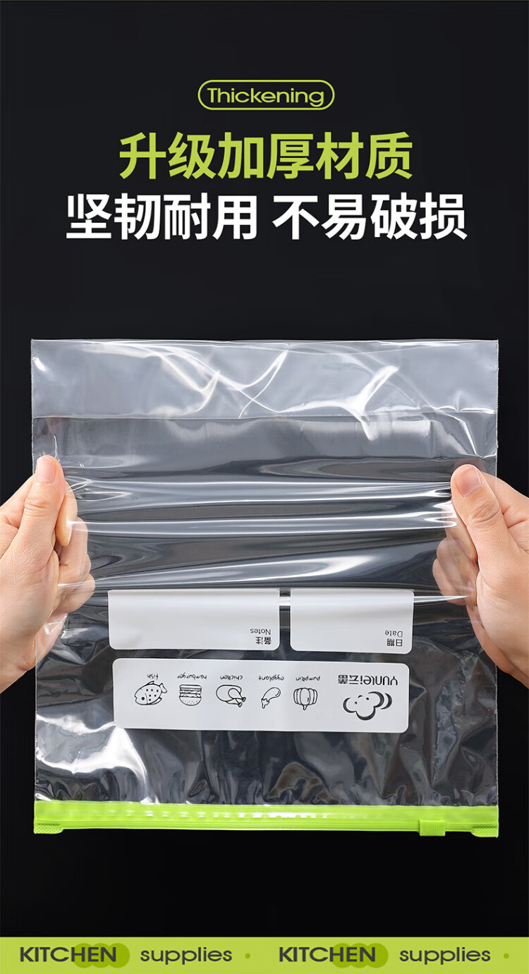 Yunlei zippered fresh-keeping bag dense bag thickened food grade household refrigerator kitchen waterproof and moisture-proof slide lock large size 20 pieces