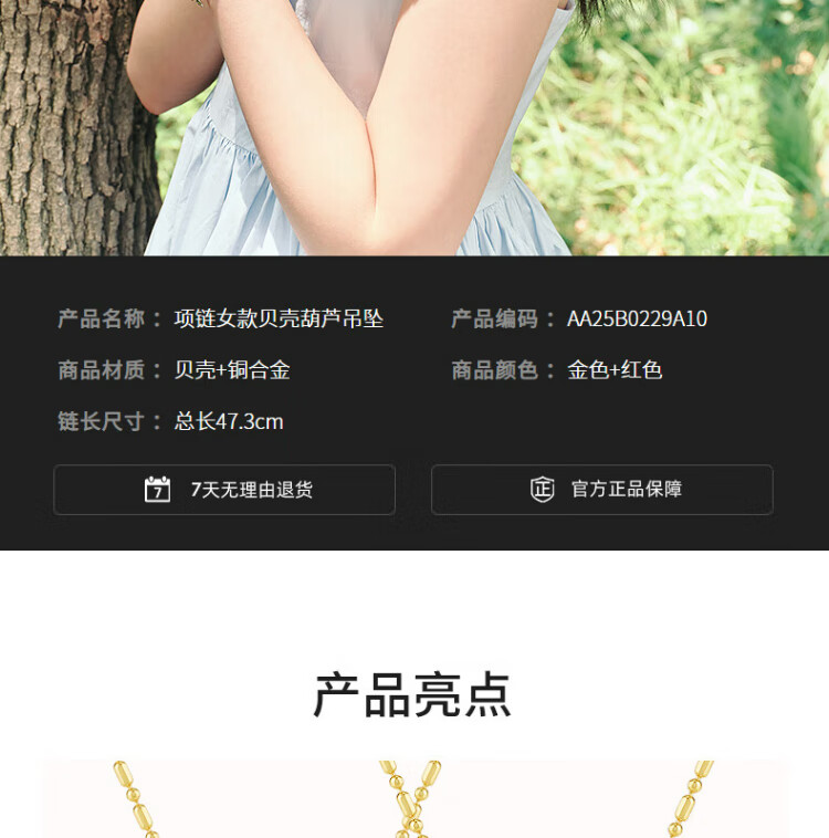 AJIDOU Ajidou necklace women's fashionable and simple shell double-sided gourd pendant clavicle chain niche light luxury high-end sense