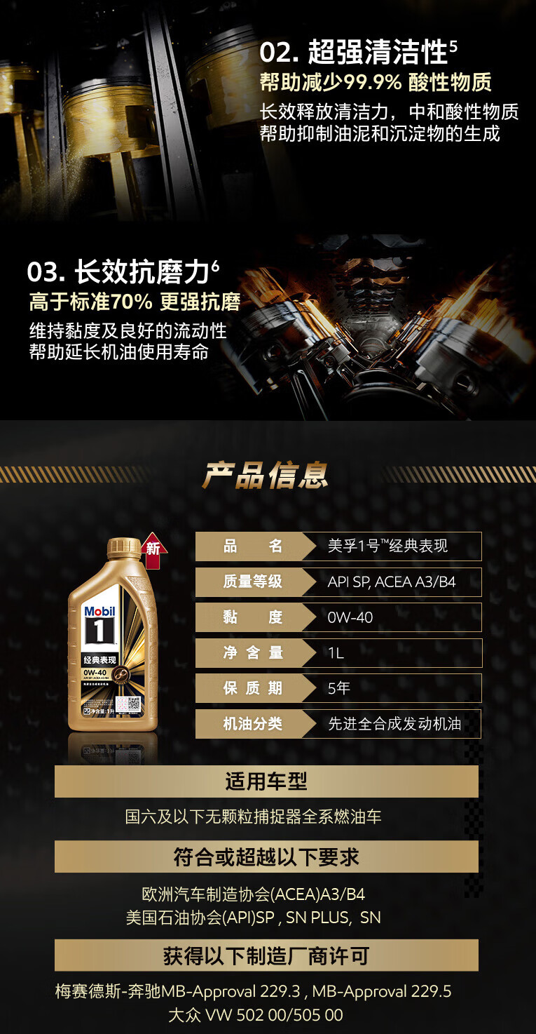 Mobil Mobil 1 Classic Performance 0W-40 SP 1L Jinmei Advanced Fully Synthetic Engine Oil Lubricant
