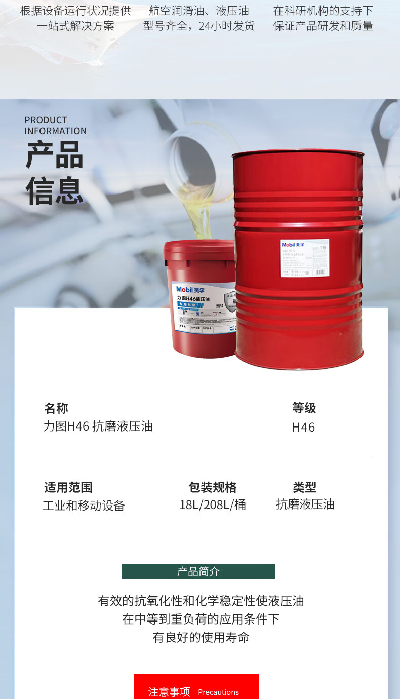 Mobil Strive H46 Hydraulic Oil Long-lasting Anti-wear Hydraulic Oil No. 46 18L/barrel