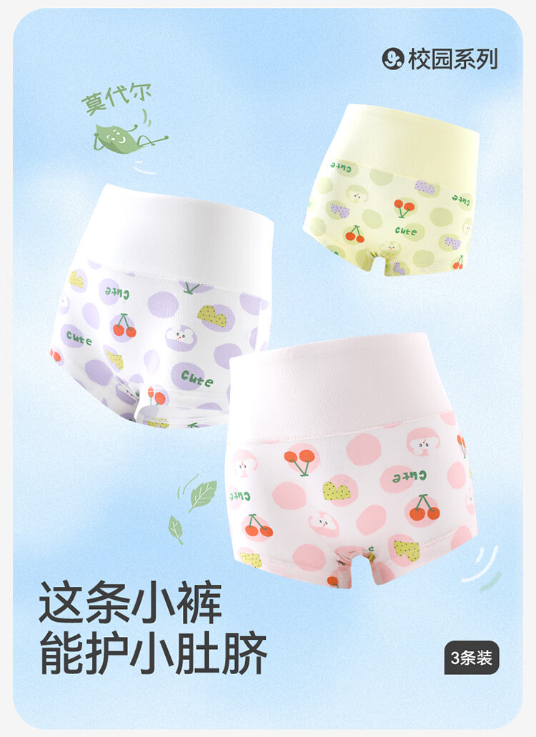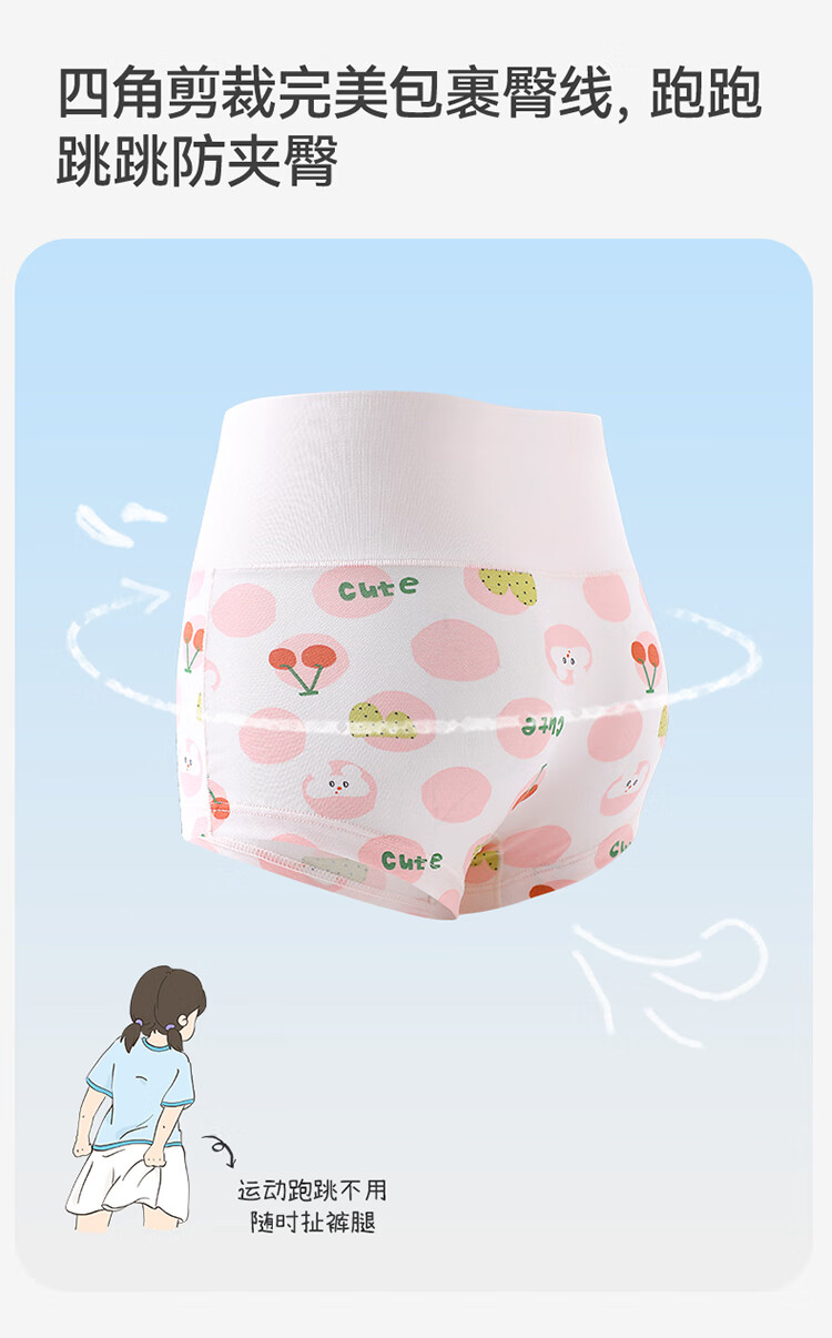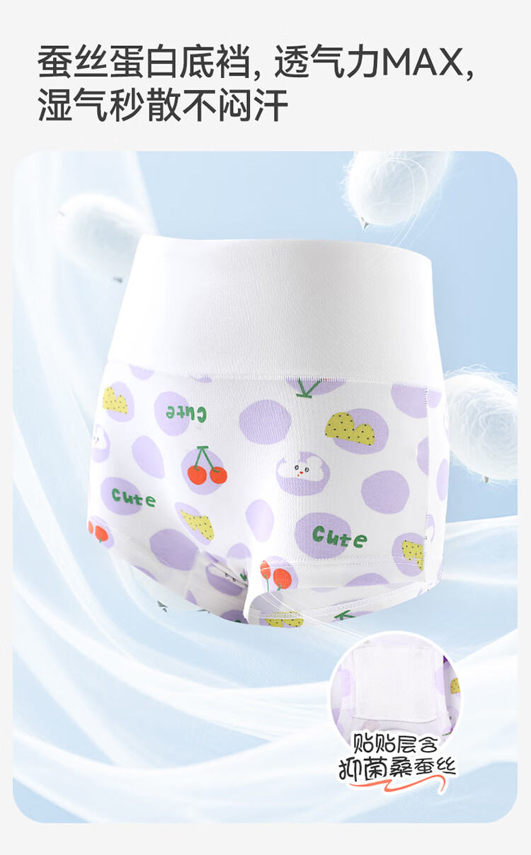 Jiu Suiban children's underwear girls 7A antibacterial boxer briefs for children and middle-aged children Category A anti-cold high waist belly protection silk crotch shorts