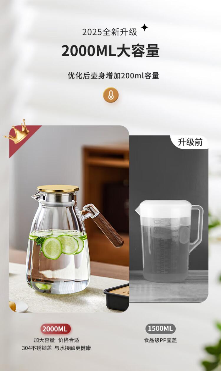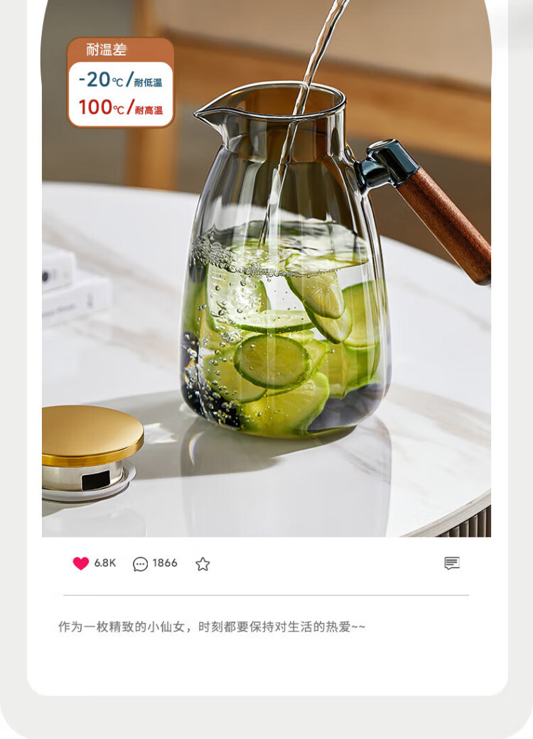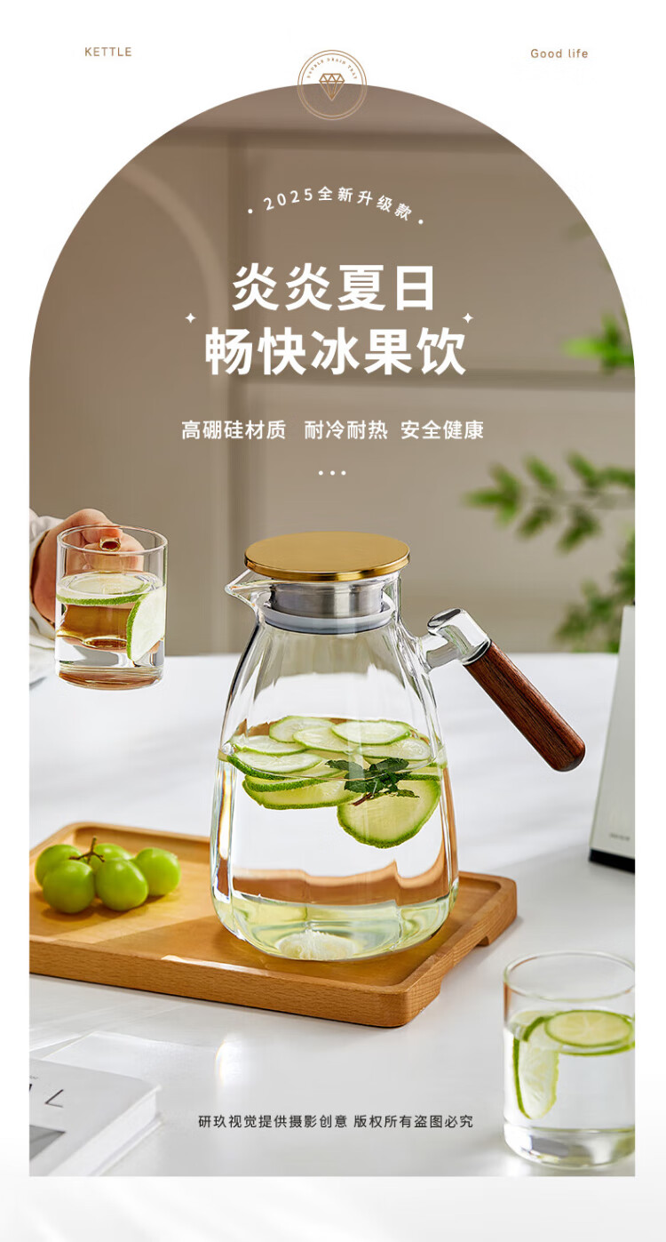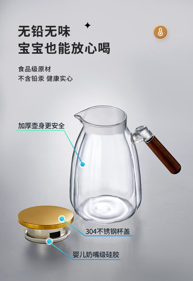 Yipot tea glass cold kettle thickened high temperature resistant household large capacity boiled water cup thickened high borosilicate juice cold kettle