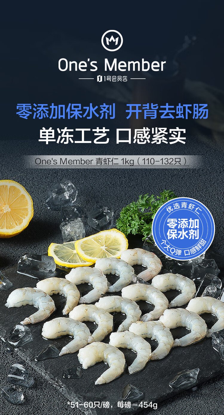 No. 1 member store green shrimp 1kg 0 added water-retaining agent, manual shrimp removal, zipper bag for easy feeding