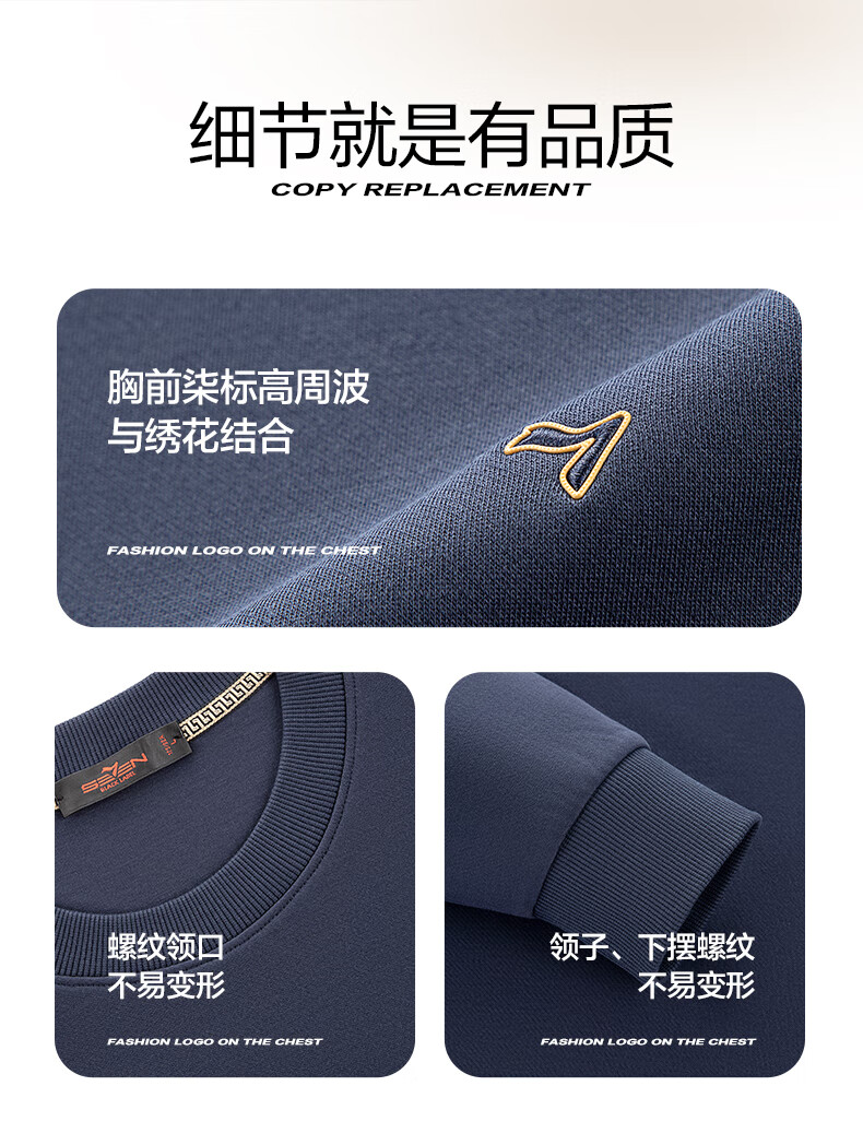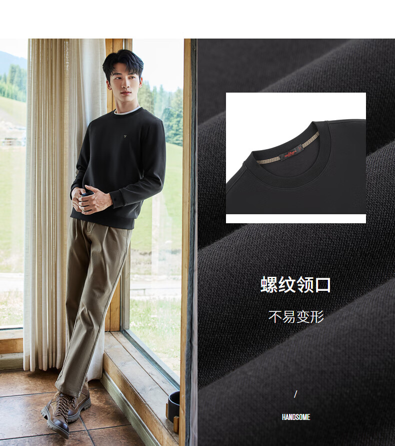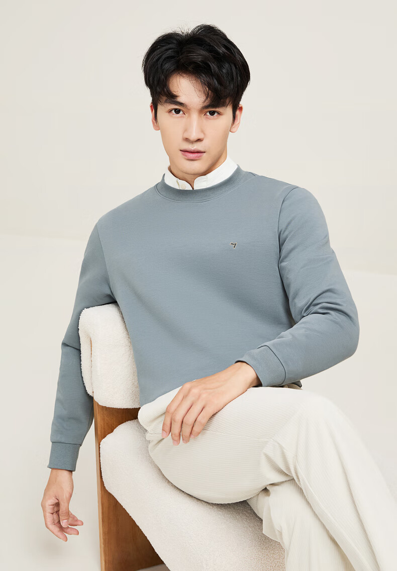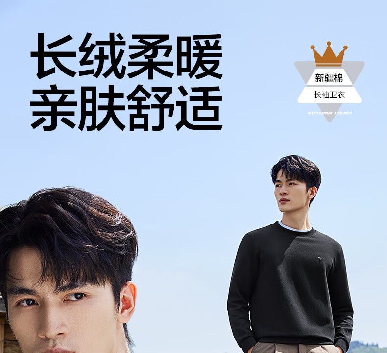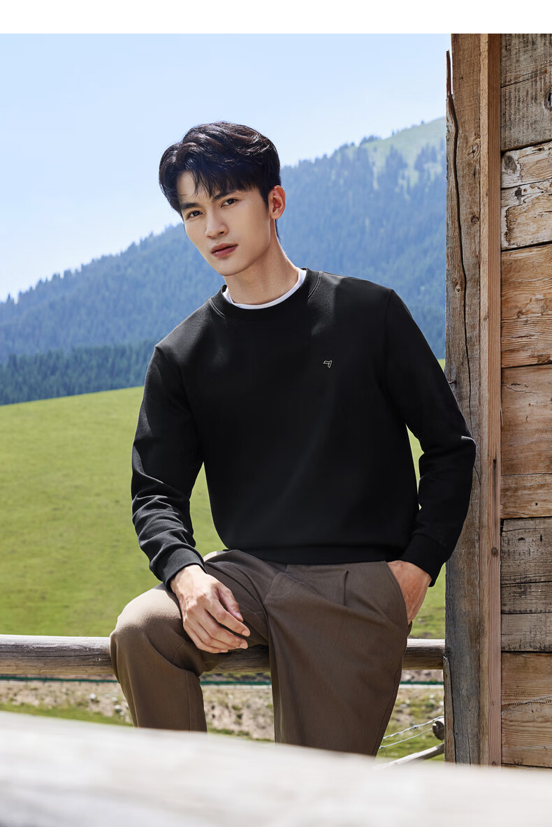 Qipai Xinjiang cotton men's round neck sweatshirt 2025 autumn fashion casual versatile pullover long-sleeved top