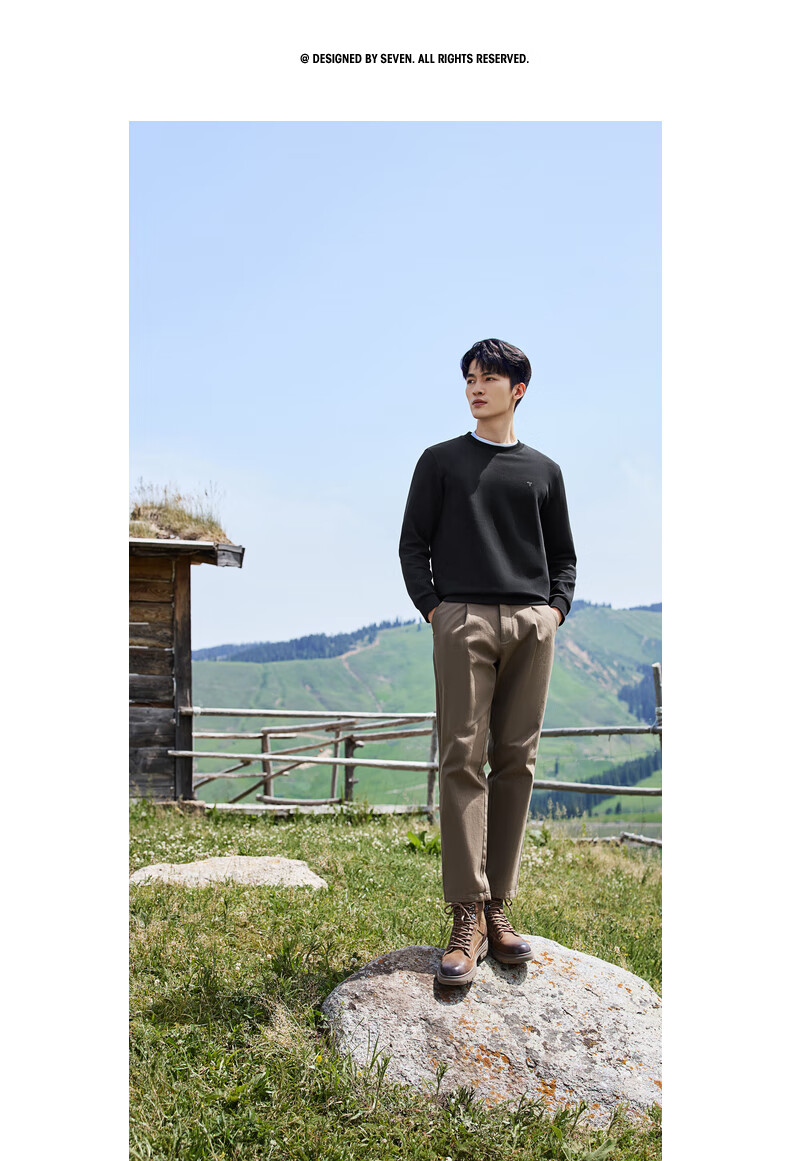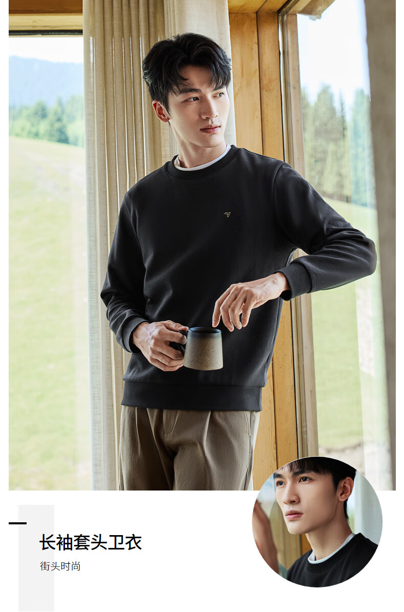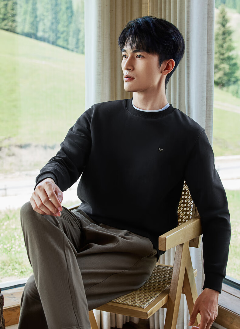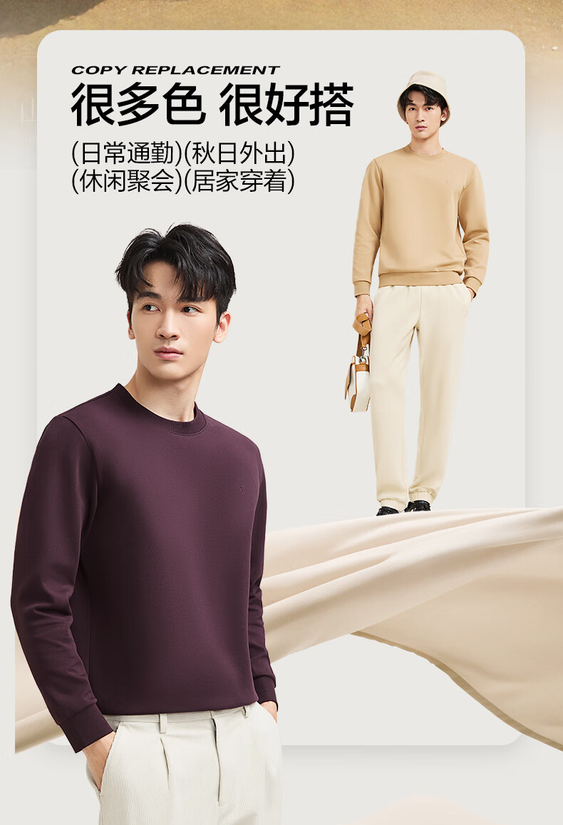 Qipai Xinjiang cotton men's round neck sweatshirt 2025 autumn fashion casual versatile pullover long-sleeved top