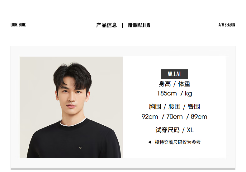 China (cm) 165 / 88-90 170 / 96-98 175 / 108-110 180 / 118-122 185 / 126-130