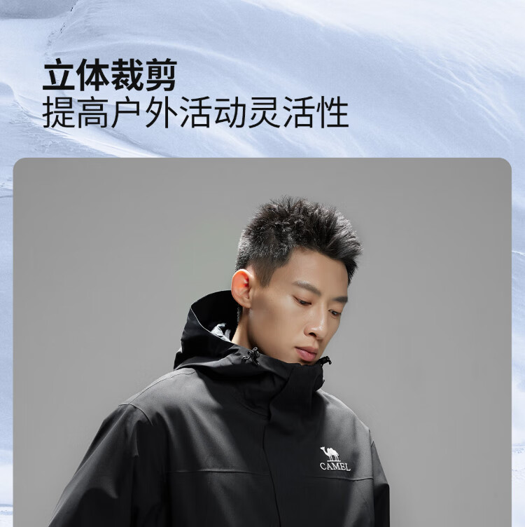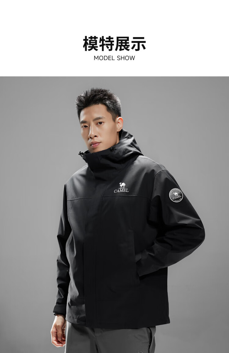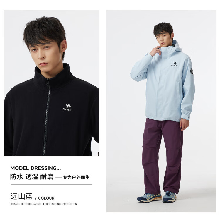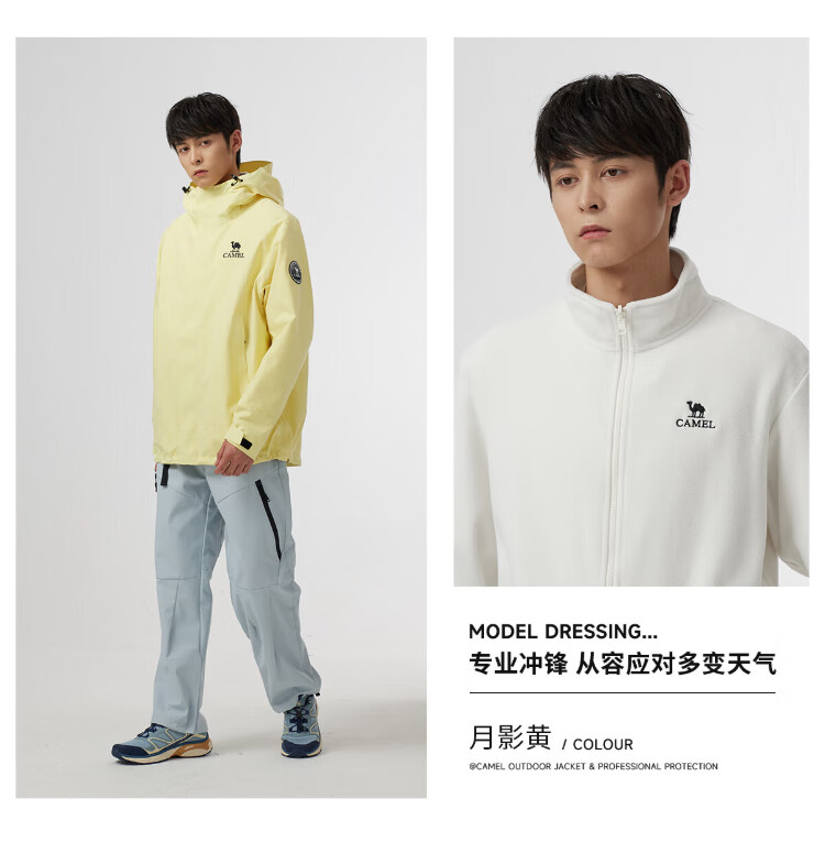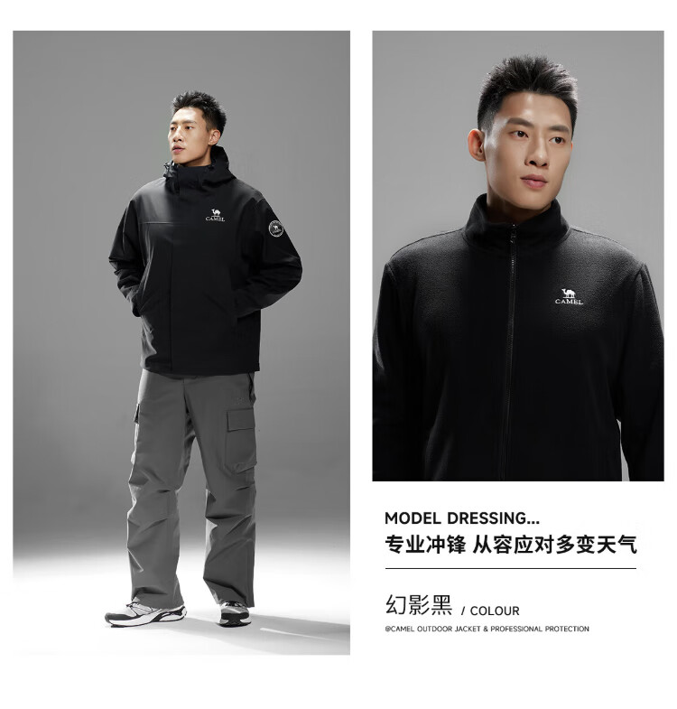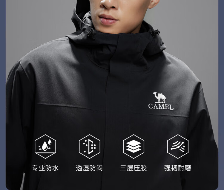 Camel (CAMEL) King Kaijia ICON outdoor fleece jacket three-in-one professional rainstorm grade waterproof hard shell jacket B348