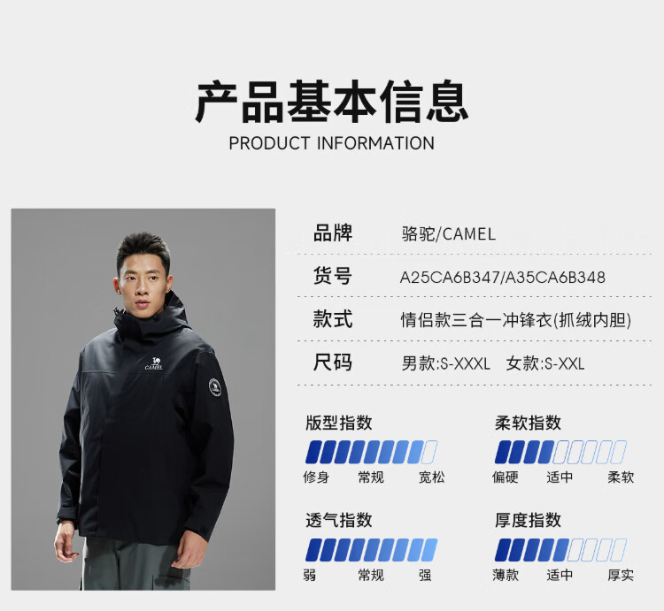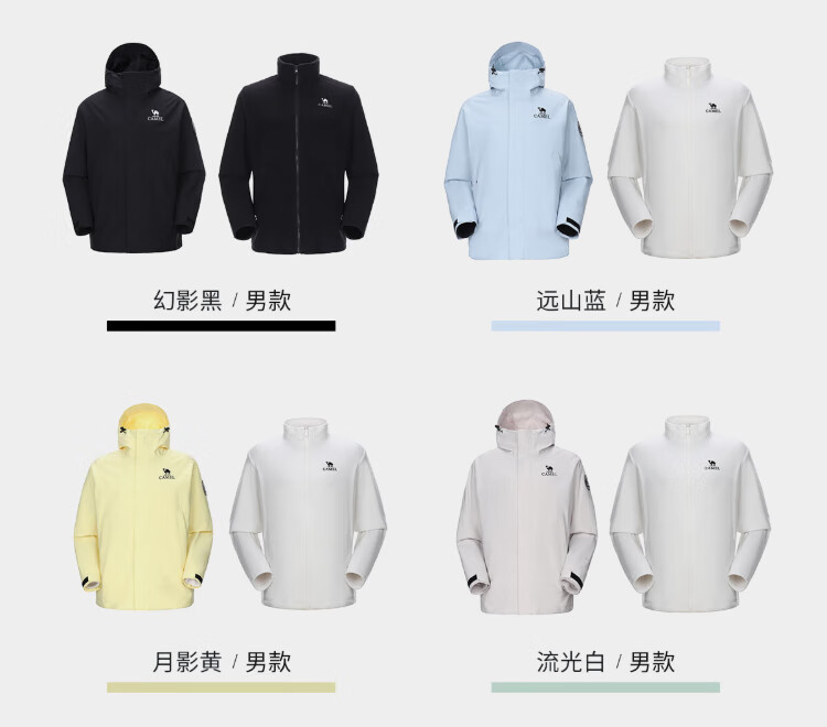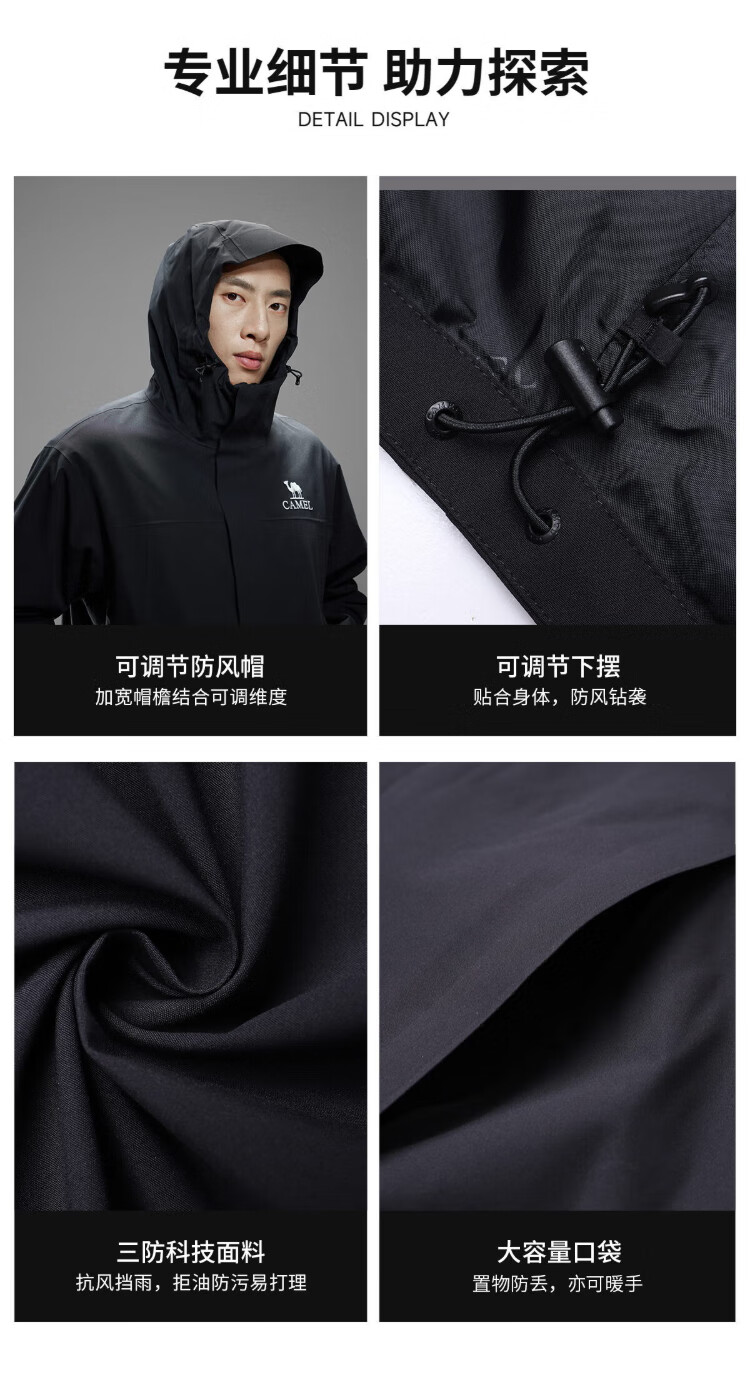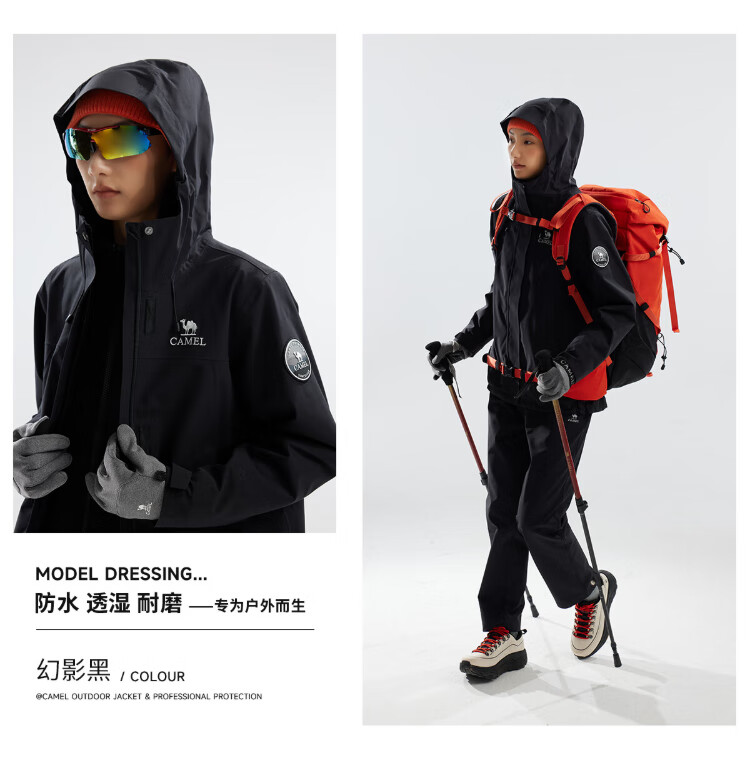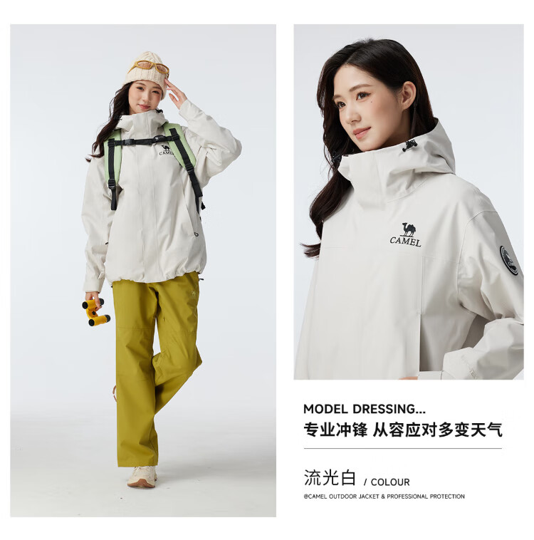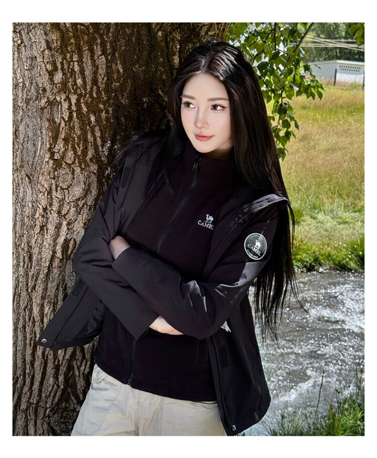 Camel (CAMEL) King Kaijia ICON outdoor fleece jacket three-in-one professional rainstorm grade waterproof hard shell jacket B348