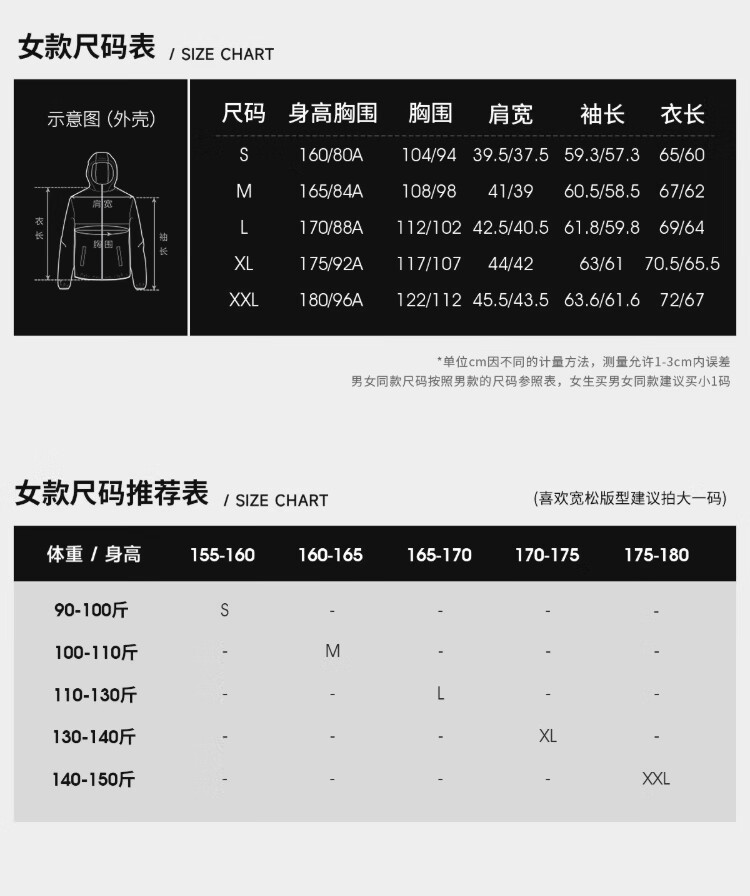 China (cm) 160-165/84-86 165-170 / 88-90 167-172 / 92-96 168-173 / 98-102 170-176 / 106-110