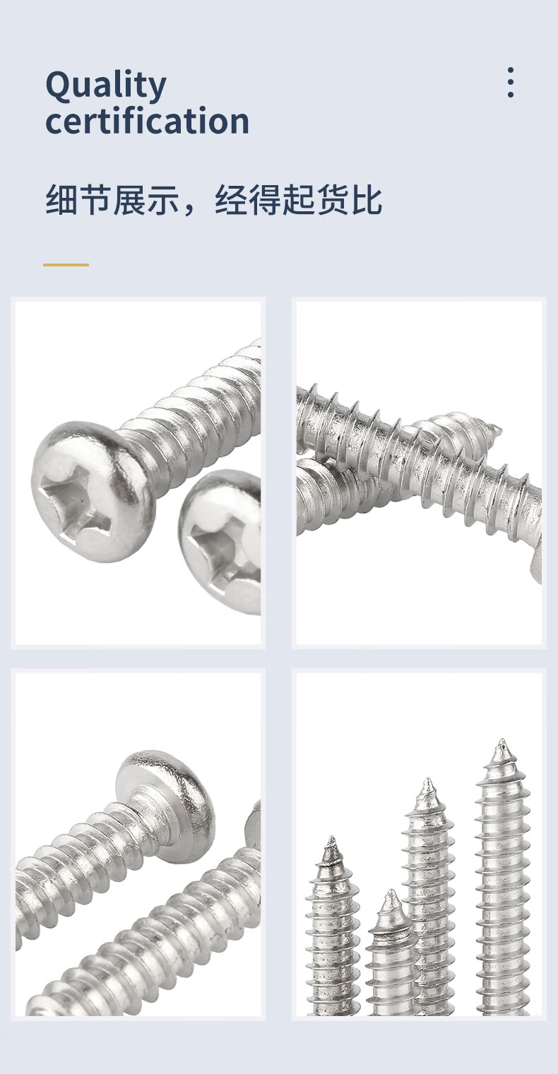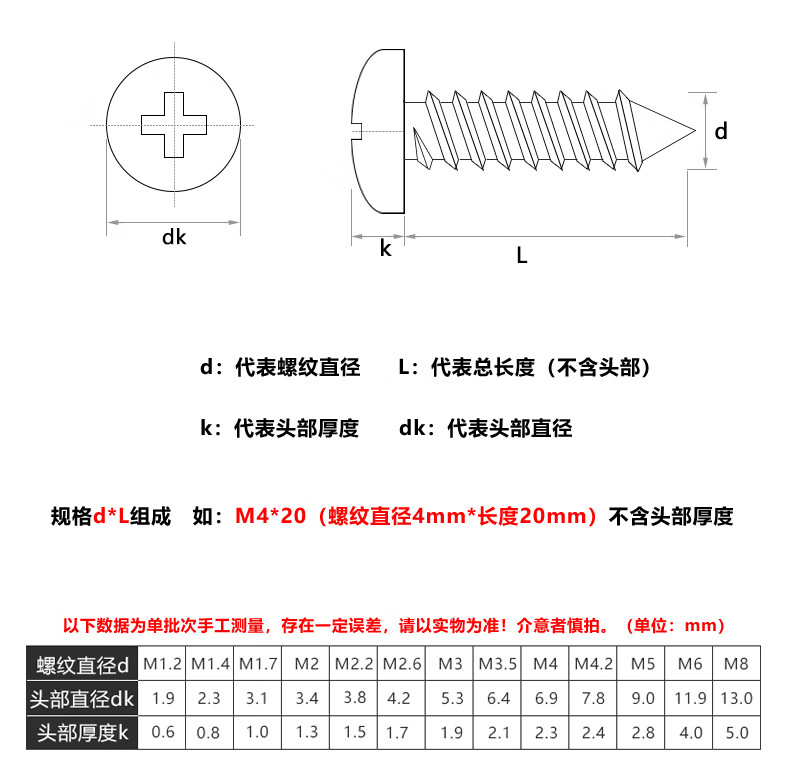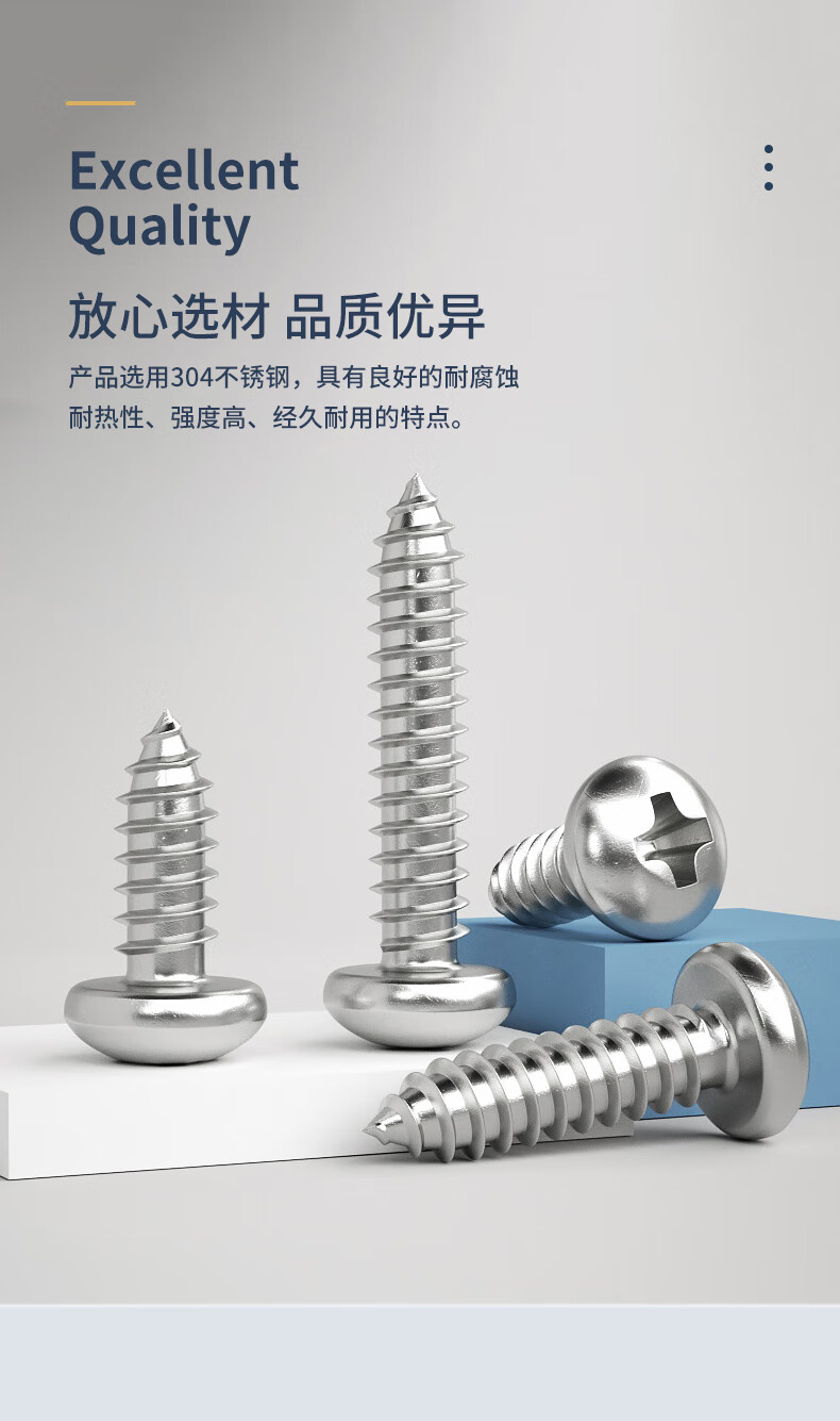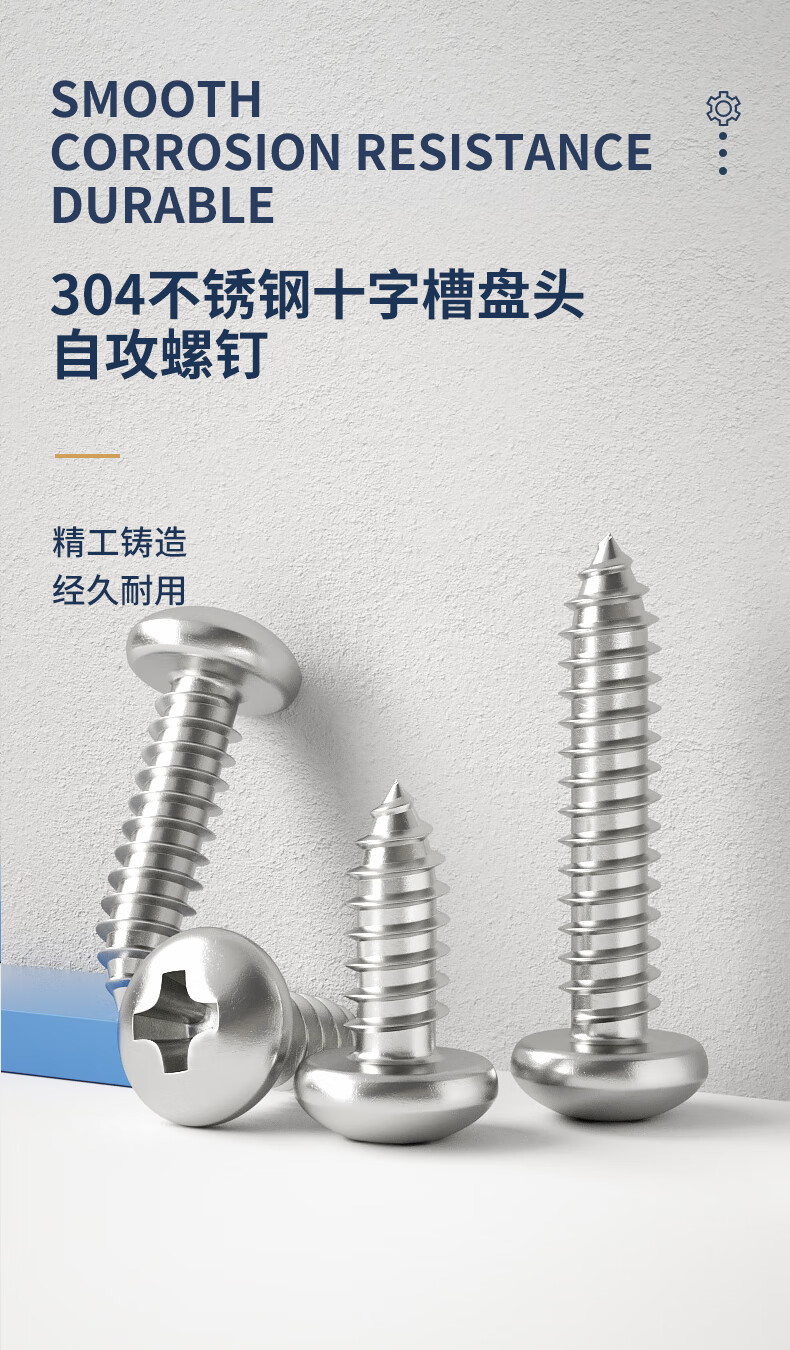 GUWANJI Cross recessed pan head self-tapping screws 304 stainless steel cross pan head self-tapping screws round head screws with pointed tail M4x20 100 pcs/pack