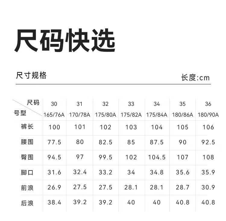 Outseam (cm) 99 cm 101.5 cm 104 cm 106.5 cm 109 cm