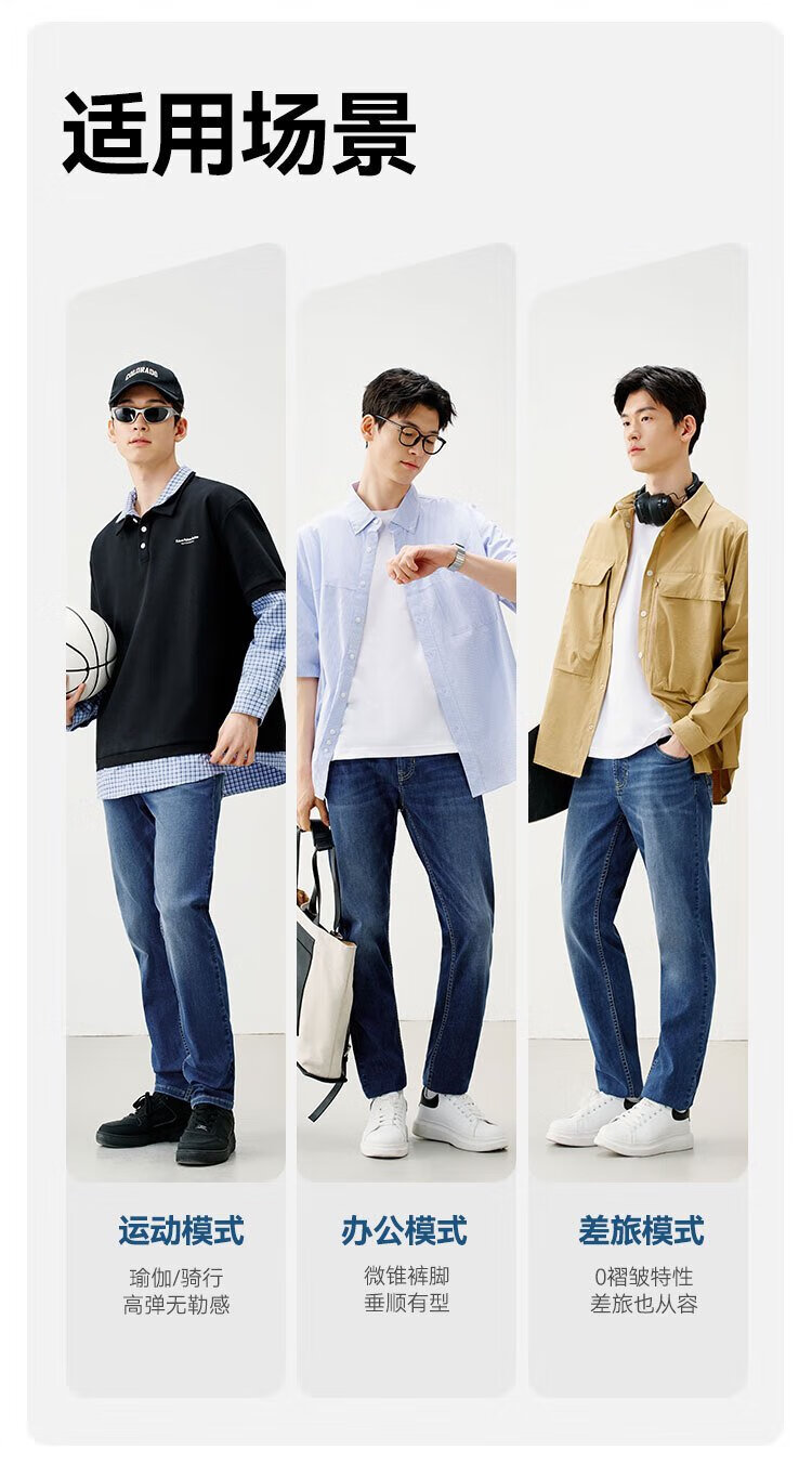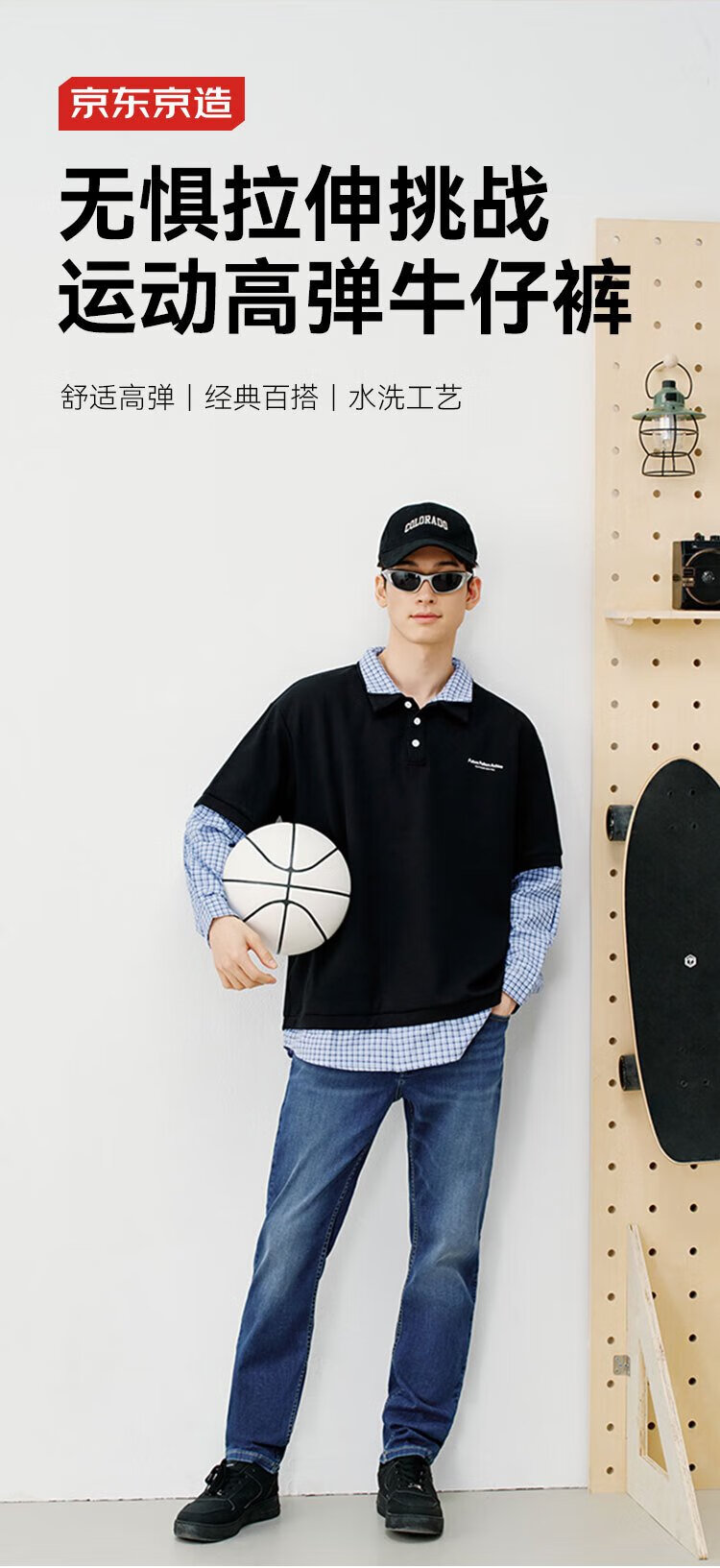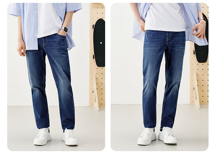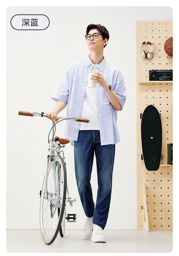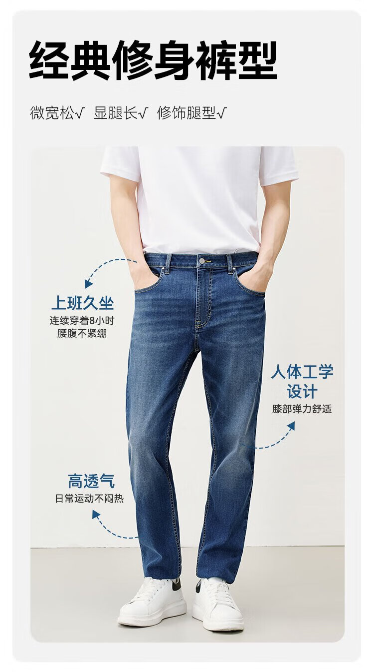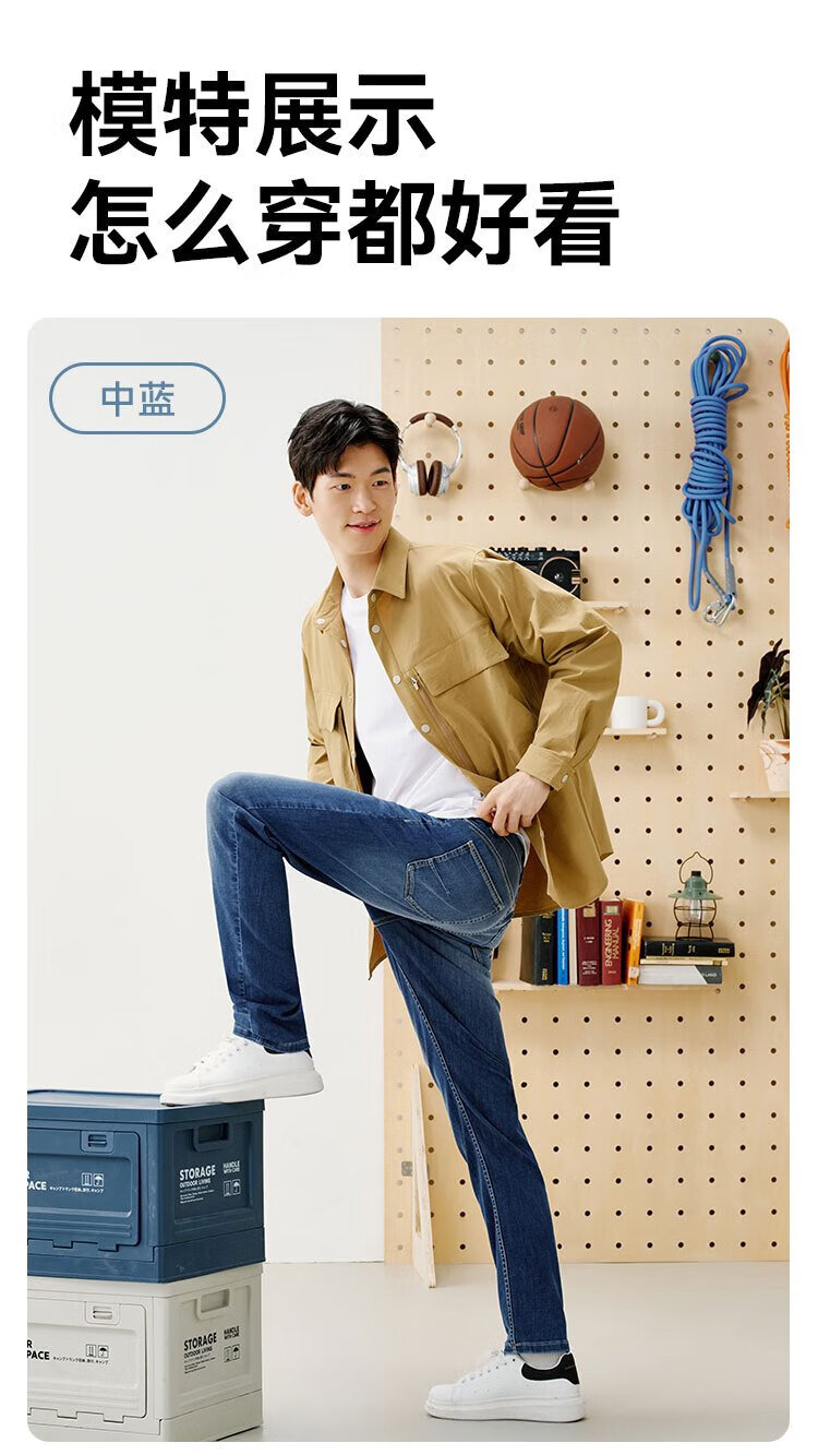 Jingjing Tokyo-made jeans men's super elastic sports casual pants for men, comfortable and versatile pants for all seasons, spring and summer, medium blue 34