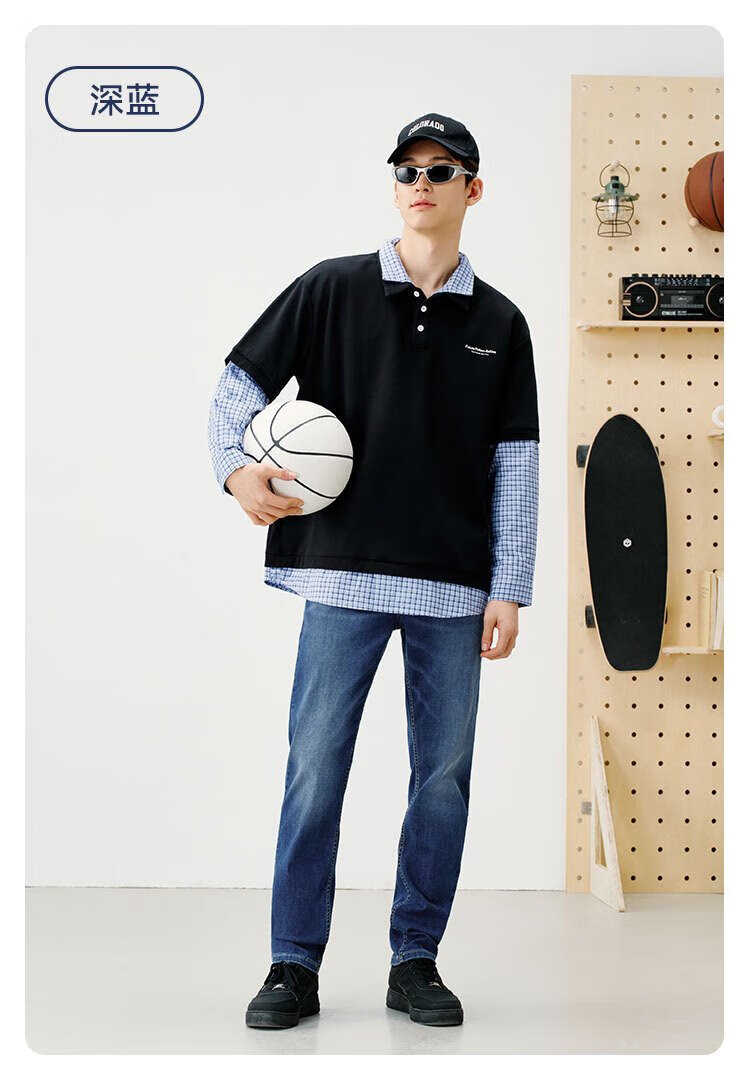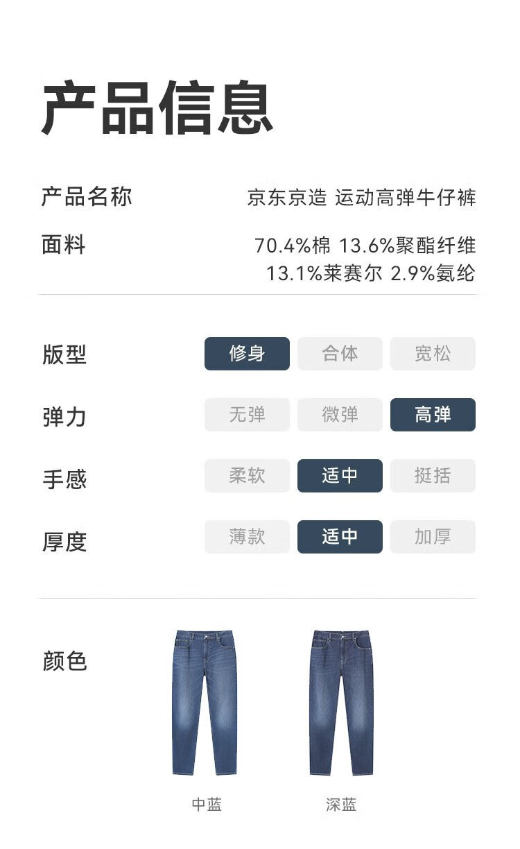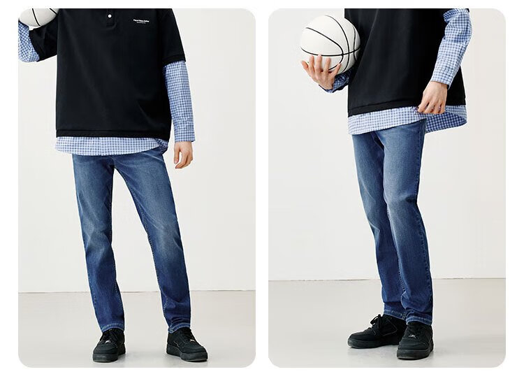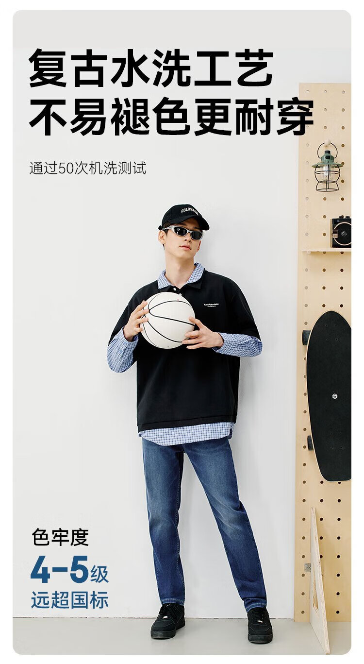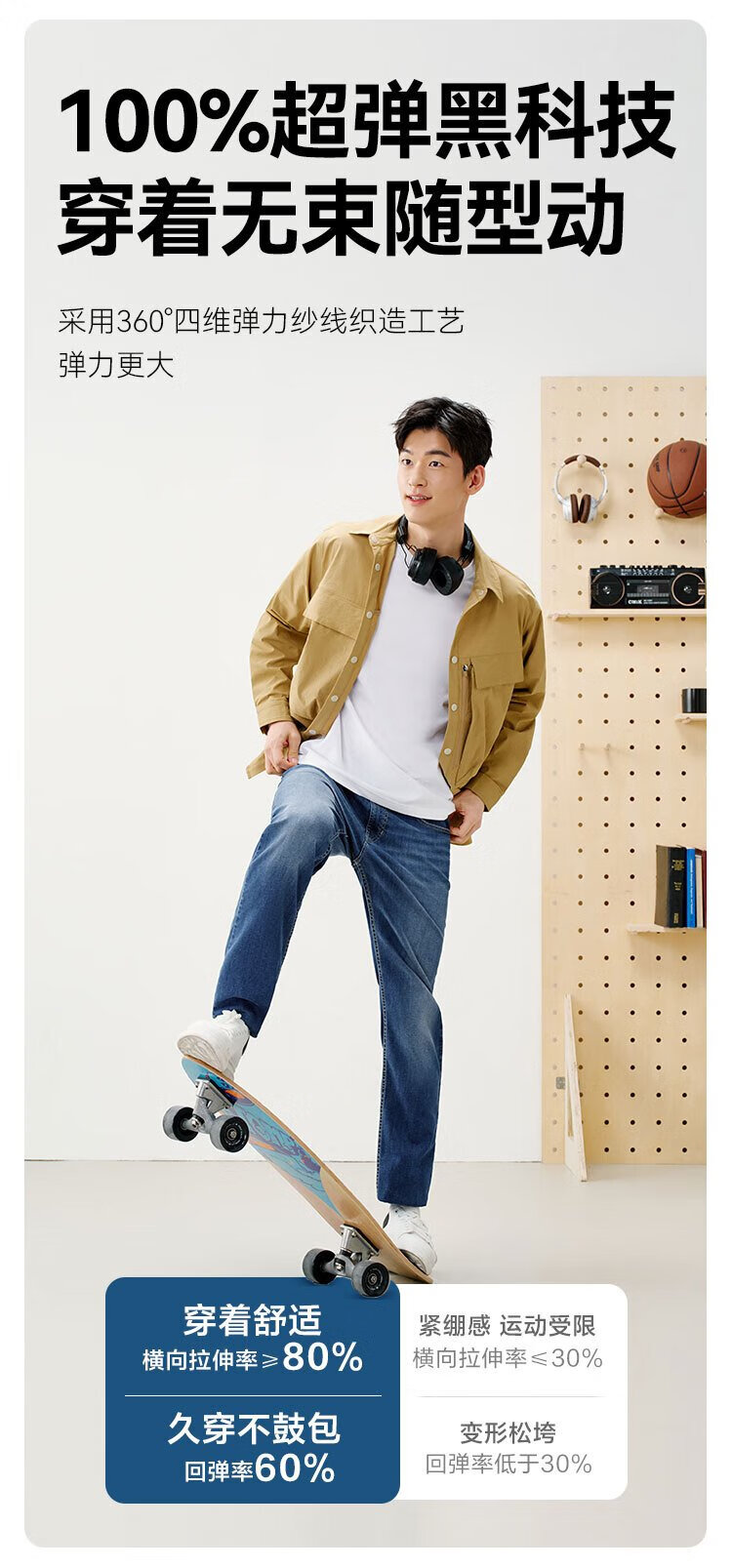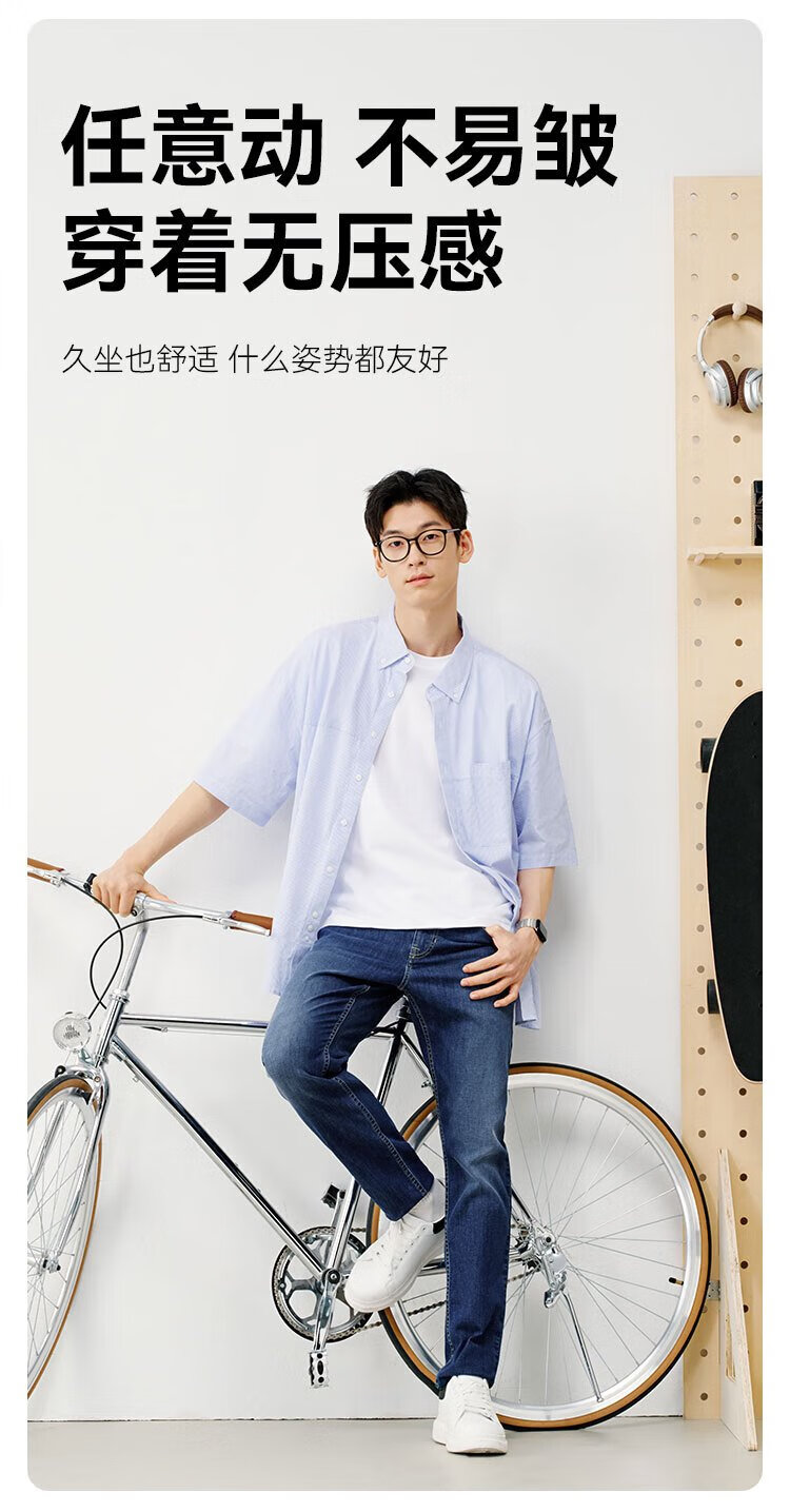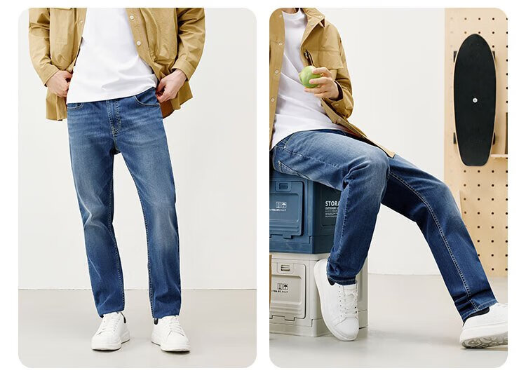 Jingjing Tokyo-made jeans men's super elastic sports casual pants for men, comfortable and versatile pants for all seasons, spring and summer, medium blue 34