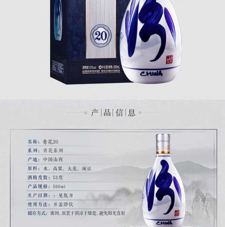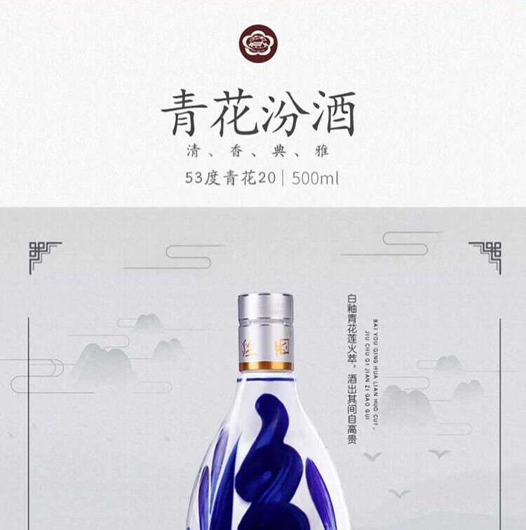 Fenjiu Blue and White 20 Upgraded Version Light-flavor Liquor 53% 500mL Single Bottle (New Version and New Packaging)