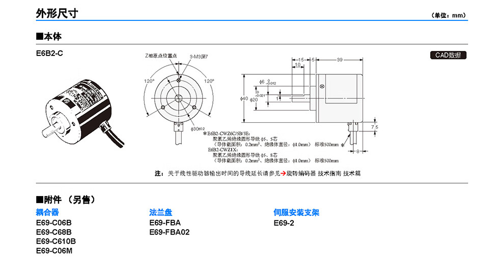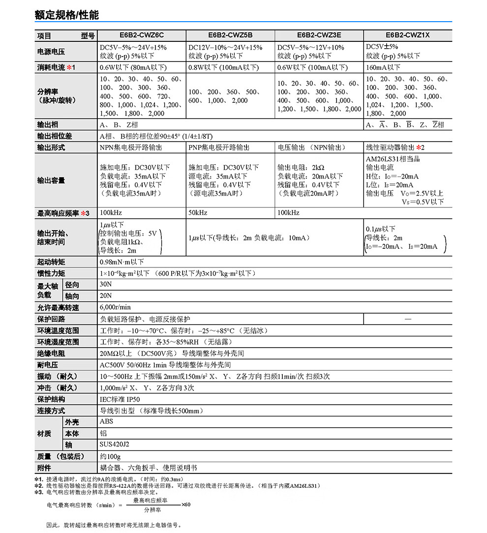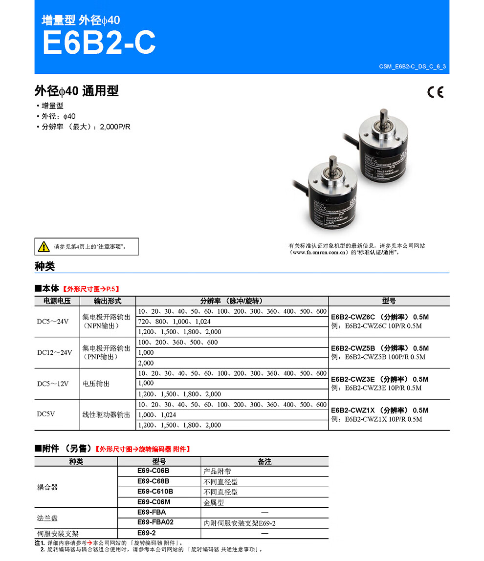 Omron encoder E6B series, wire lead, E6B2-CWZ6C 1000P/R 2M BY OMS