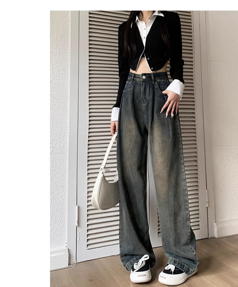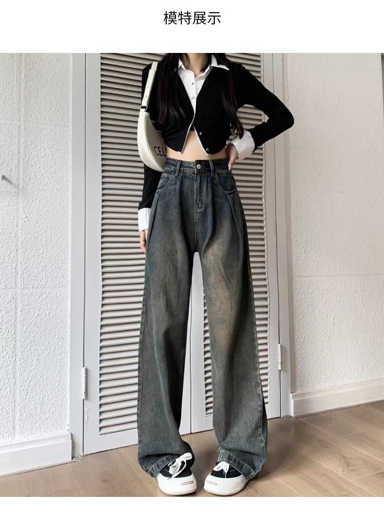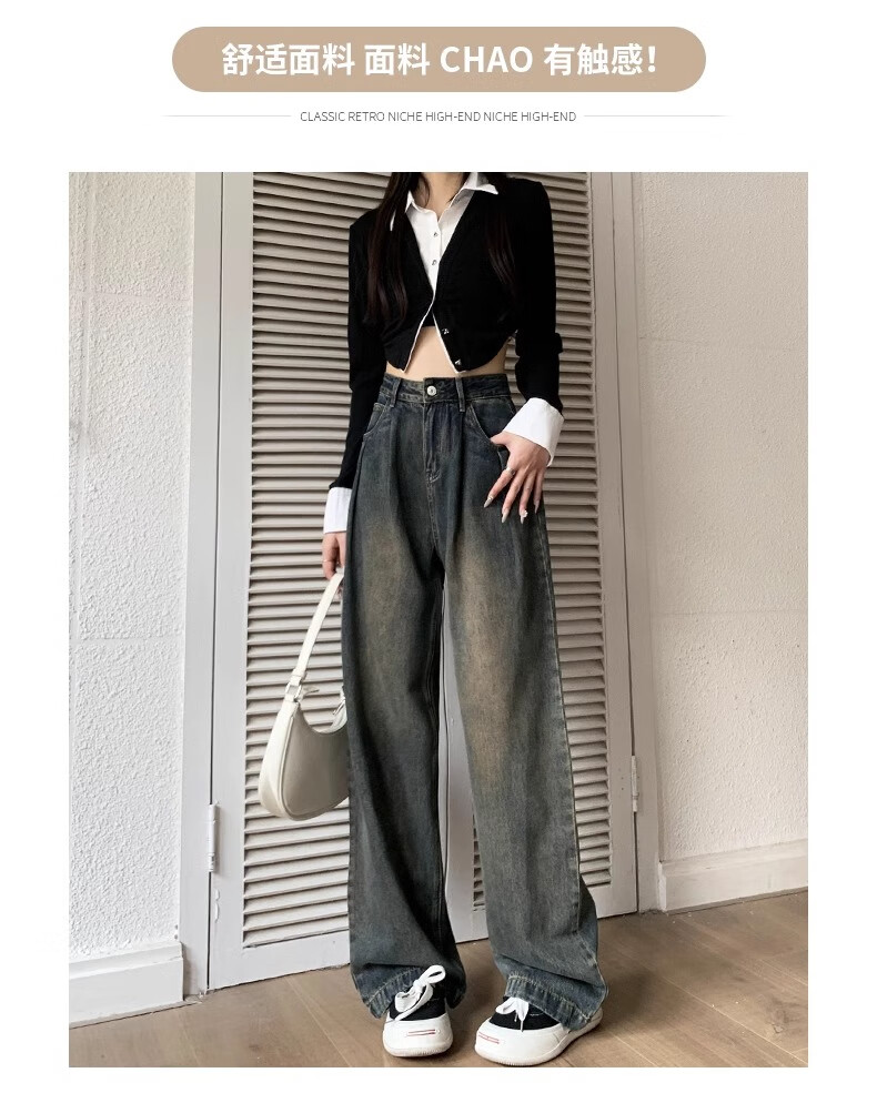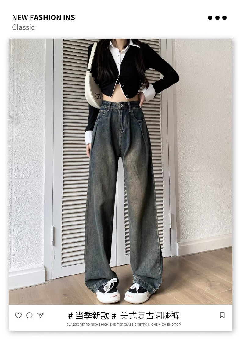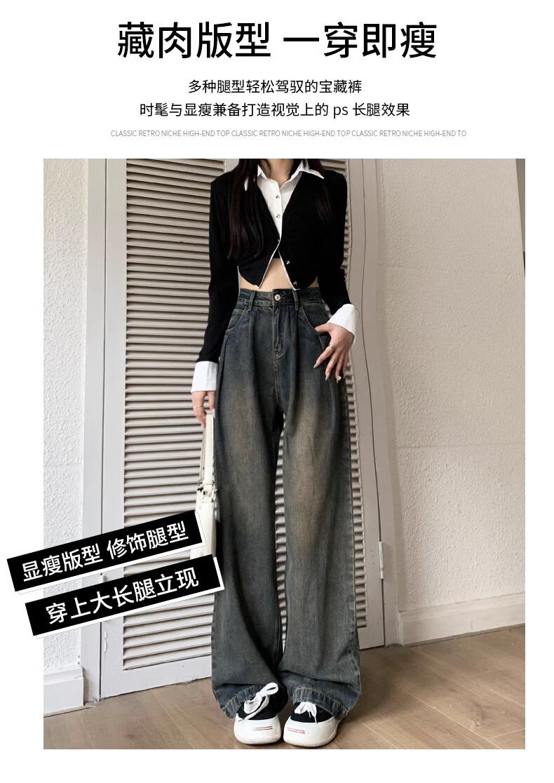 Yi Shangmei Jeans Women's Spring and Autumn 2025 New High Waisted Slim Retro Wide Leg Pants Loose Small Black Straight Leg Pants