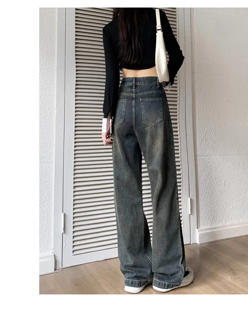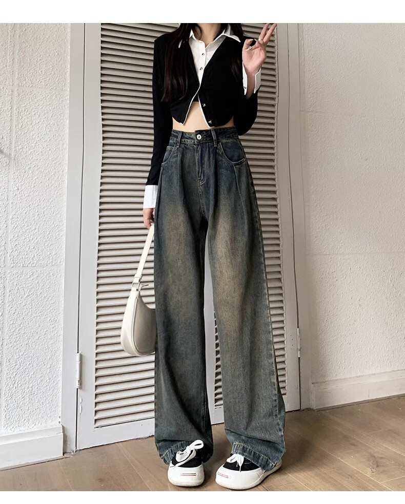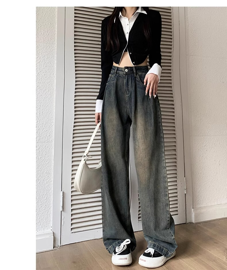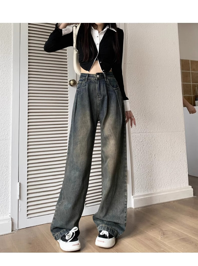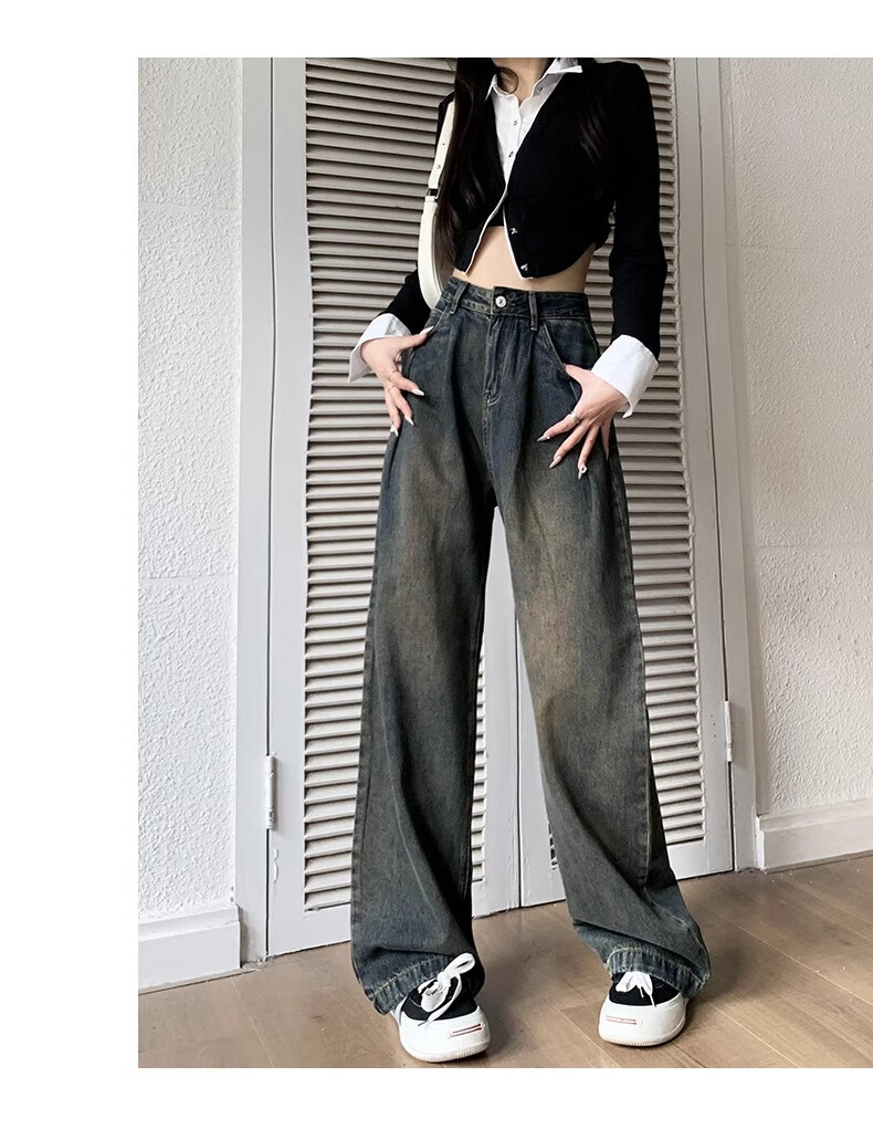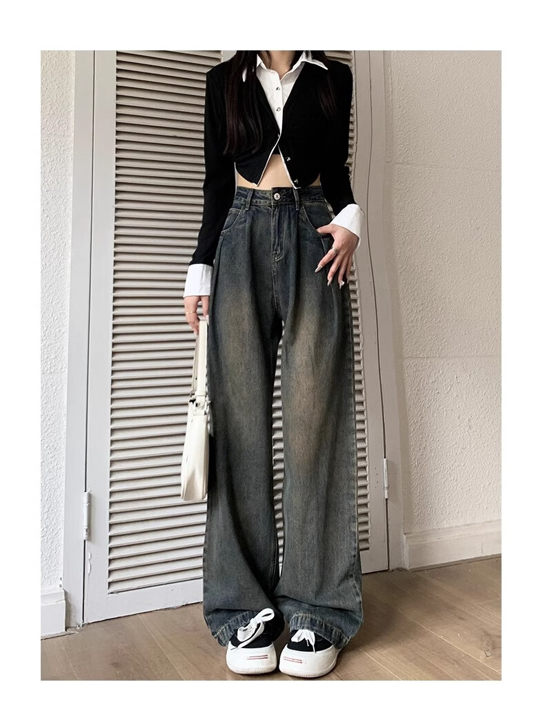Yi Shangmei Jeans Women's Spring and Autumn 2025 New High Waisted Slim Retro Wide Leg Pants Loose Small Black Straight Leg Pants