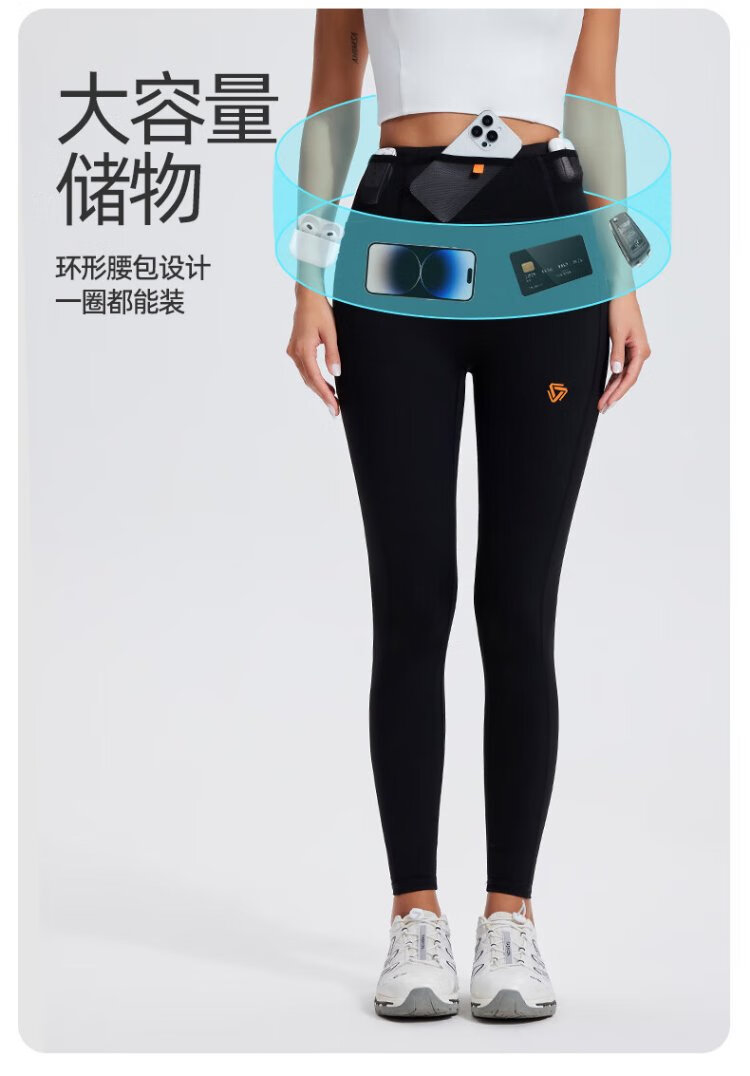 Cosleaf fitness pants women's high elastic belt bag pocket running tight trousers breathable slimming buttocks Pilates yoga pants