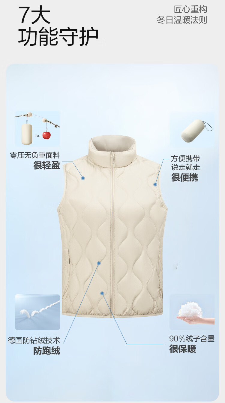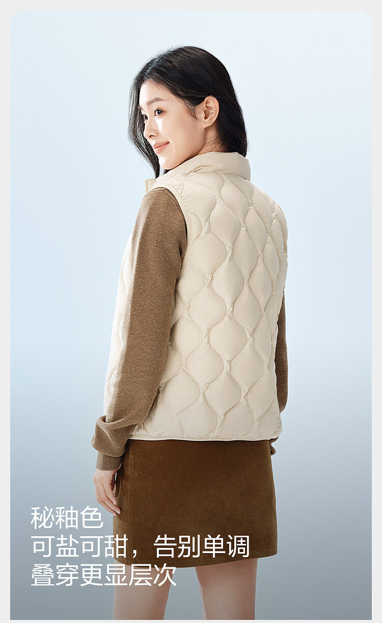 Bosideng 25 Years Down Vest Women's Autumn and Winter 90 Down Thin Stand Collar Slim Short Casual Gift Jacket