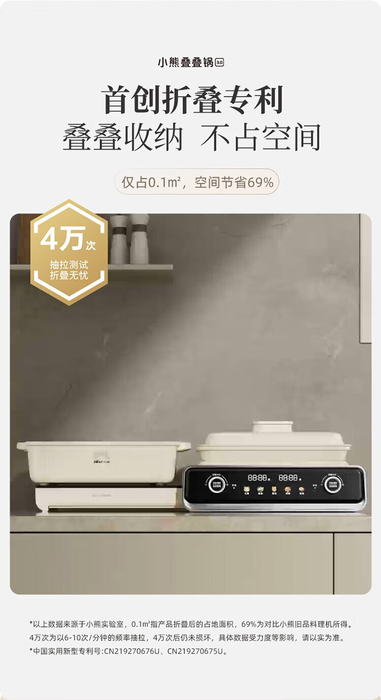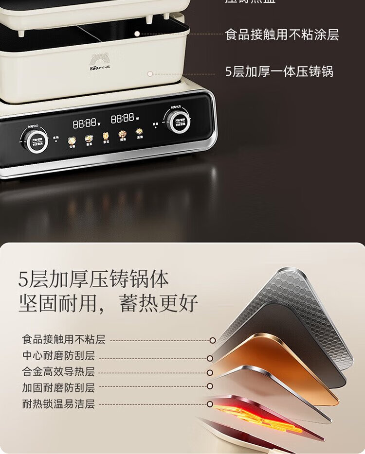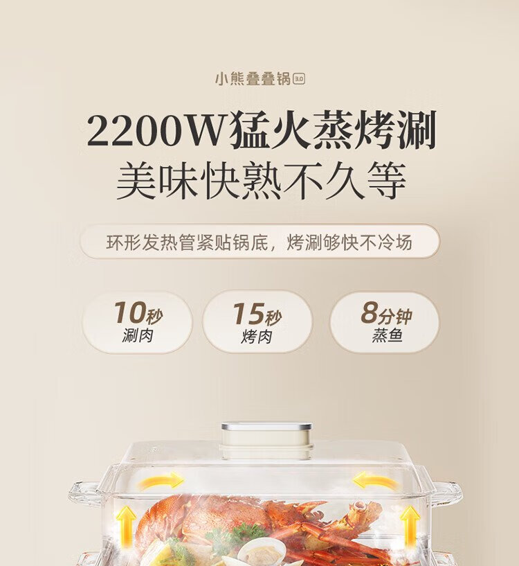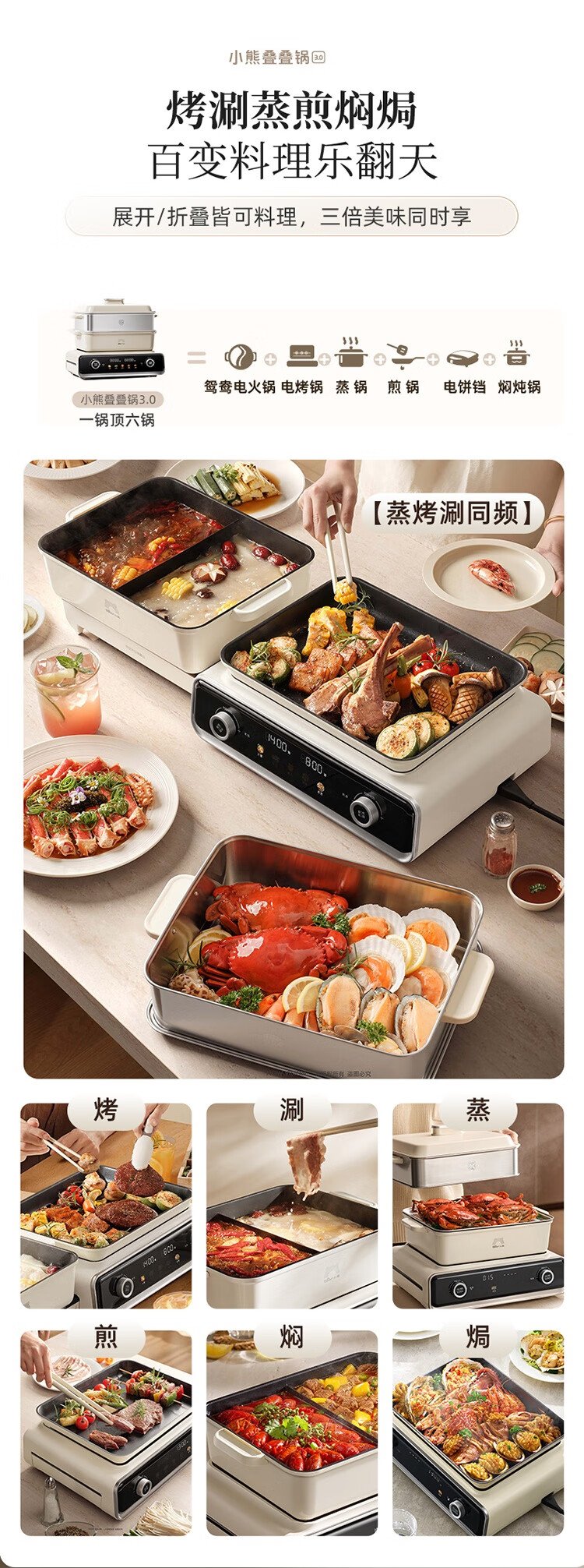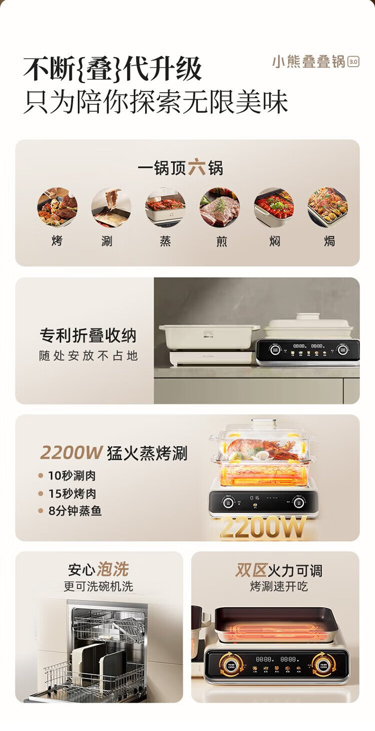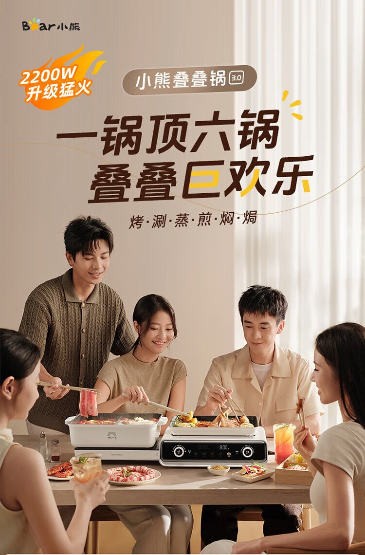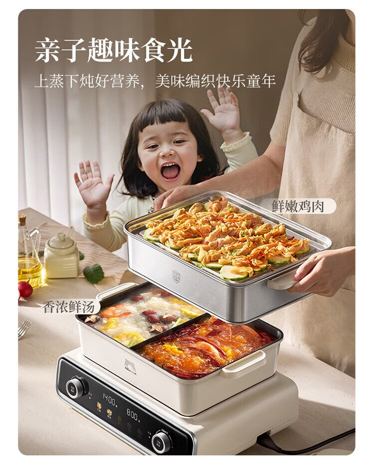 Bear (Bear) electric hot pot special pot folding multi-function pot electric steamer multi-purpose grilled shabu all-in-one home cooking Bear stacking pot 3.0 mandarin duck pot N22P3