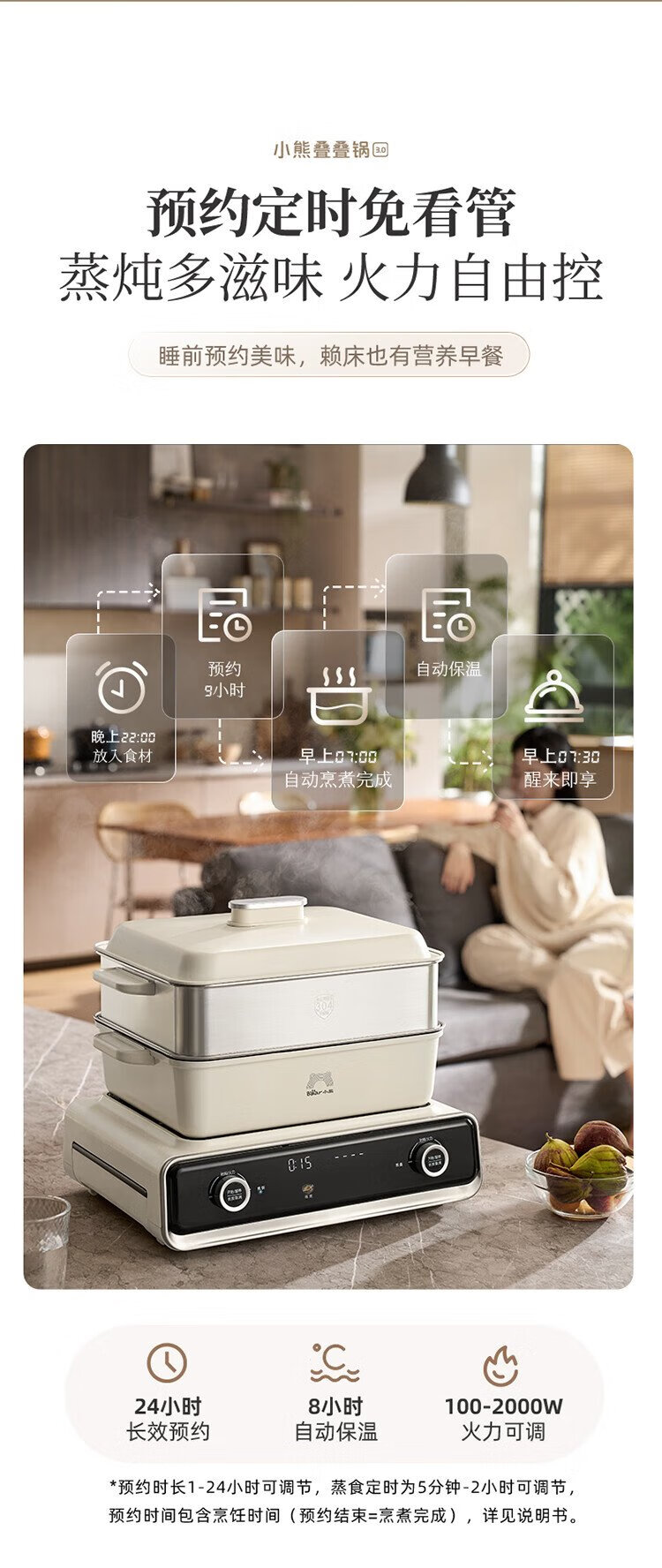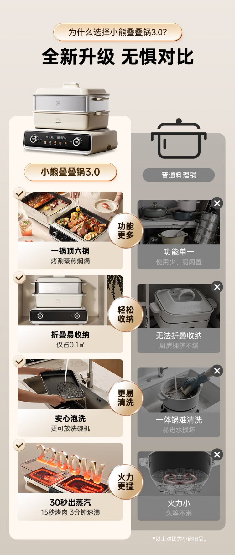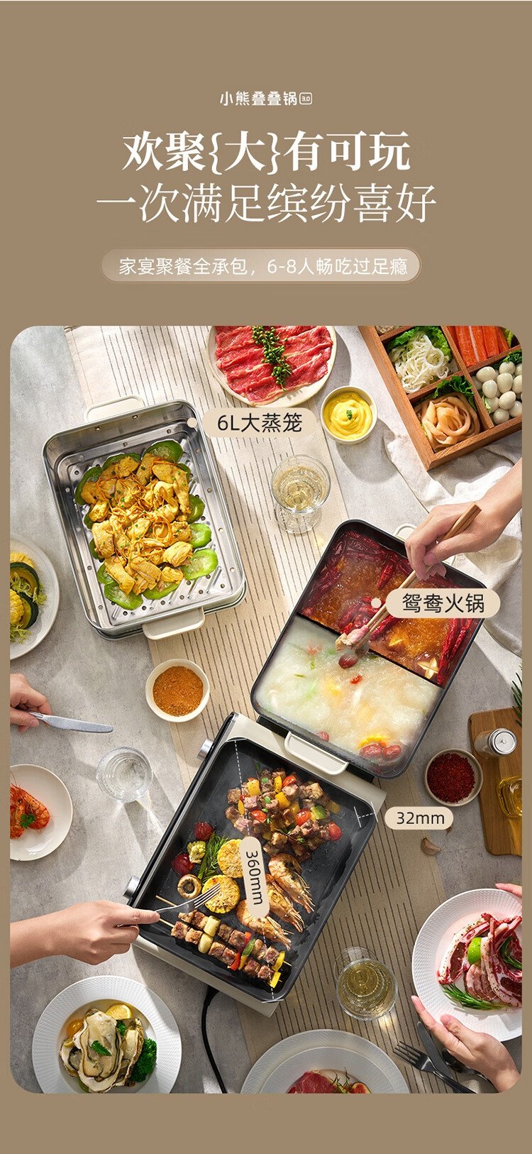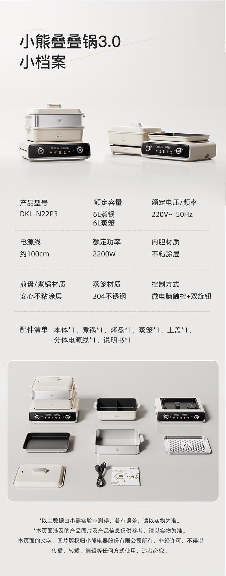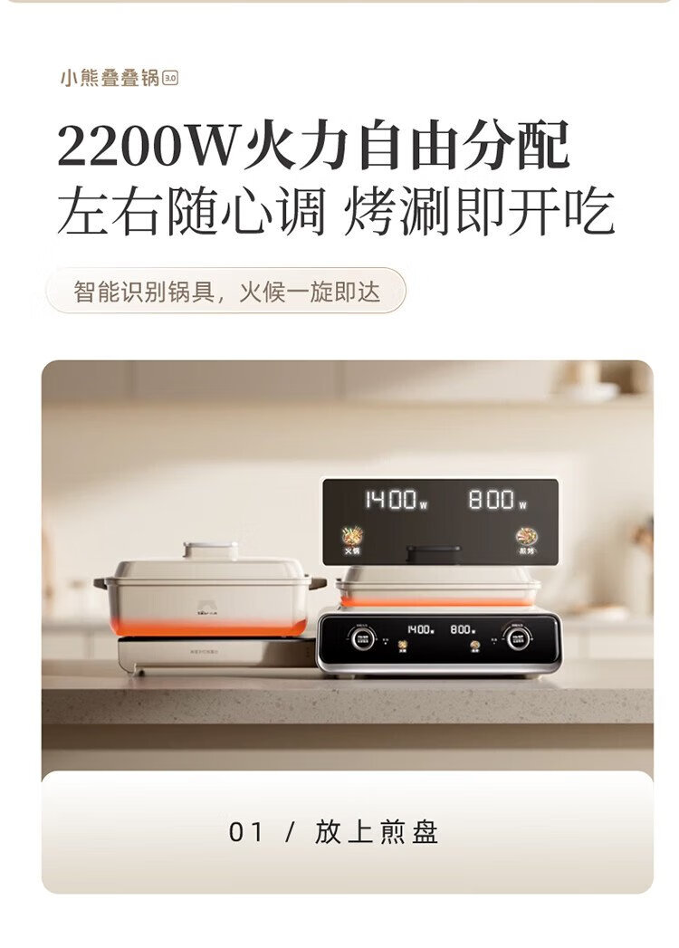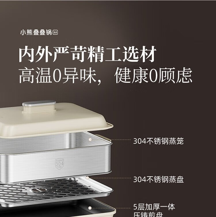 Bear (Bear) electric hot pot special pot folding multi-function pot electric steamer multi-purpose grilled shabu all-in-one home cooking Bear stacking pot 3.0 mandarin duck pot N22P3