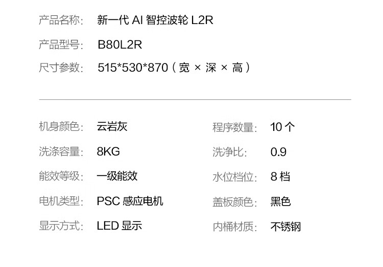 TCL 8kg small pulsator washing machine fully automatic home L2R large capacity first-class energy efficiency home appliances national subsidy trade-in with delivery and installation B80L2R