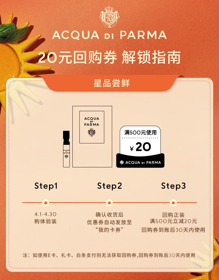 ACQUA DI PARMA new fragrance trial gift Good Morning Perfume 1.5ml with 20 yuan repurchase coupon