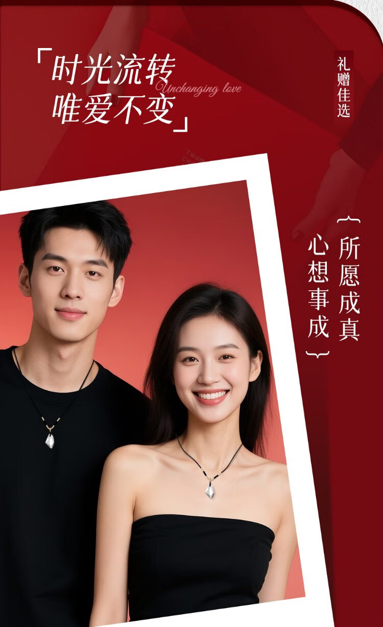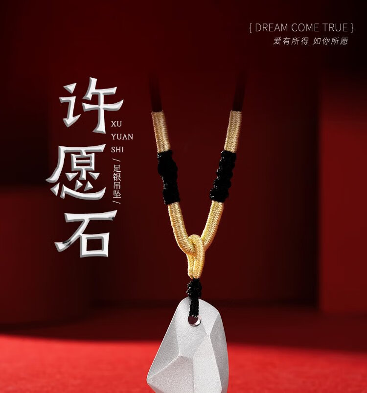Zhenhui Silver Pure Silver 999 Wishing Sanshengshi Silver Necklace for Men and Women Pendants Fashion Jewelry Birthday Gifts for Boys and Girlfriends