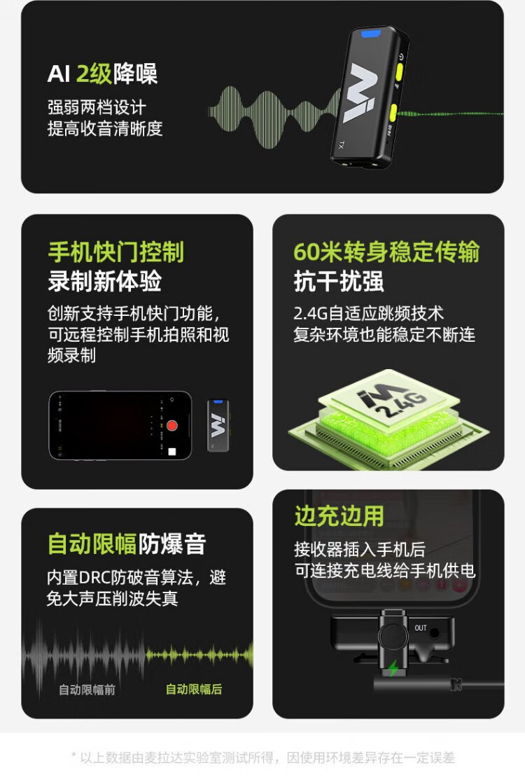 Melada S5 Wireless Microphone Live Noise Reduction Lavalier Microphone Mobile Phone Vlog Outdoor Interview Recording Sound Card Radio Microphone Long-distance Bee Microphone