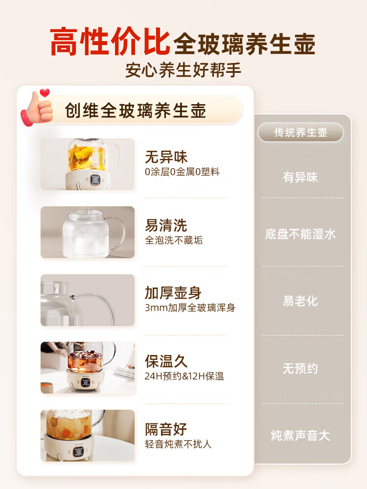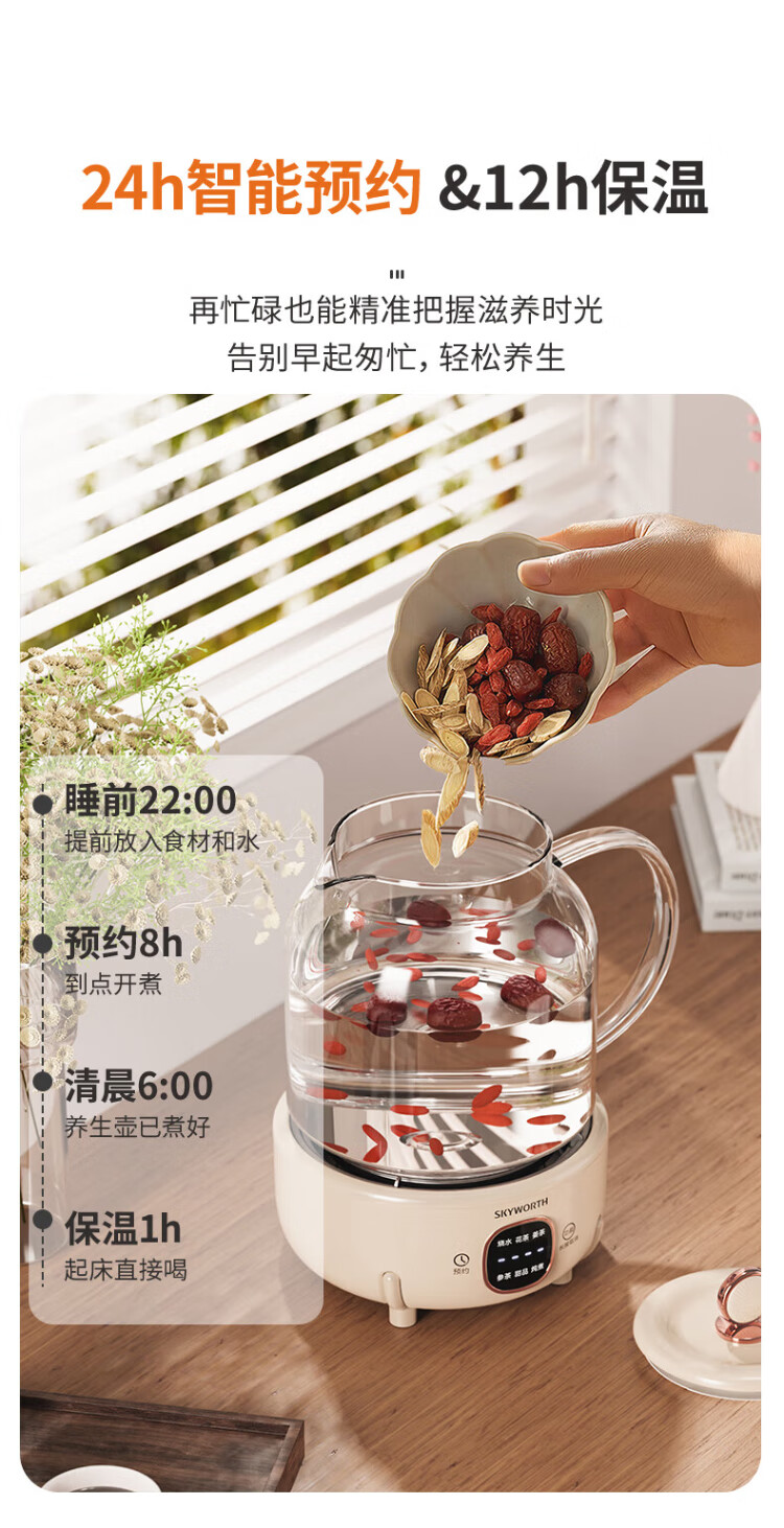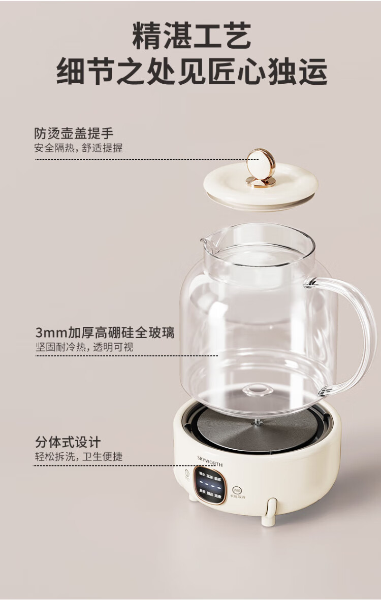 Skyworth government subsidy all-glass health pot thermostatic pot office multi-functional flower teapot electric kettle 0 glue boiling teapot smart reservation S231-apricot color
