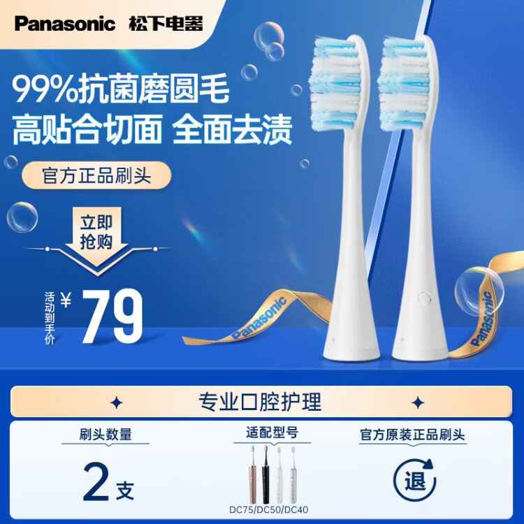 Panasonic WEW0882W405 toothbrush head set of two, suitable for DC75/DC50/DC40/PDP