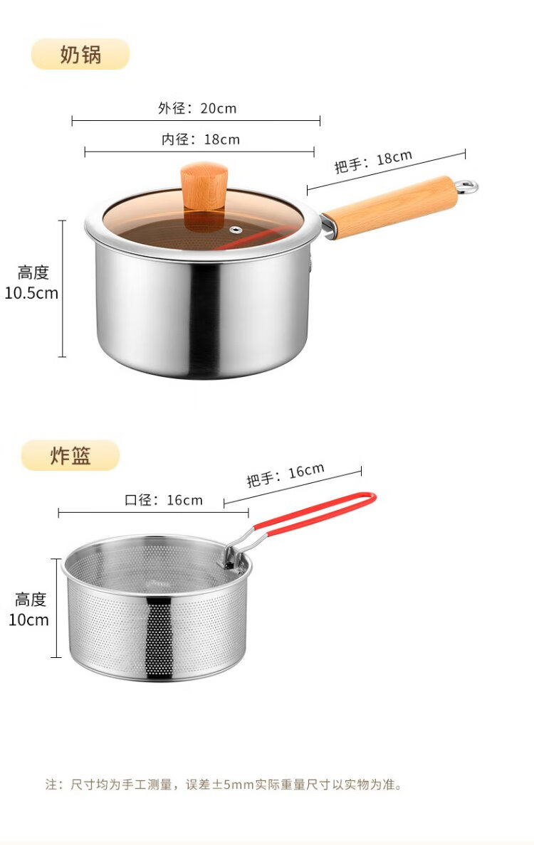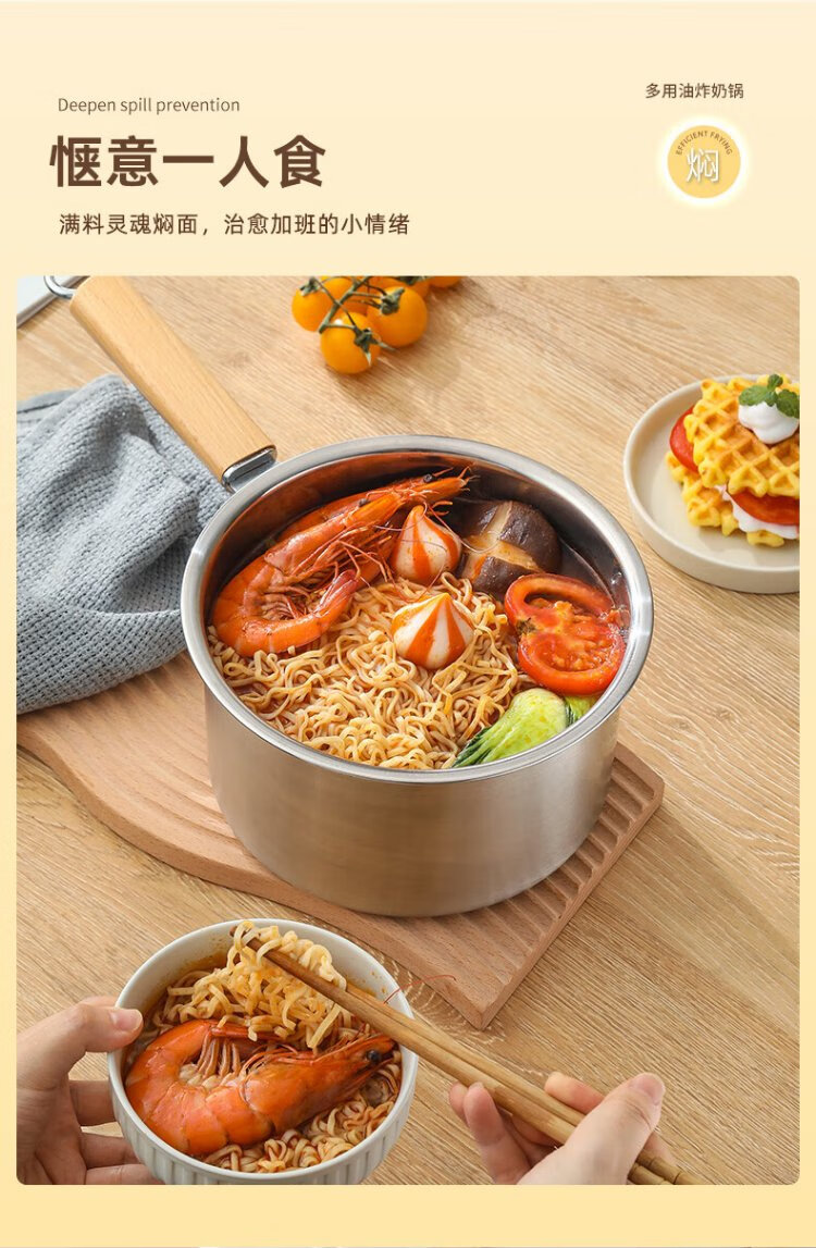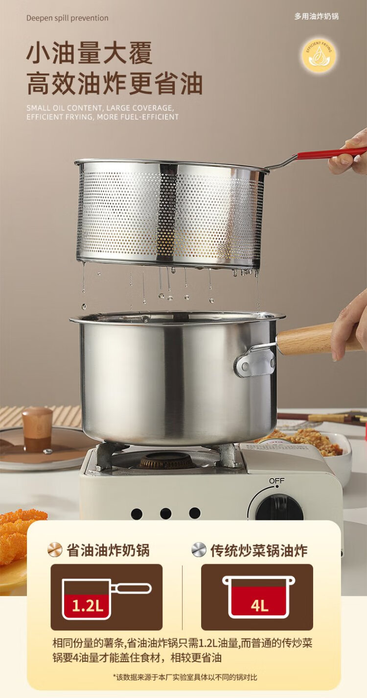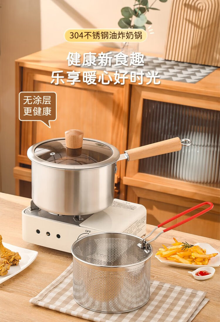 YUTAI 304 stainless steel frying pan household hot milk soup pot cooking noodles pot fried skewers pot French fries deep frying milk pot