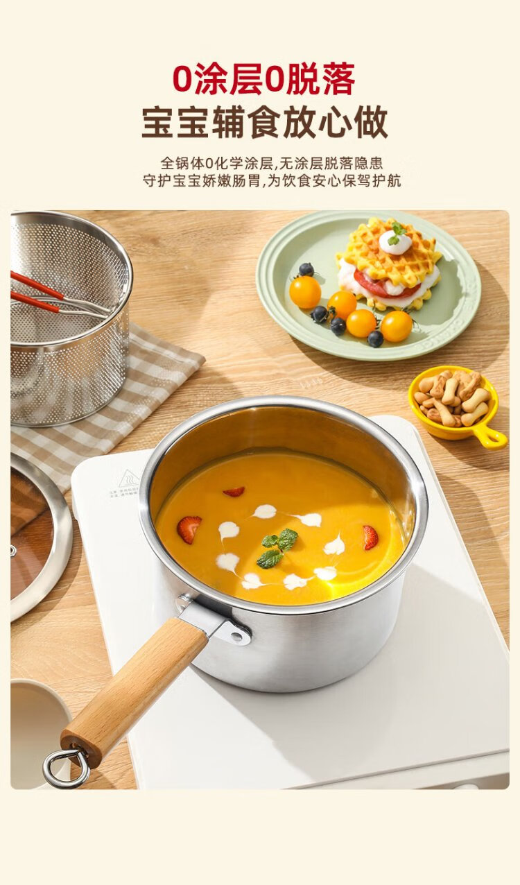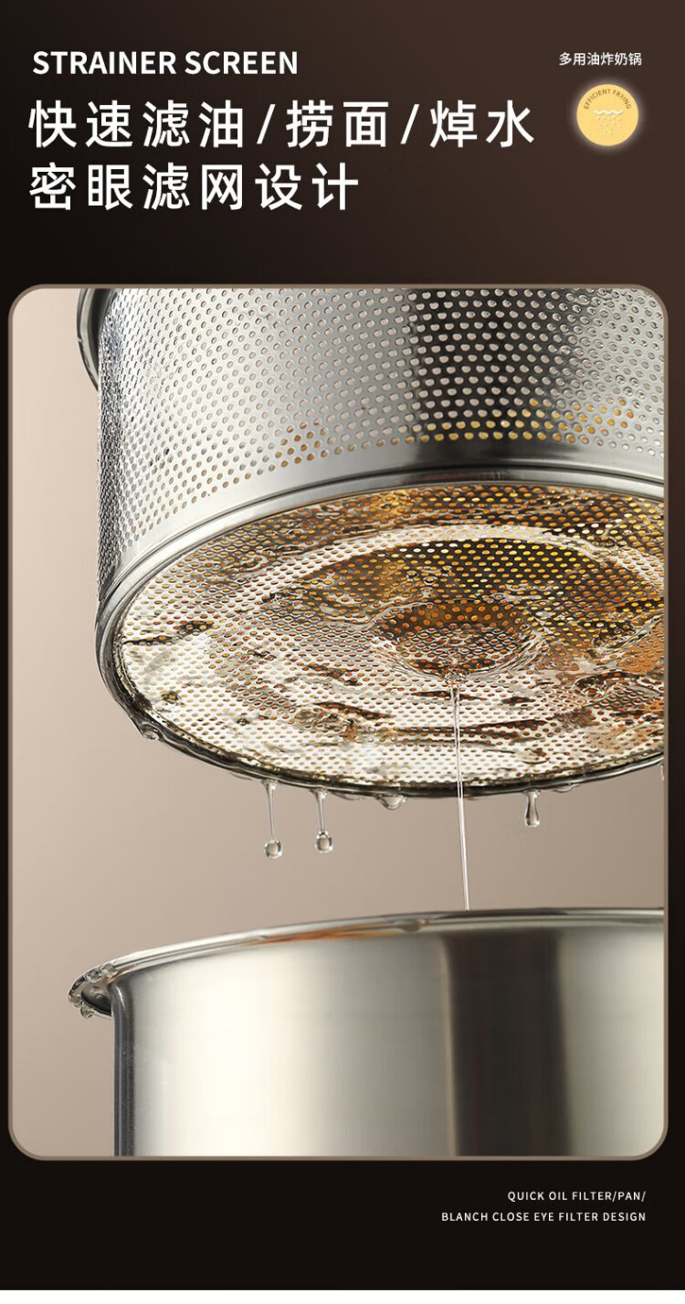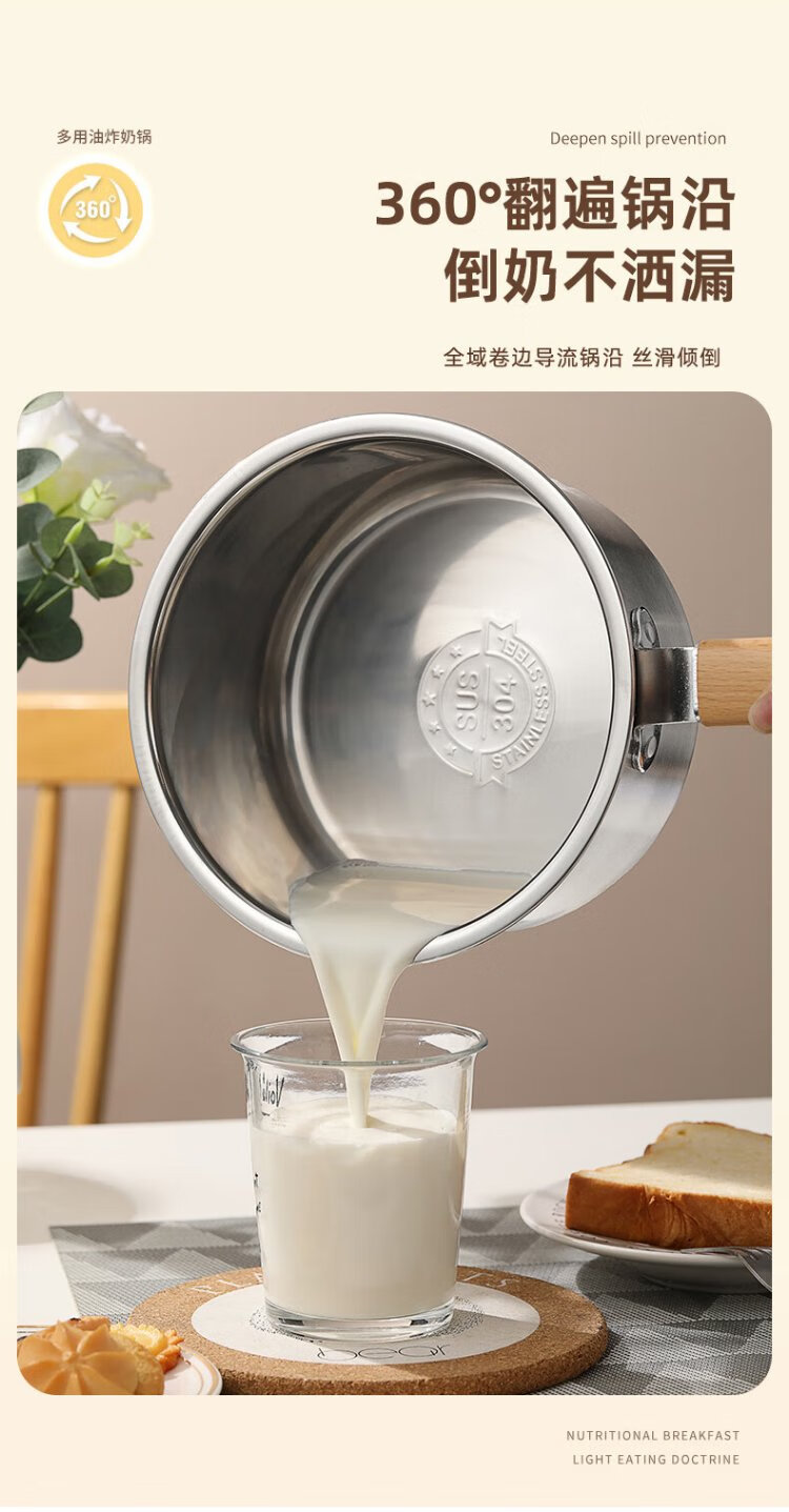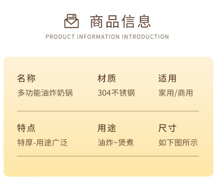 YUTAI 304 stainless steel frying pan household hot milk soup pot cooking noodles pot fried skewers pot French fries deep frying milk pot