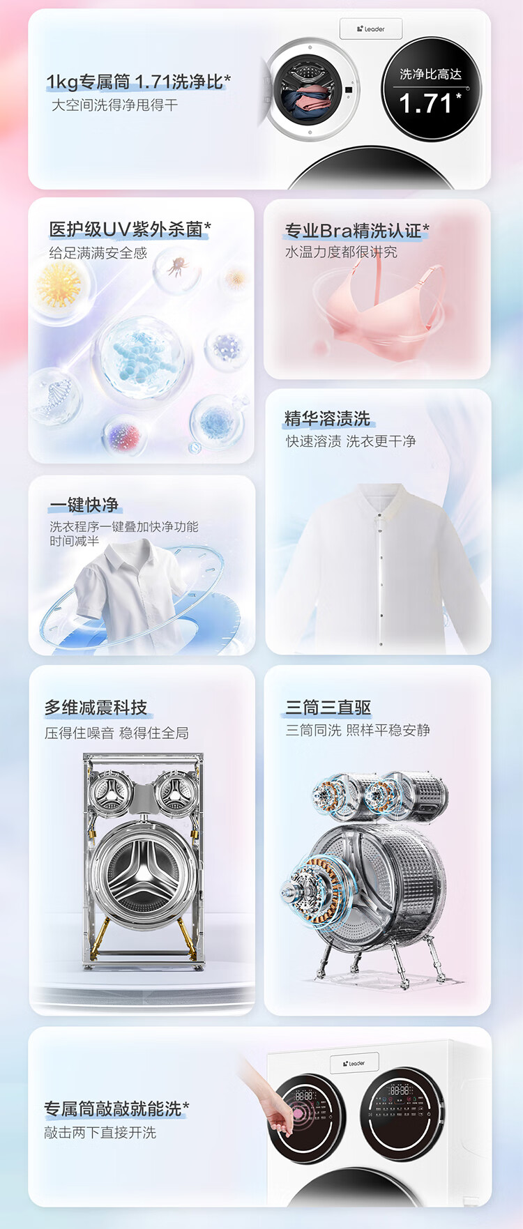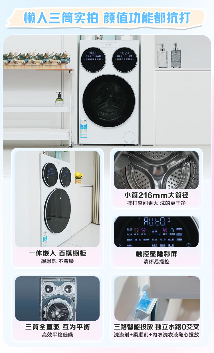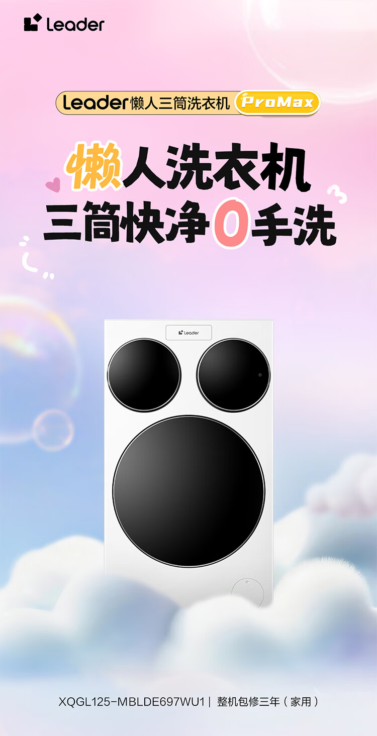 Leader Haier Lazy Three-tub Washing Machine ProMax Price Comparison Li Jiaqi Zone Washing 12.5KG Three Barrels National Subsidy XQGL125-MBLDE697WU1