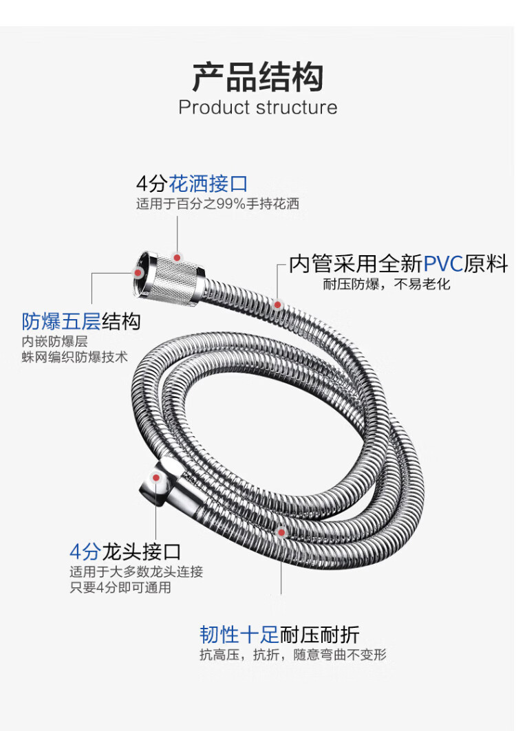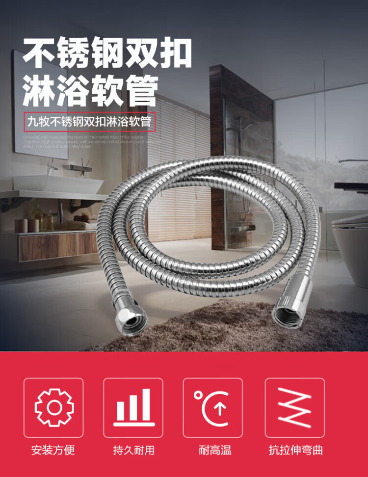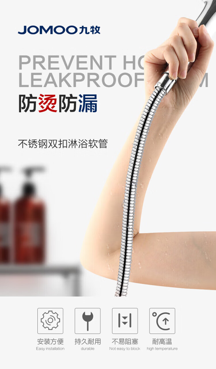 JOMOO stainless steel hose 4-point interface retractable heat-resistant, explosion-proof and pressure-resistant double buckle 1.5 meter stainless steel hose H2BE2-150103C-2